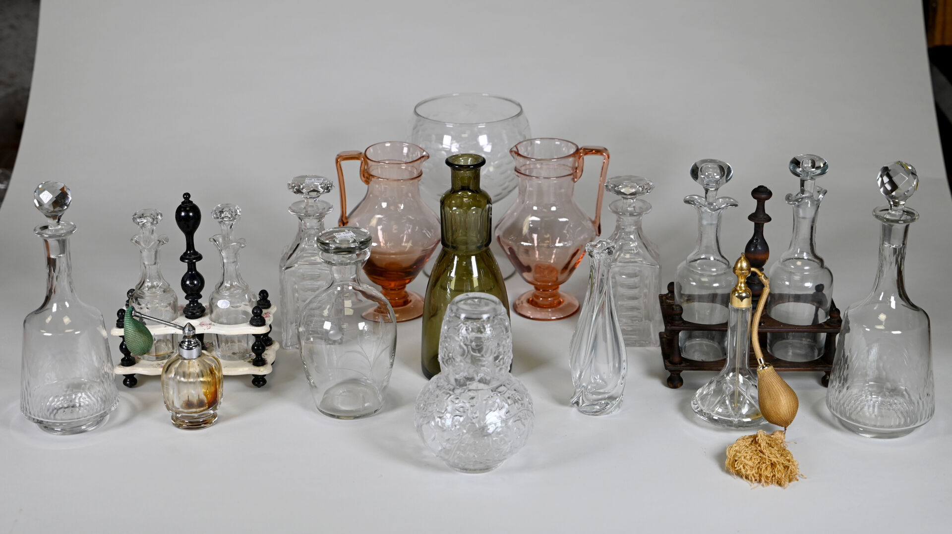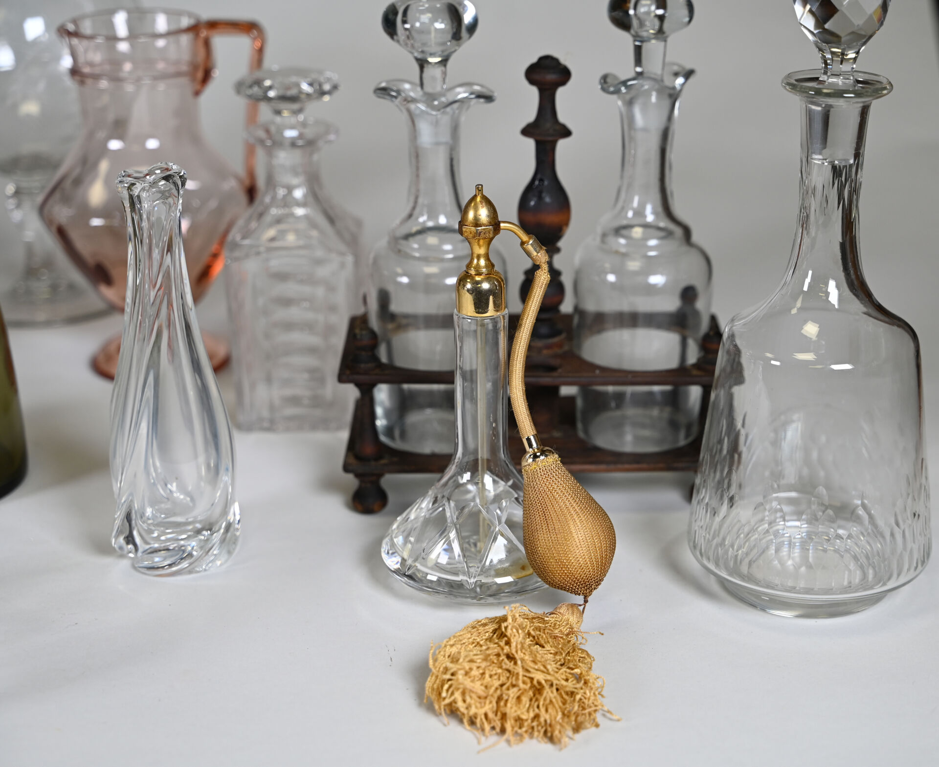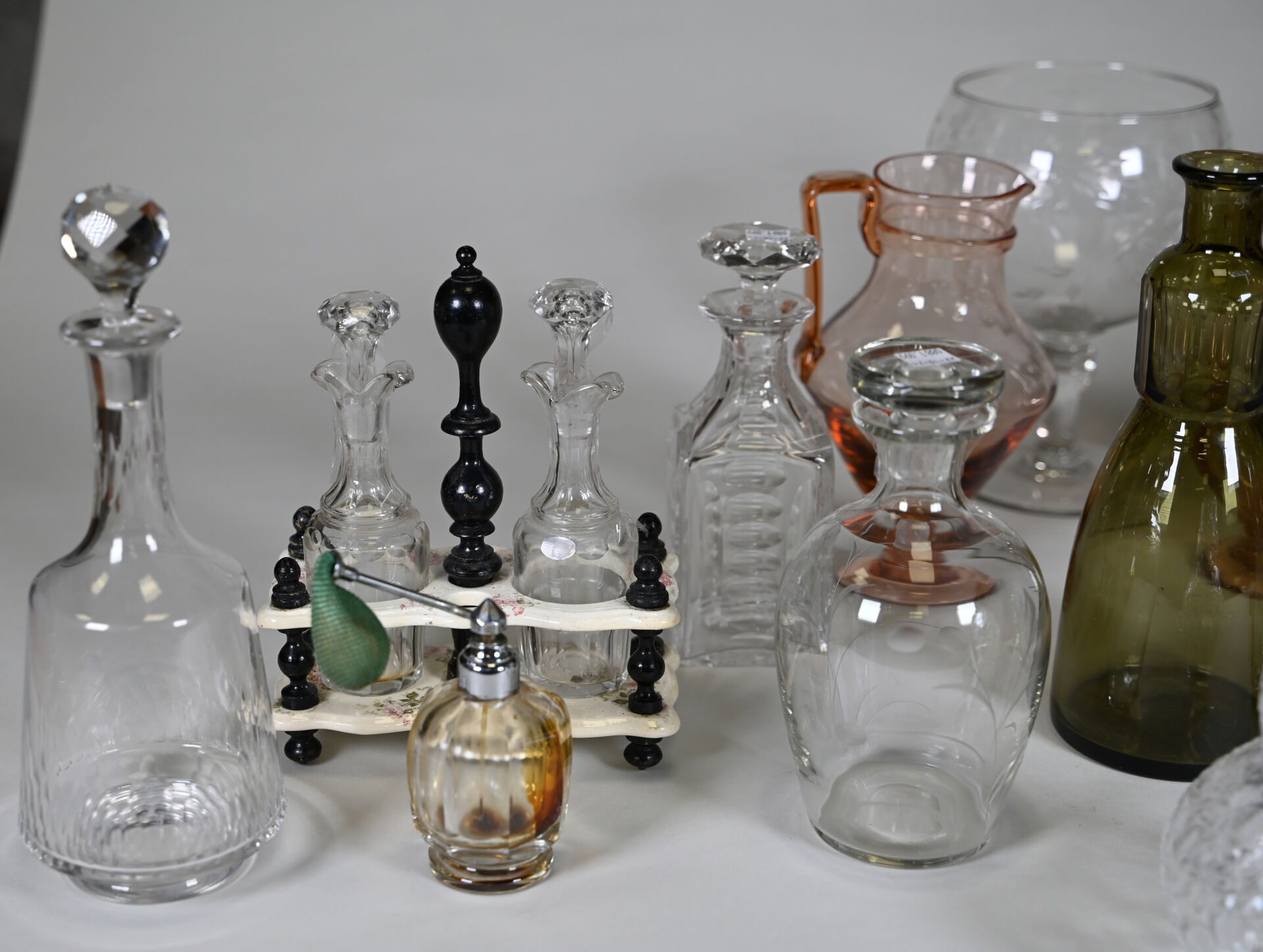 Ensemble de verrerie dont vases en cristal, bonbonnières, huiliers vinaigriers, carafes dont Sèvres, ST Louis, probablement BACCARAT et divers. 3 caisses.