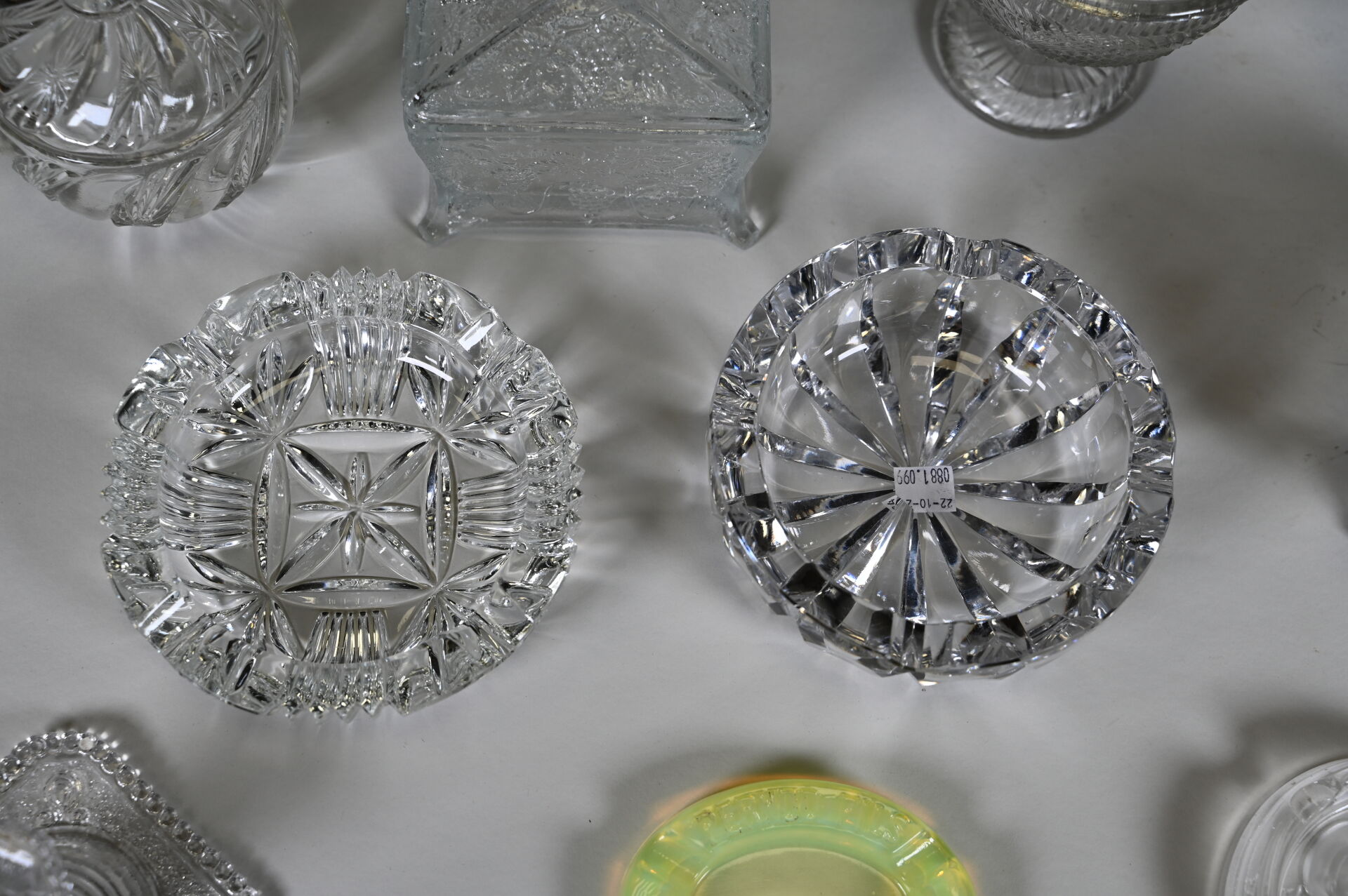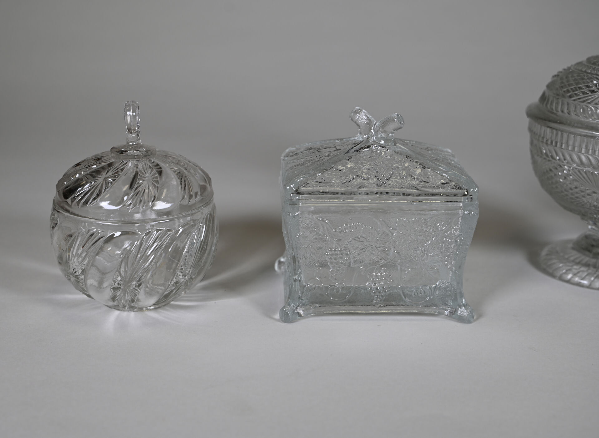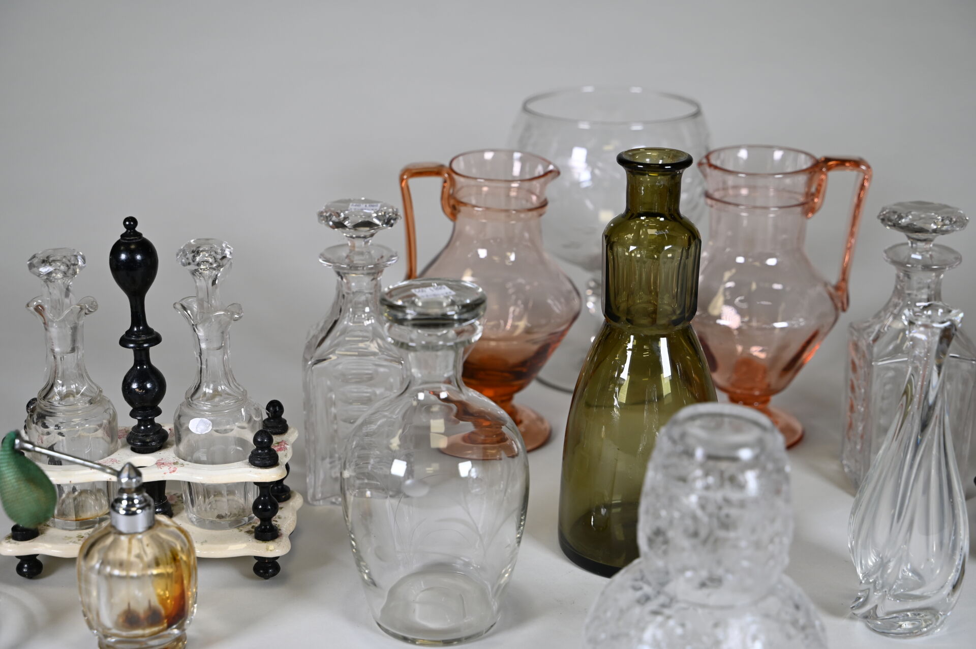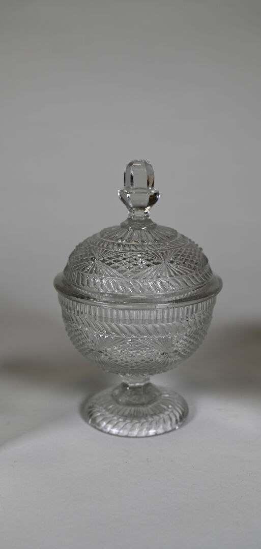 Ensemble de verrerie dont vases en cristal, bonbonnières, huiliers vinaigriers, carafes dont Sèvres, ST Louis, probablement BACCARAT et divers. 3 caisses.