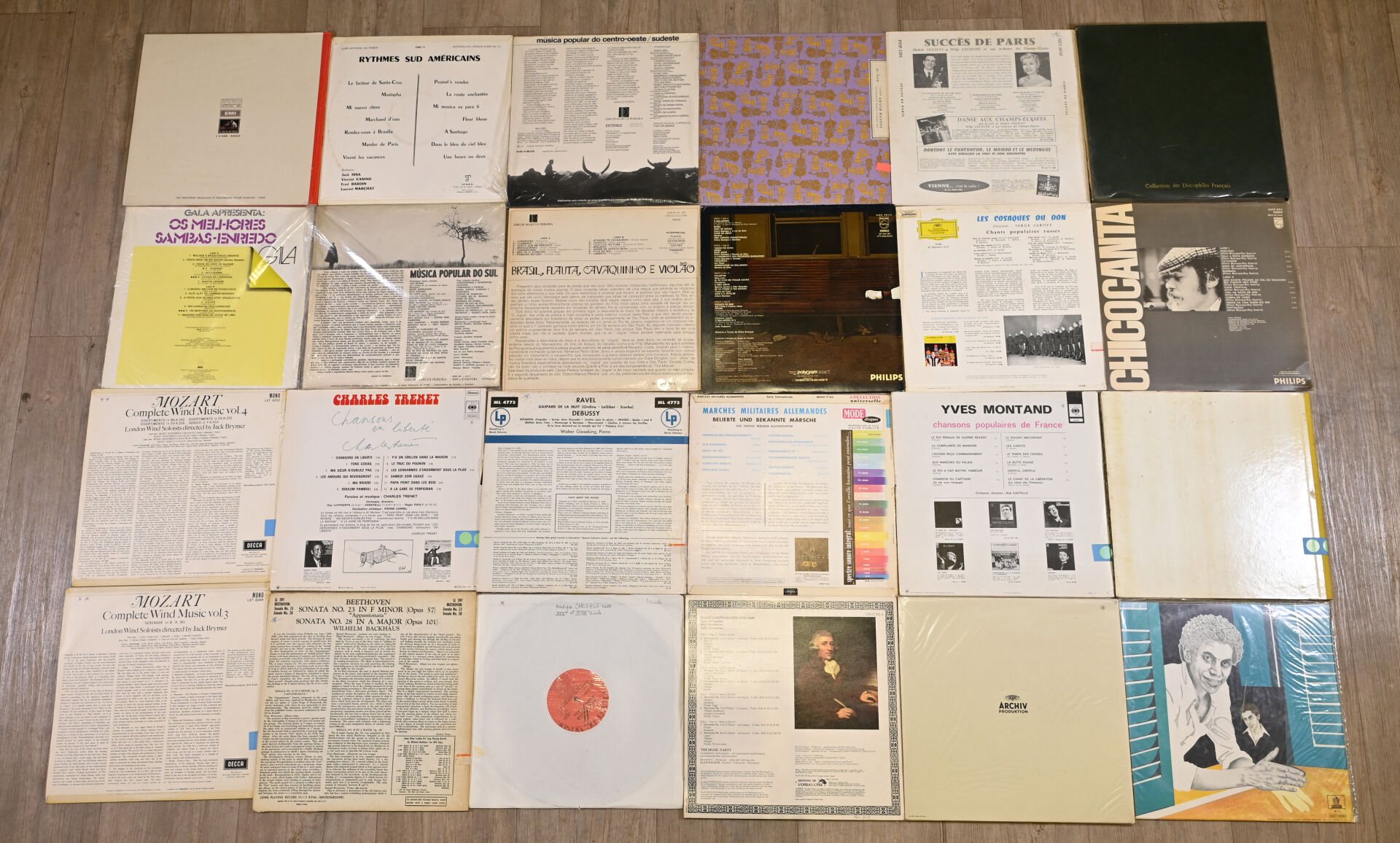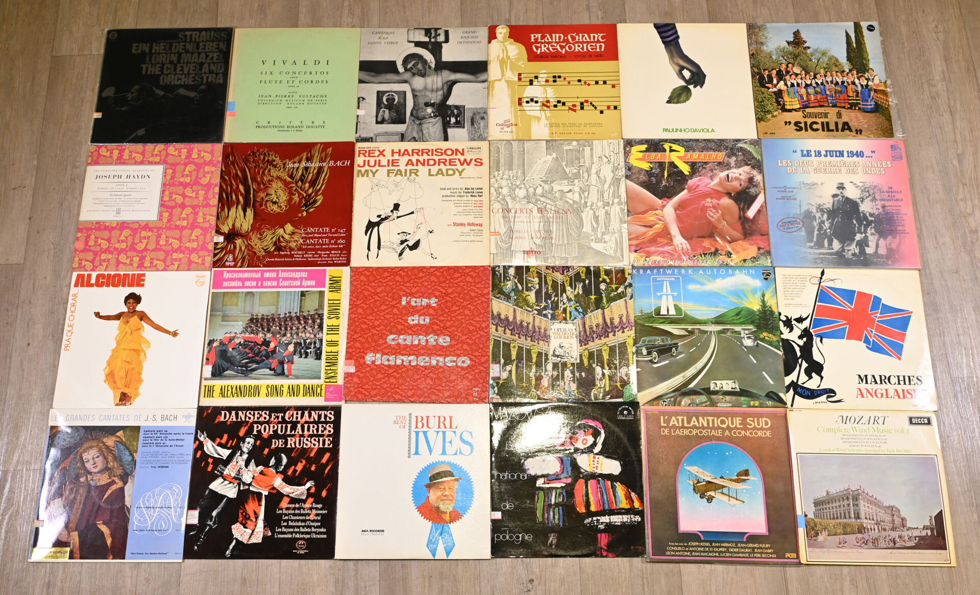 Ensemble d’environ 48 vinyles 33 tours dont Charles TRENET, KRAFTWERK, ALCIONE, Paulinho DA VIOLA HAYDN, RAVEL, MOZART, BEETHOVEN, VIVALDI et divers.