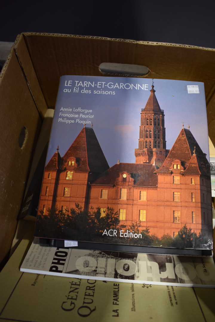 Ensemble d’ouvrages sur le Tarn-et-Garonne et la région dont « Chemins de Rome à Montauban » par Vincent BIOULES, « Le Tarn-et-Garonne et au fil des saisons » ACR Edition. Un carton.