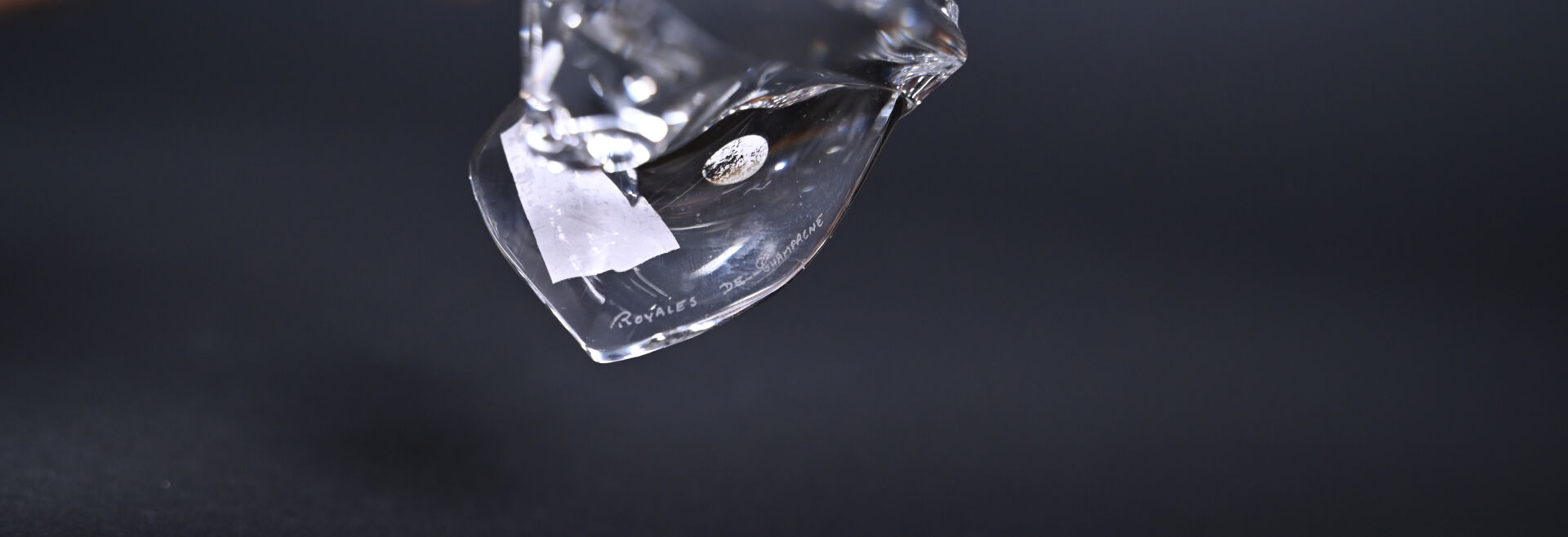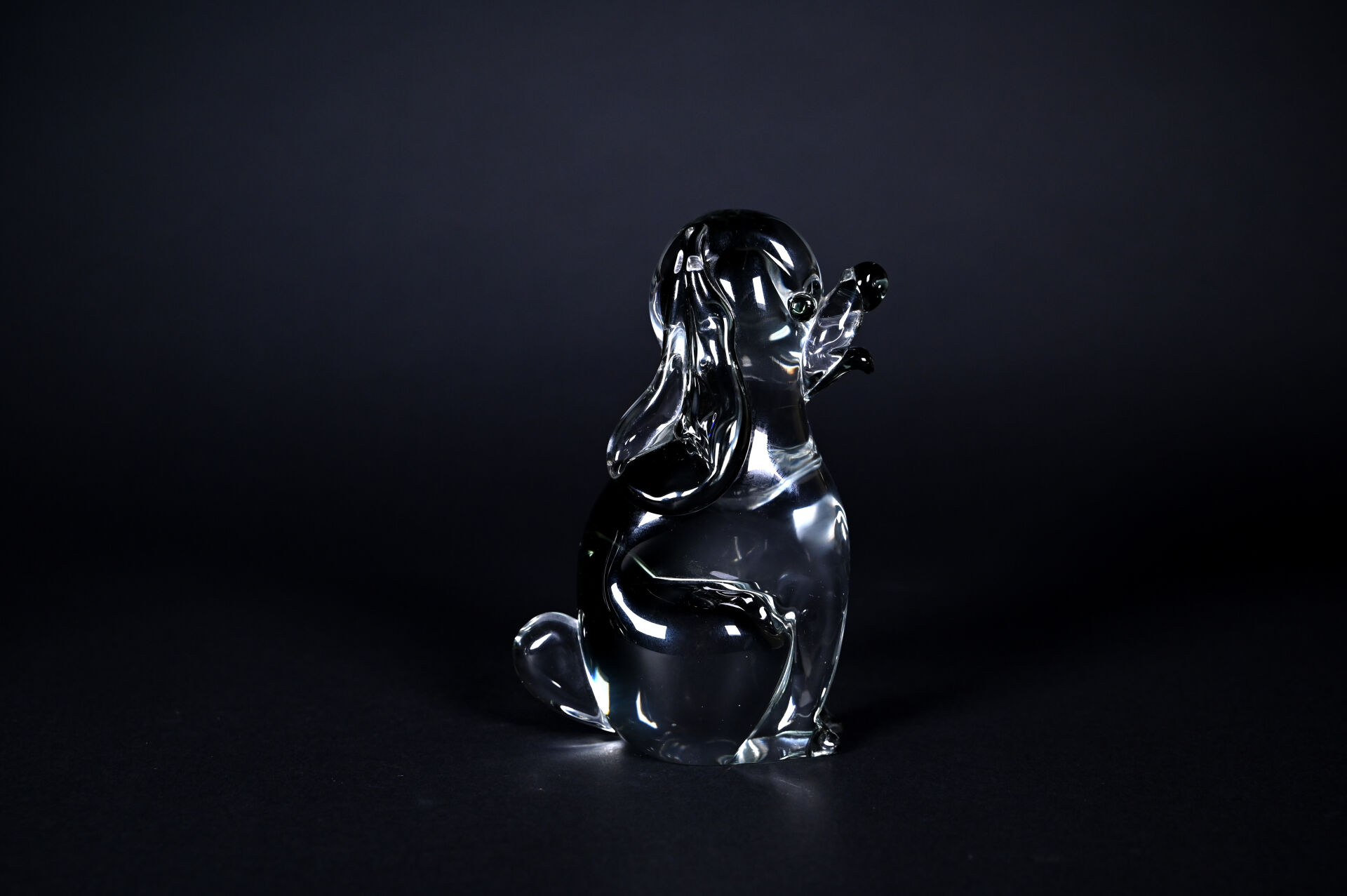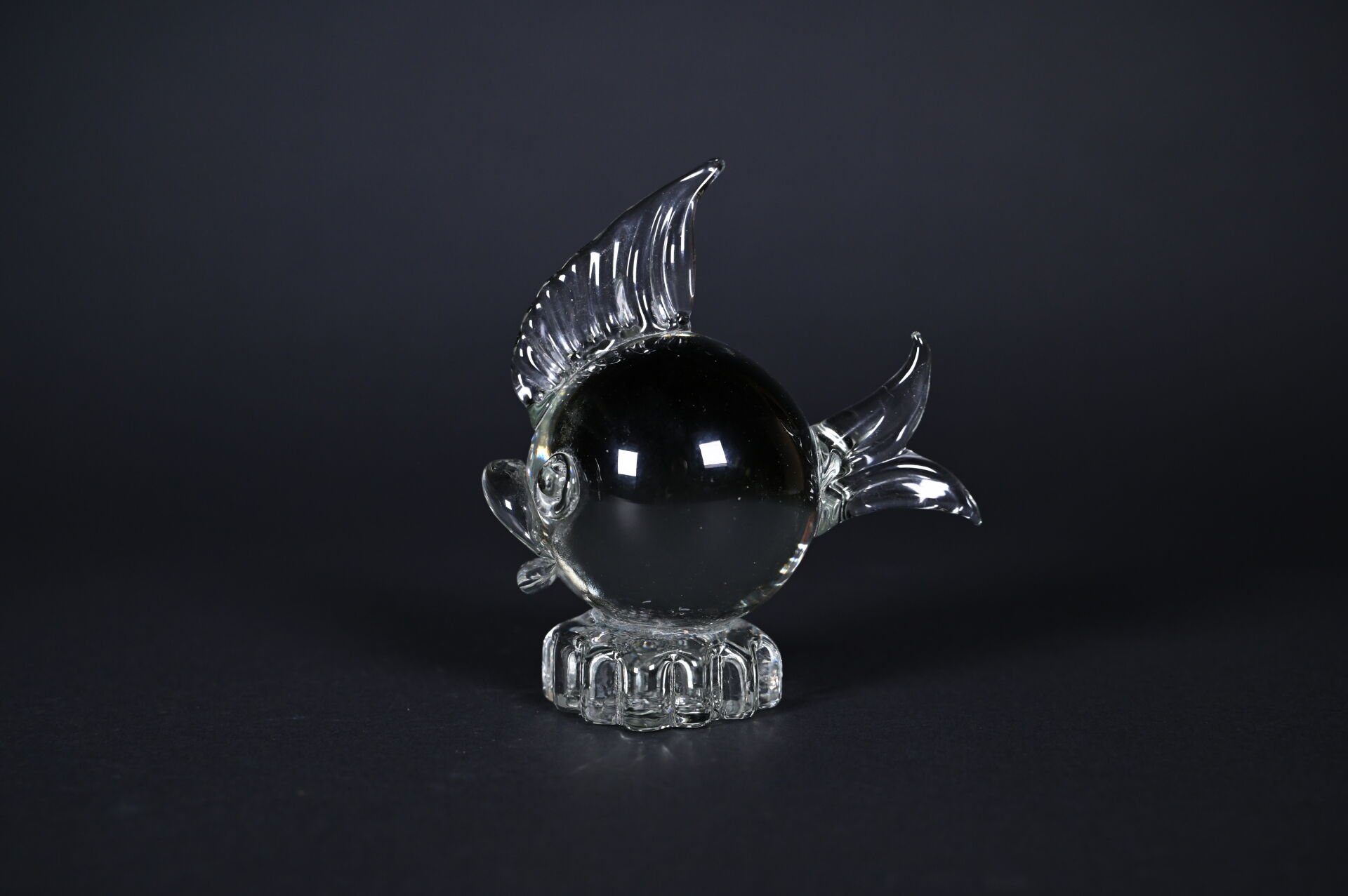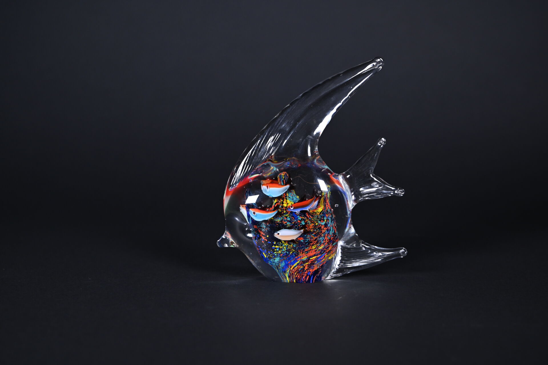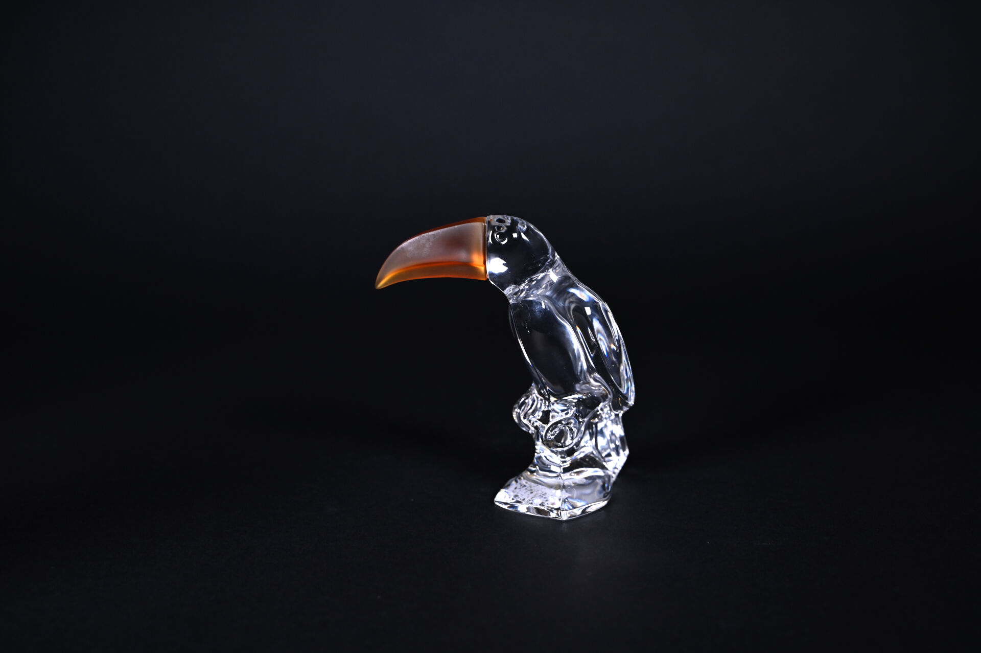 Ensemble en cristal soit deux poissons dont un probablement de Murano, un chien et un toucan à bec en pâte de verre orange des Cristalleries Royales de Champagne (marqué) haut. du plus grand. : 17,5 cm.
