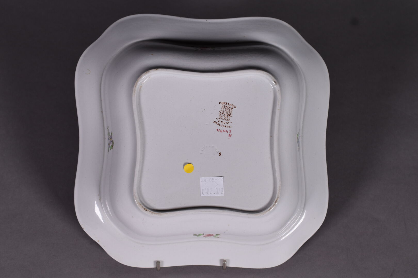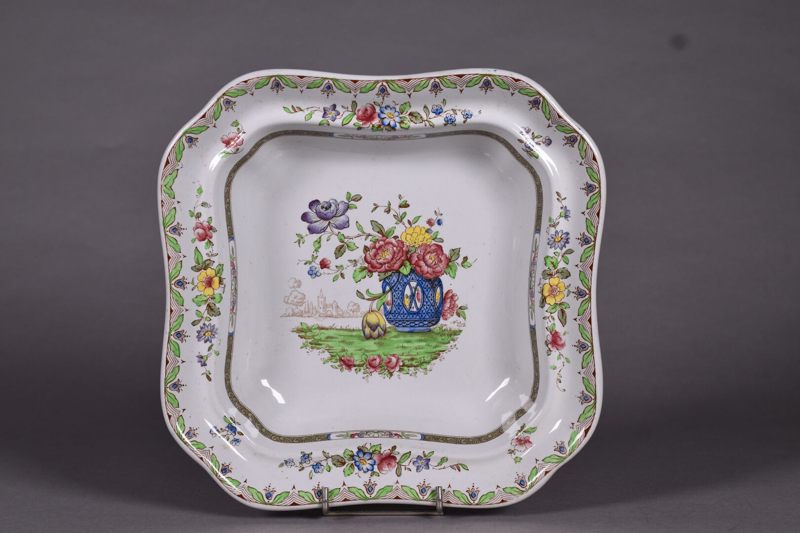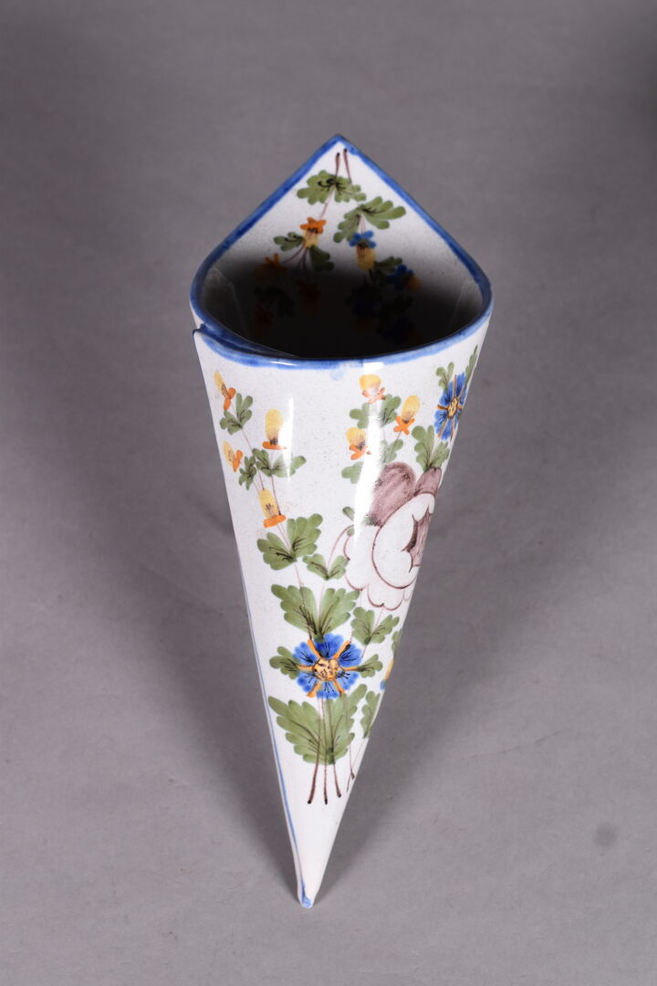 Ensemble en faïence soit un cornet, un porte lettres, un porte savon, un petit plat octogonal.