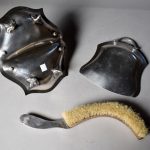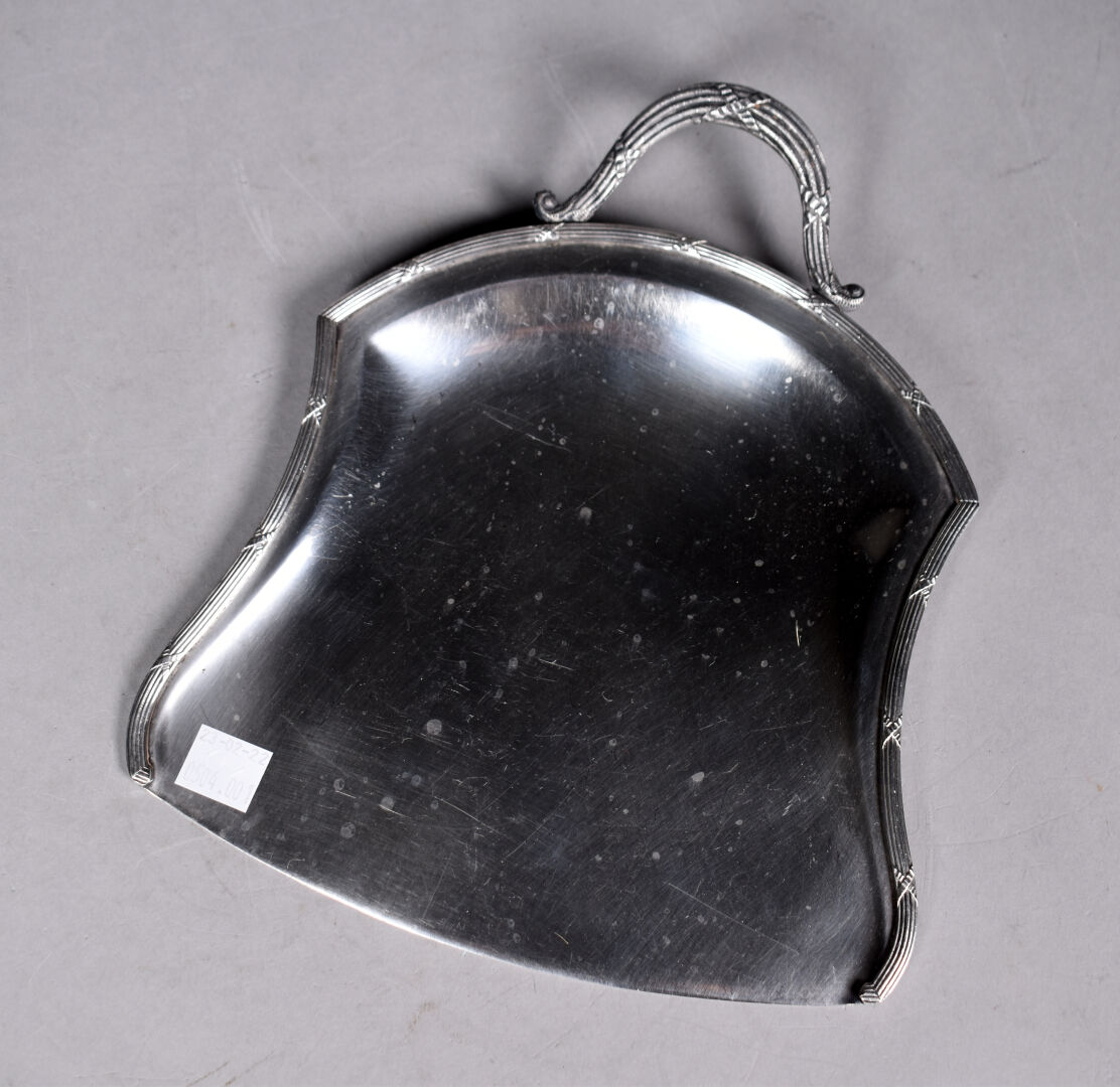 Ensemble en métal argenté comprenant une corbeille serviteur, une pelle et un ramasse miette. On joint une théière et une partie de service en métal argenté comprenant une cafetière et un pot à sucre (Travail turc ou Ottoman). Usures d’usage. Haut. max : 24 cm.