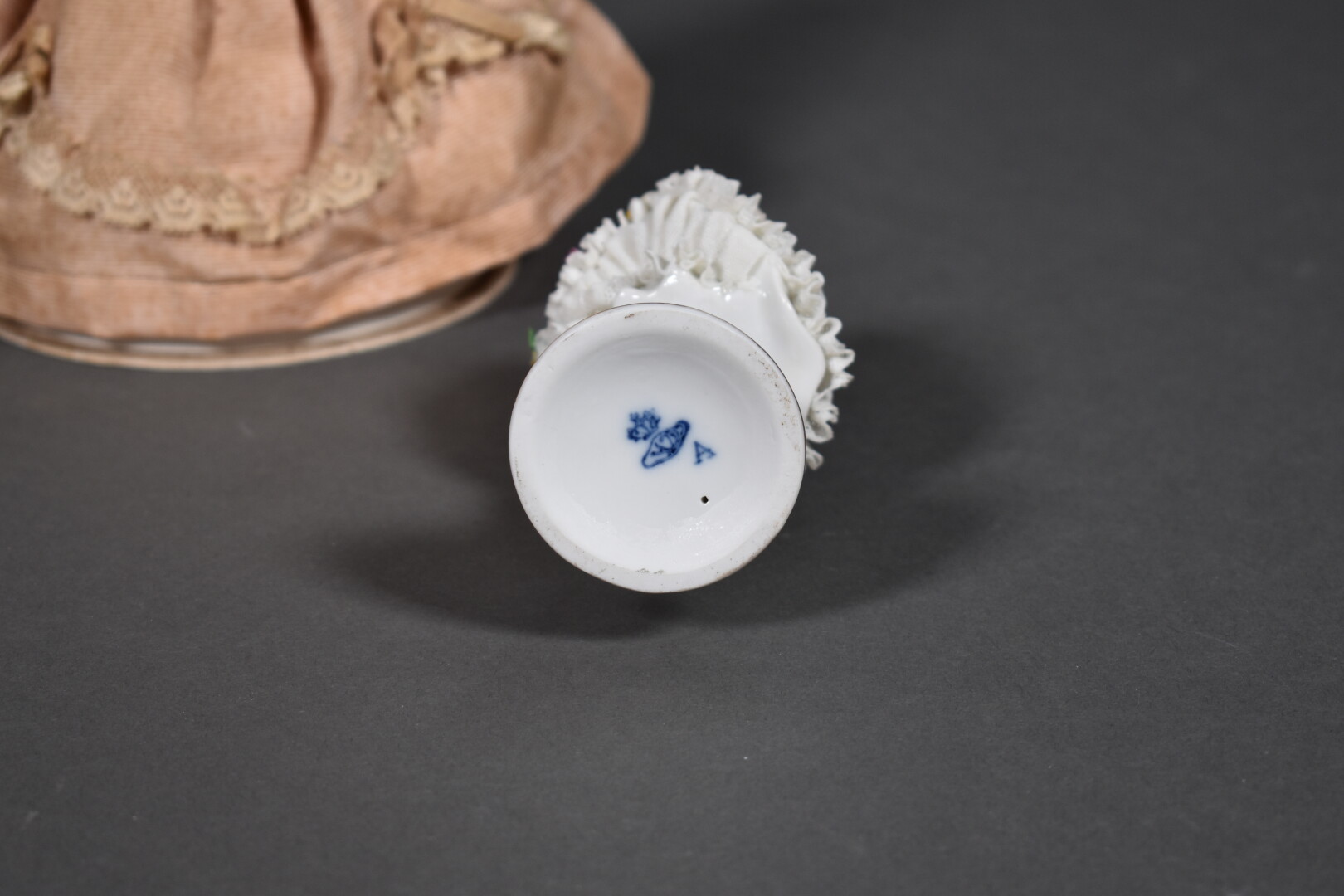 Ensemble en porcelaine soit deux figures d’élégantes, la robe abritant des boîtes en carton et une petite figurine représentant une jeune fille (un manque). Probablement Saxe, XXe siècle. Haut. : 22,5 cm.