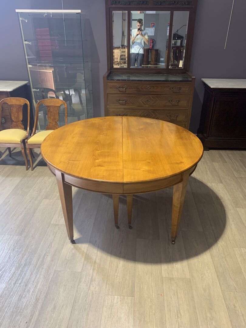 Ensemble pour la prise de repas soit une table et six chaises de style Empire. Usures d’usage et restaurations.
