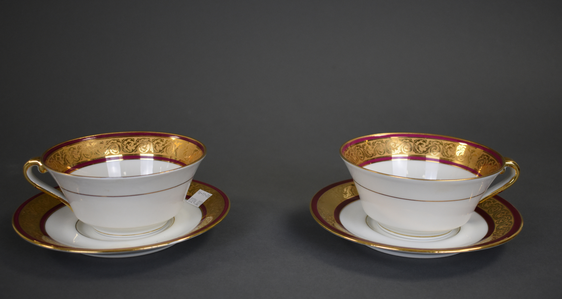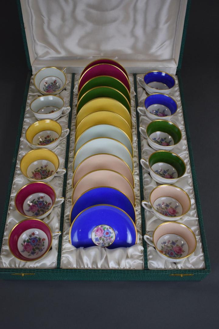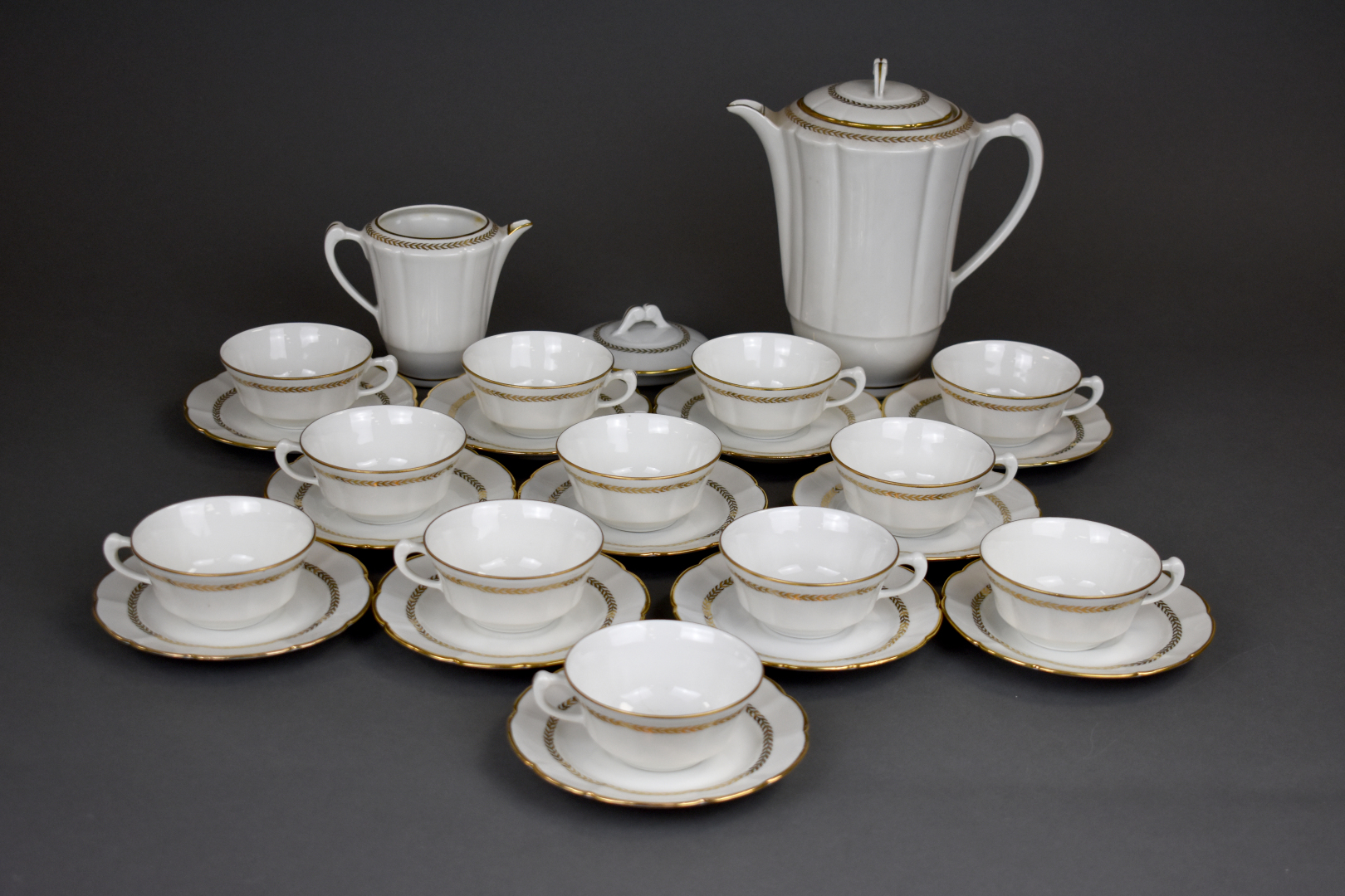 Ensemble soit 3 coffrets contenant de la porcelaine de Limoges René Caire, André Limoges, CH. Field Haviland, une soupière en porcelaine, Gien et divers. On joint un service à café et trois plats en porcelaine, plats en faïence, verseuse en verre et métal et divers..