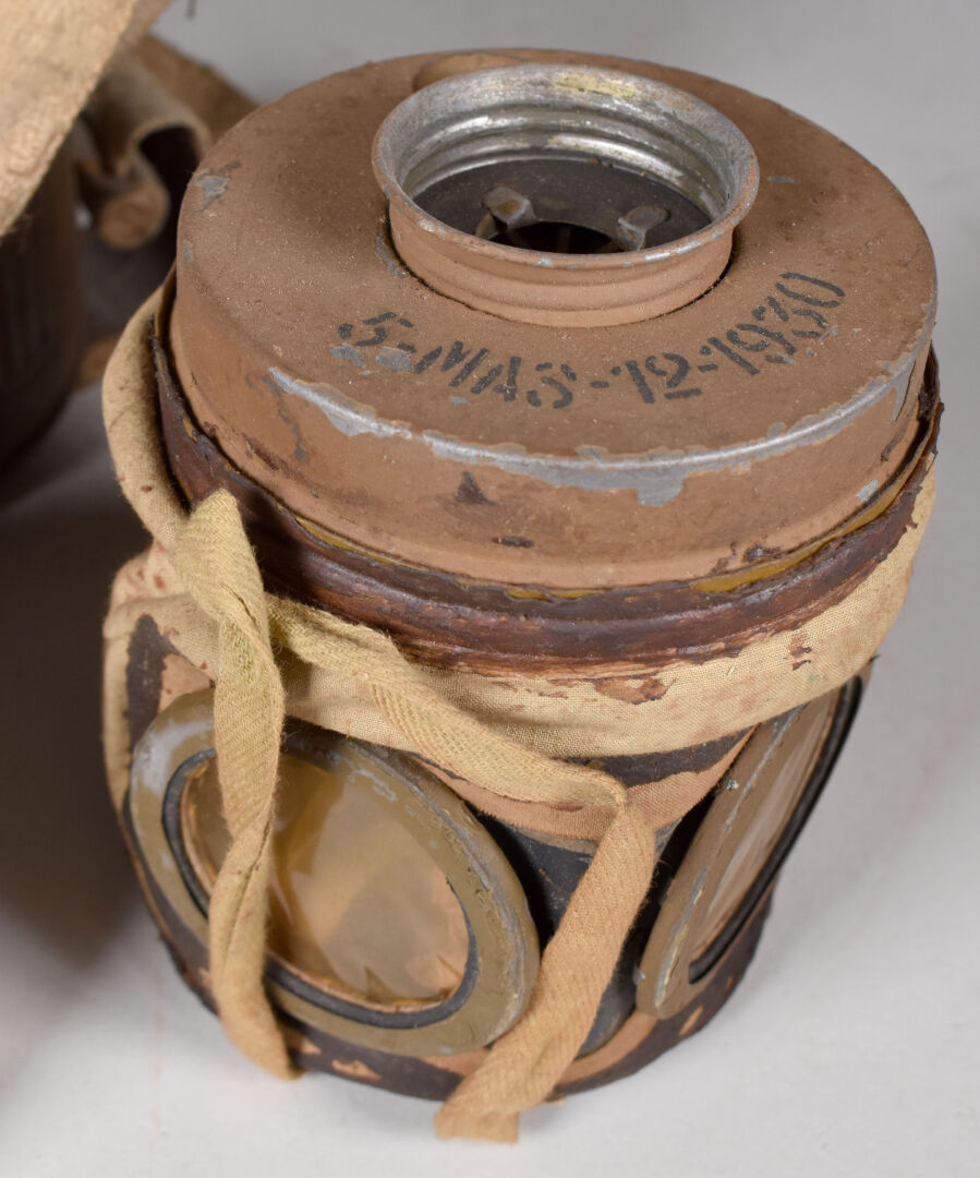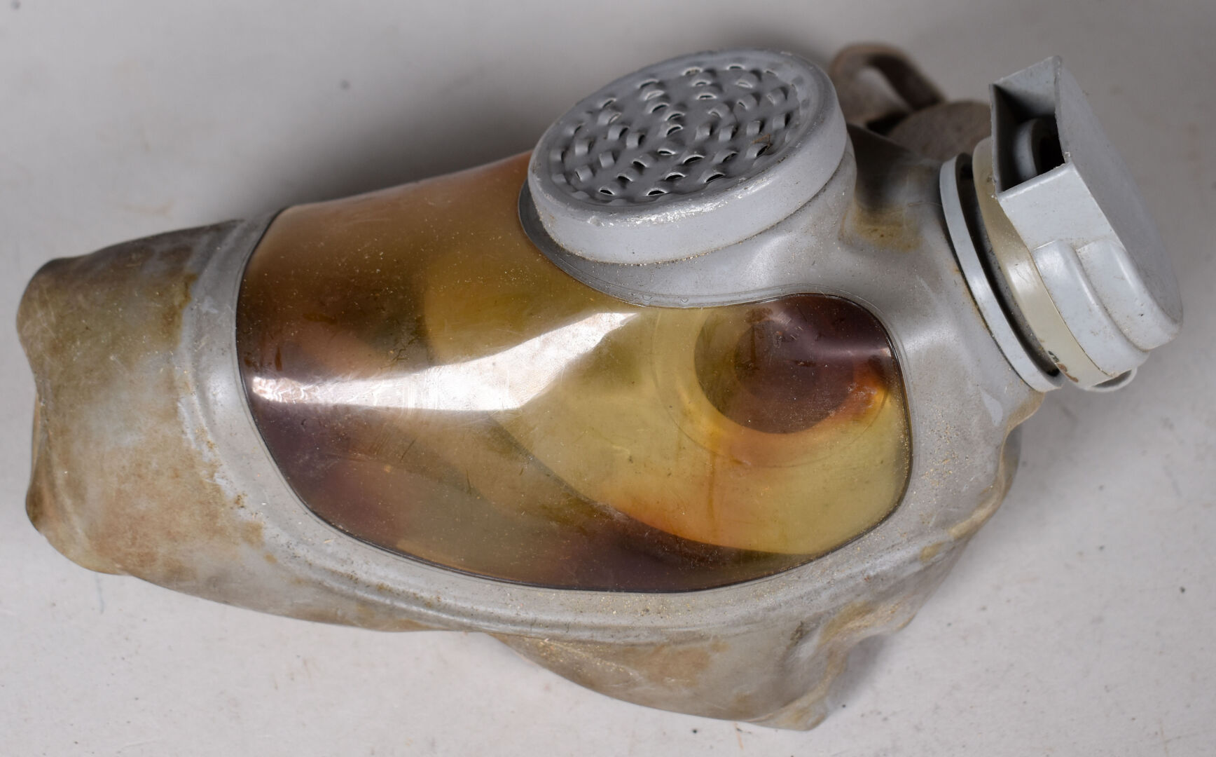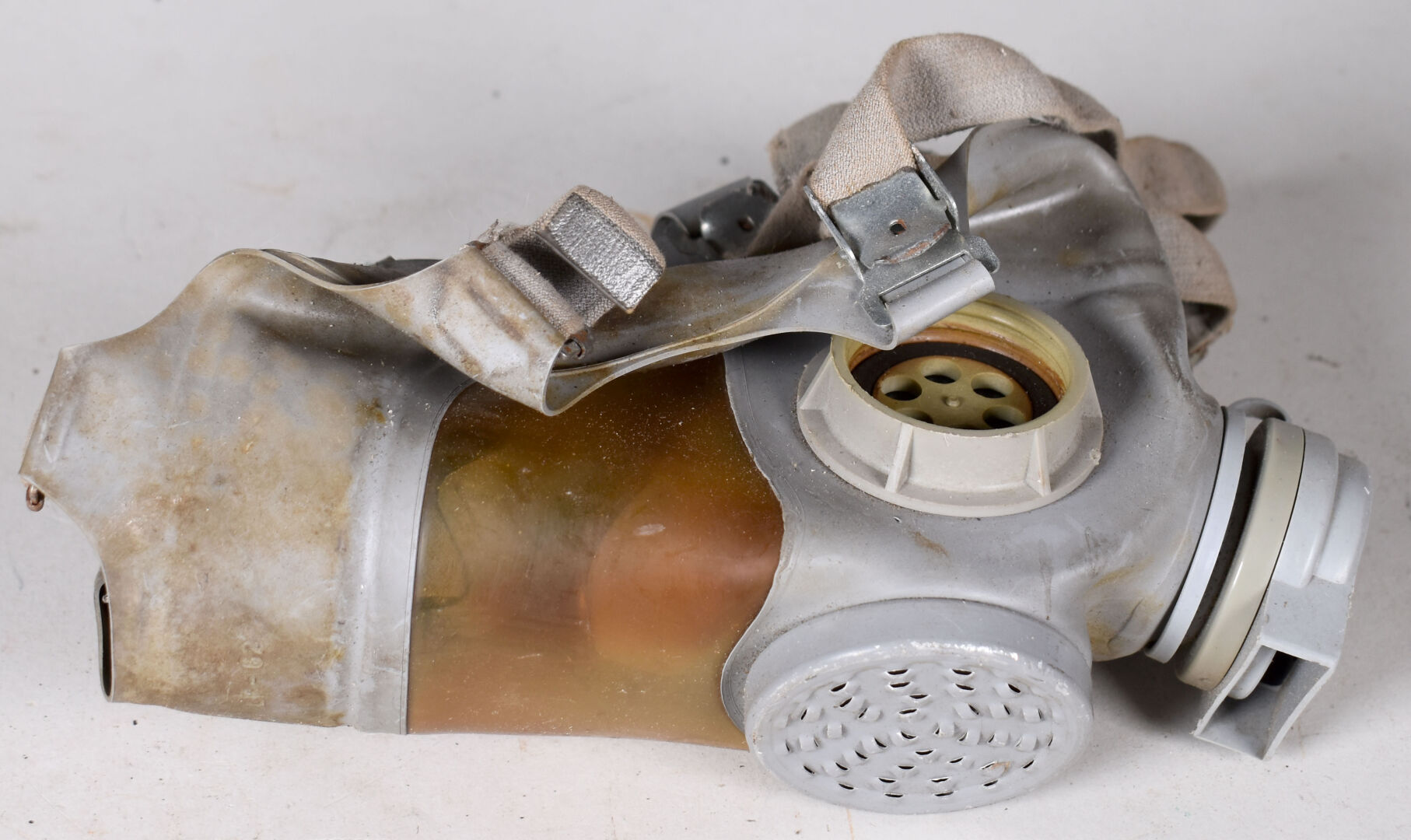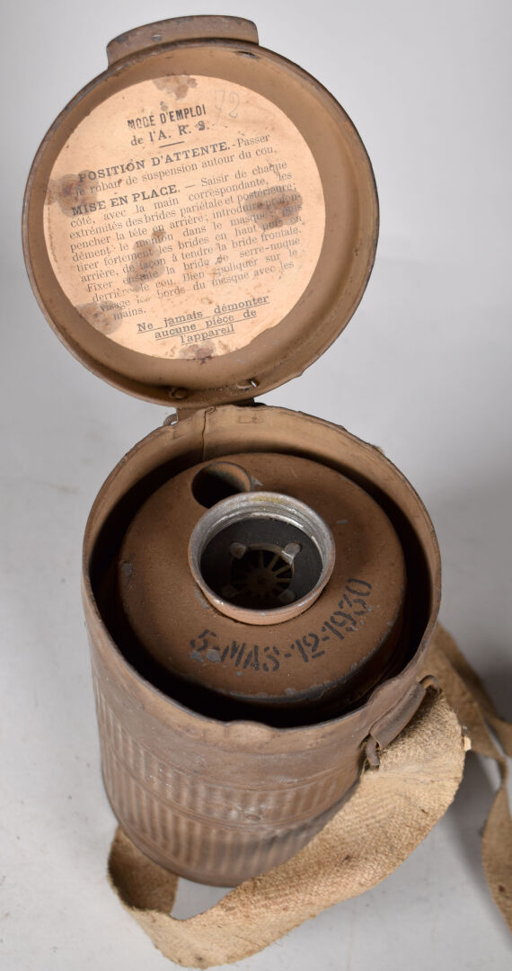 Ensemble soit deux casques avec sous casques (dont modèle 51), un ceinturon et deux masques à gaz (un avec sa boîte).
