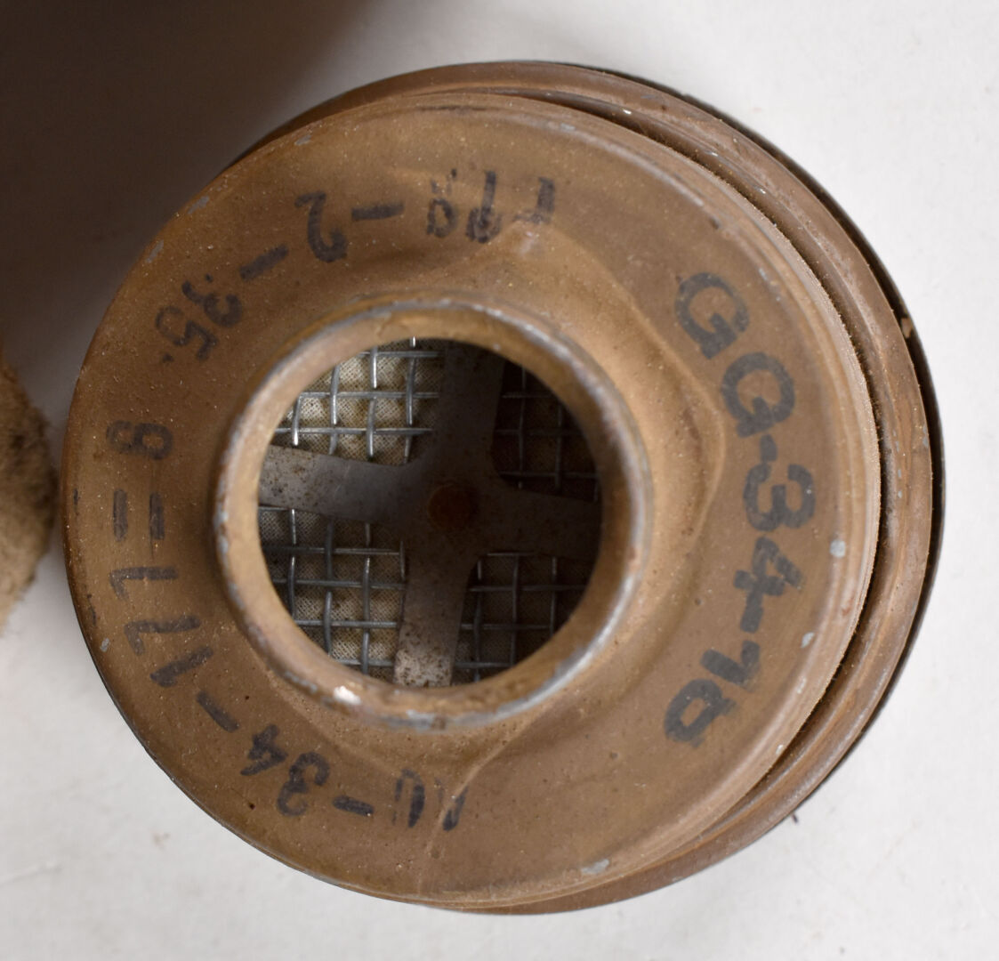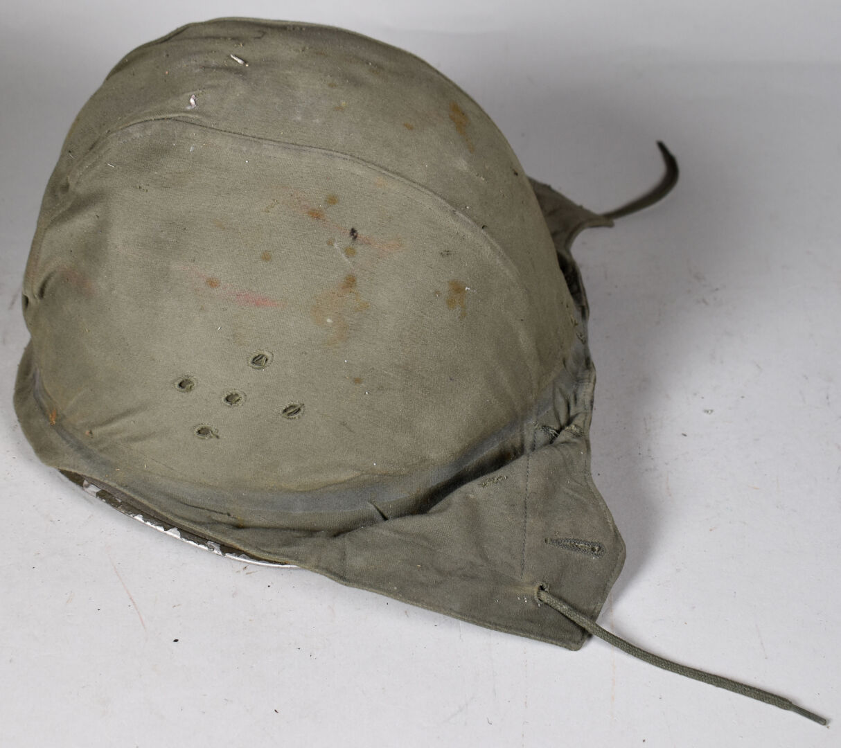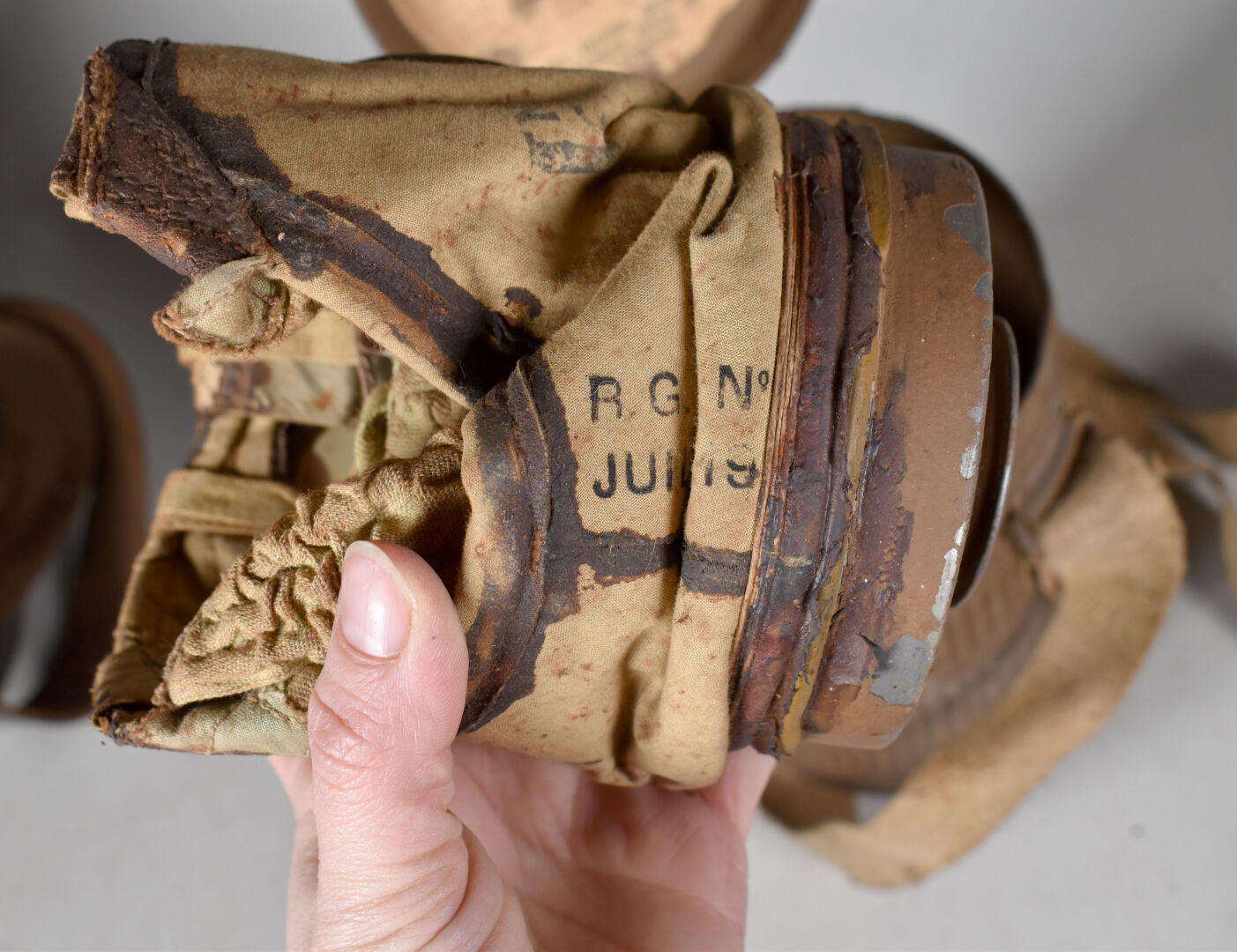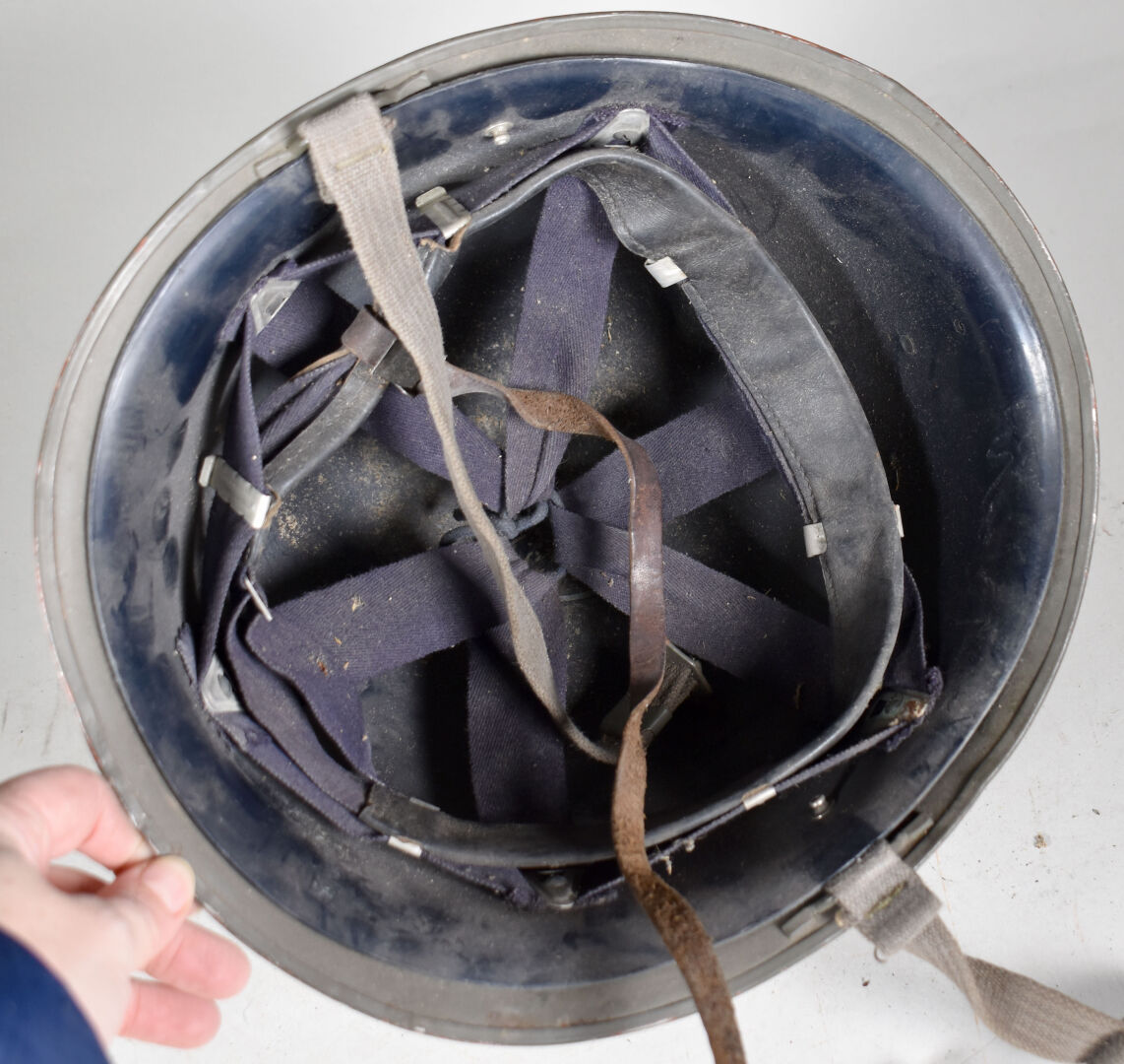 Ensemble soit deux casques avec sous casques (dont modèle 51), un ceinturon et deux masques à gaz (un avec sa boîte).
