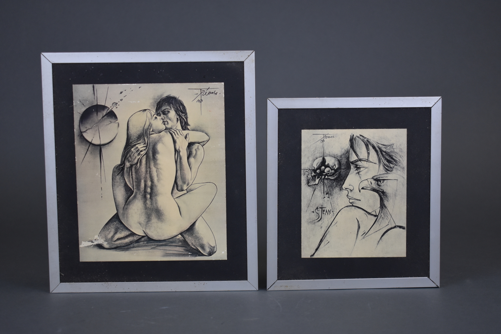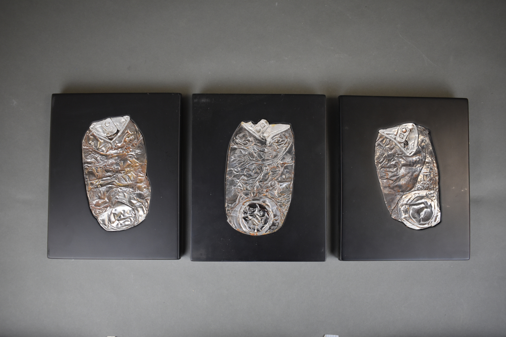 Ensemble soit deux reproductions d’Yves TREMOIS et trois compressions de canettes.