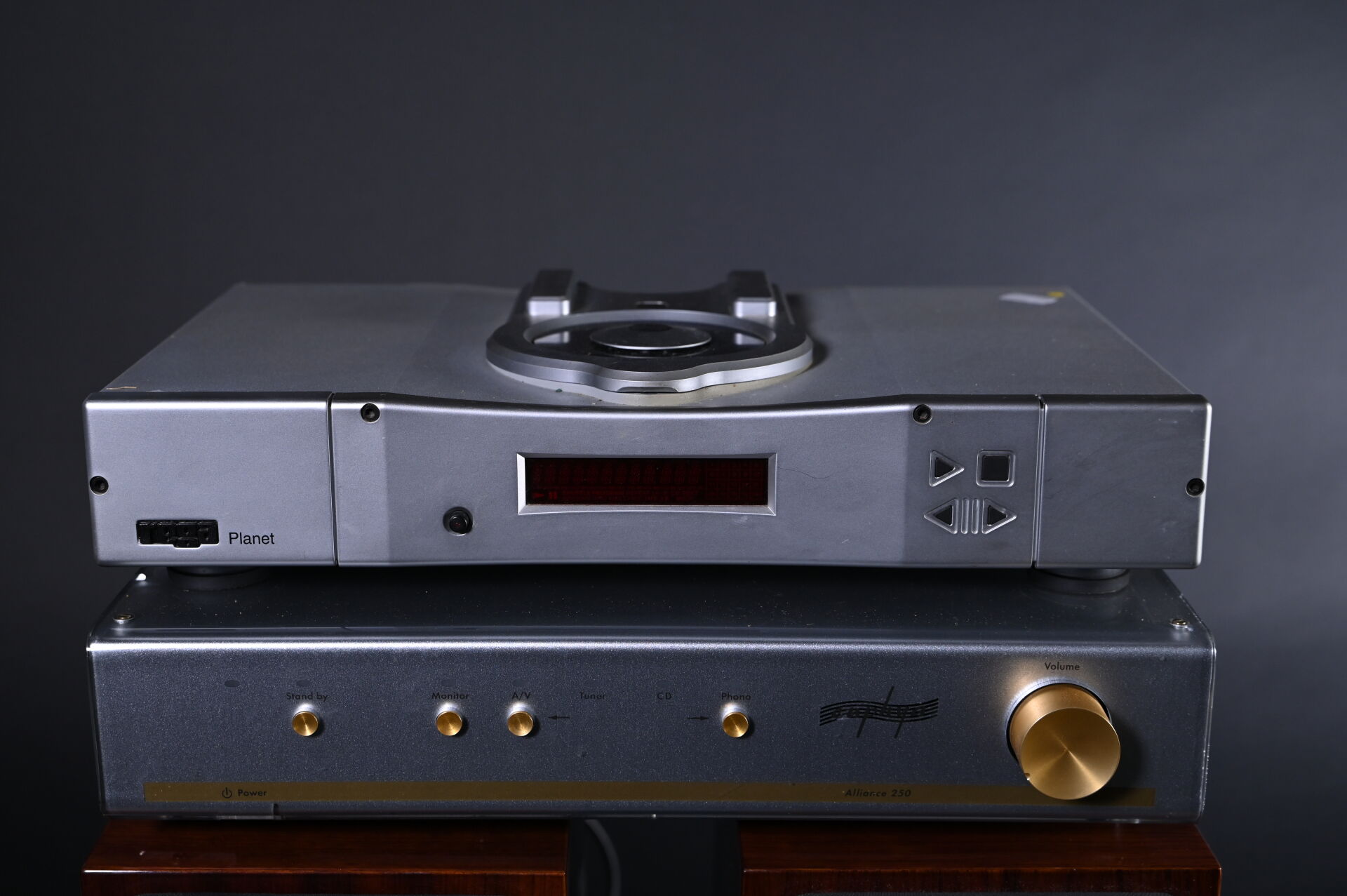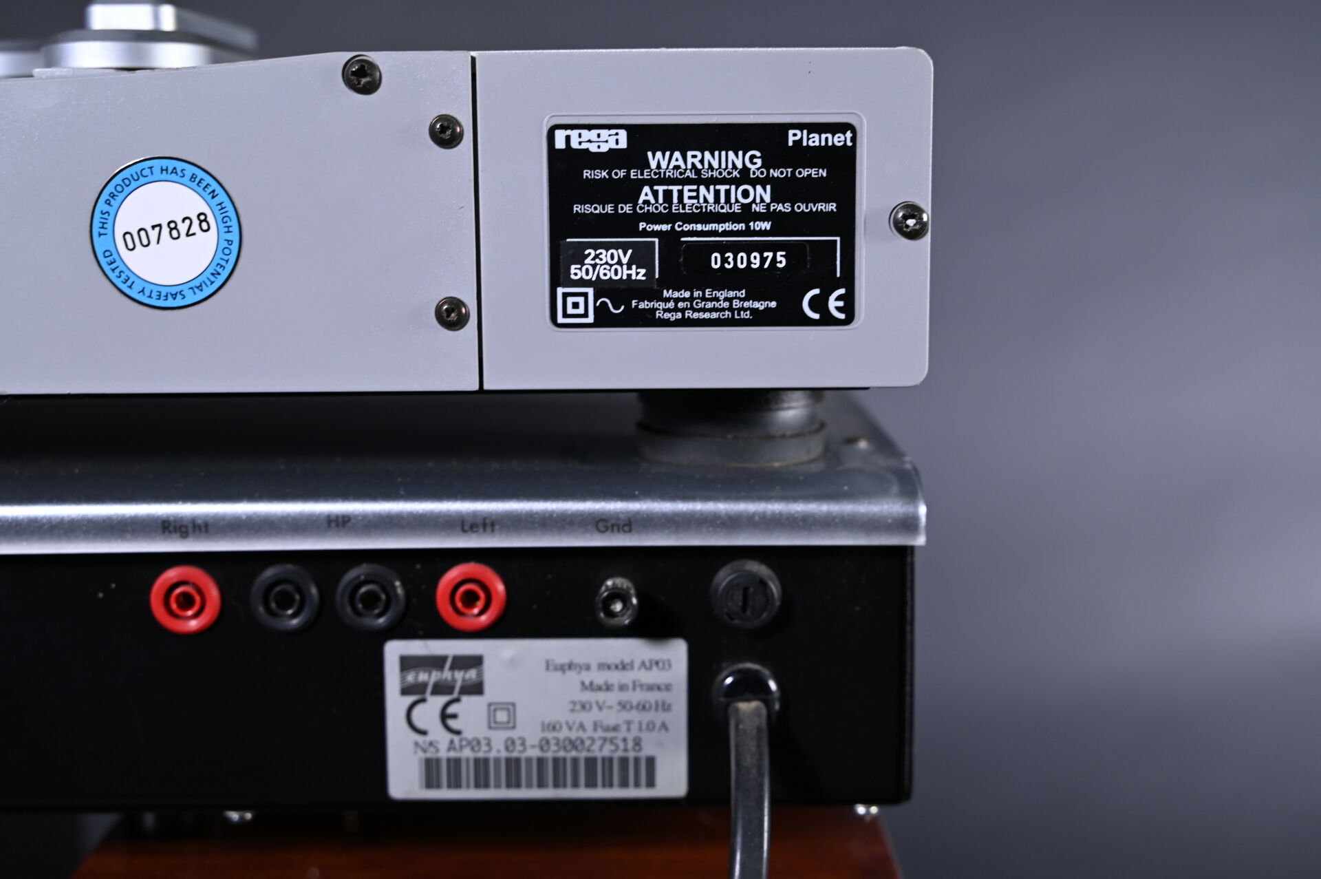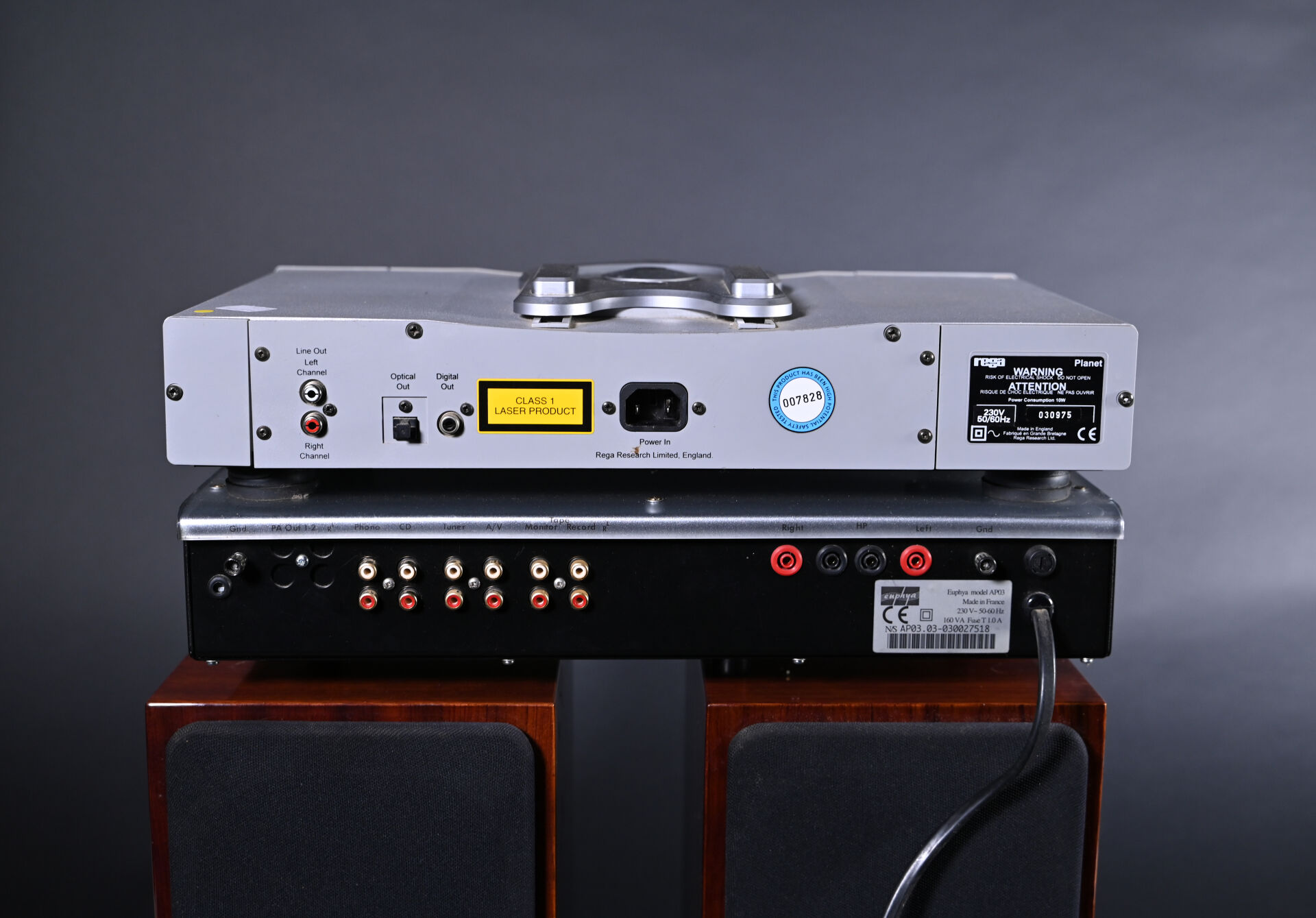 Ensemble soit un ampli Hifi EPHYLIA Alliance 250, AP 03, un lecteur CD REGA Planet, une enceinte HIFI Quad modèle 77-11 L 100 Watts.