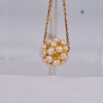 Ensemble soit une chaine en or jaune 18K 750/1000e à maille forçat et un pendentif sphères à petites perles ovales. Poids chaine : 2,15 g.
