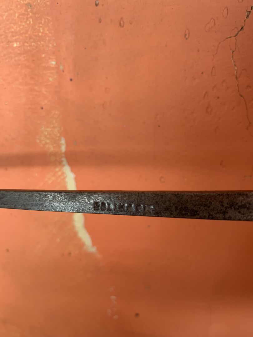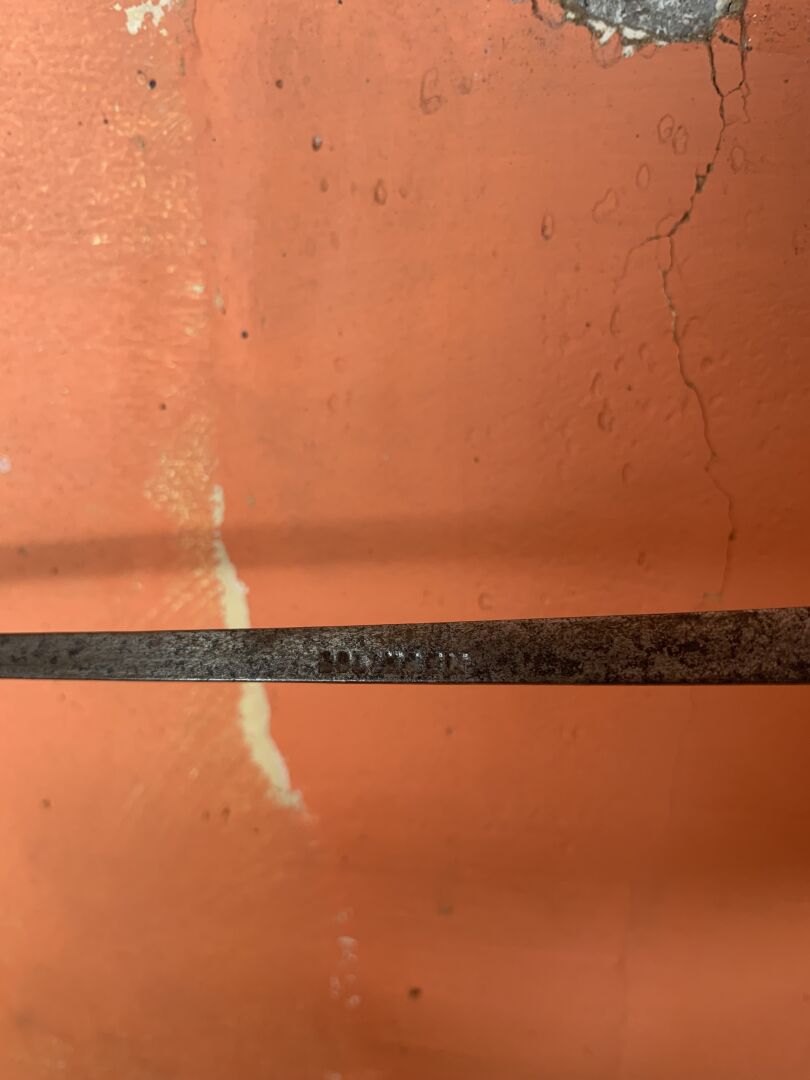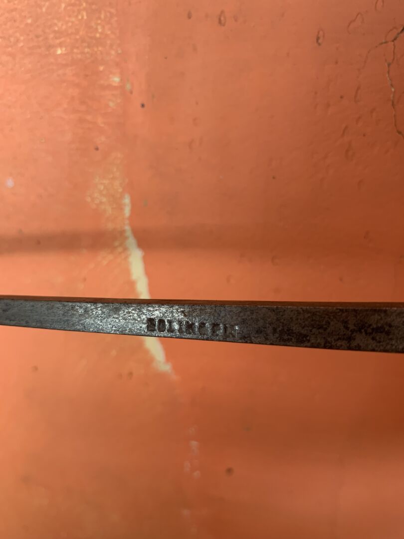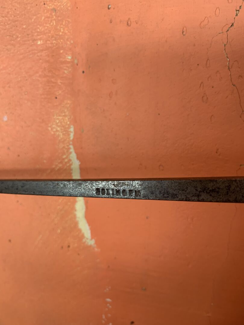 Épée d’escrime dans le goût d’une rapière à la Taza. Fine lame droite à quatre pans. Coquille hémisphérique. Pas de fourreau. État 2.