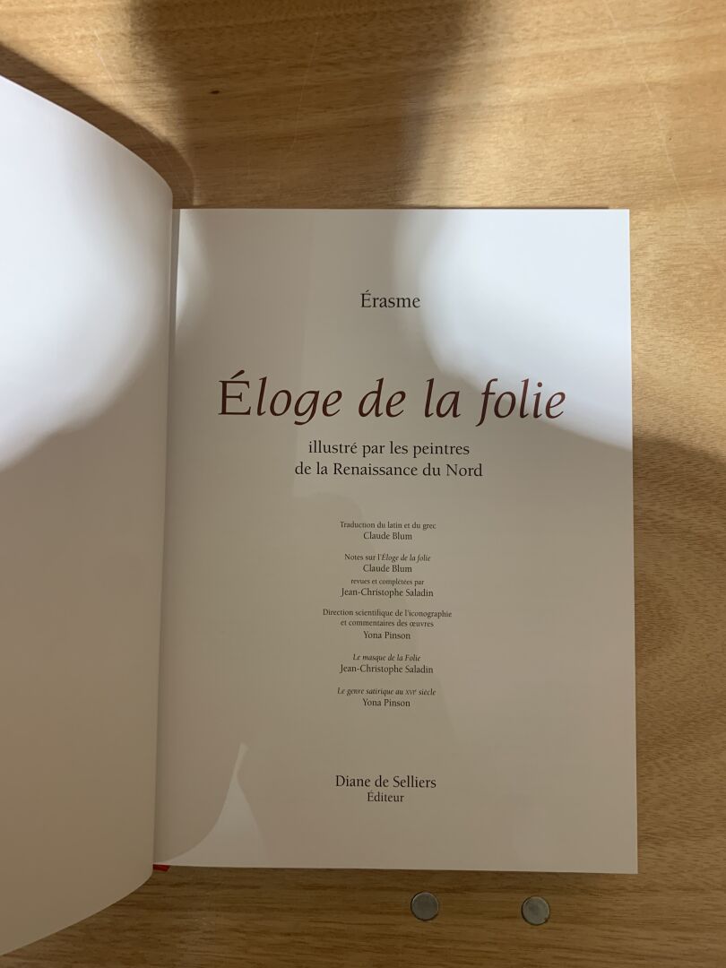 ERASME par Claude BLUM. « Éloges de la folie : illustré par les peintres de la Renaissance du Nord ». Édition Diane de Selliers. Dans un emboitage éditeur.