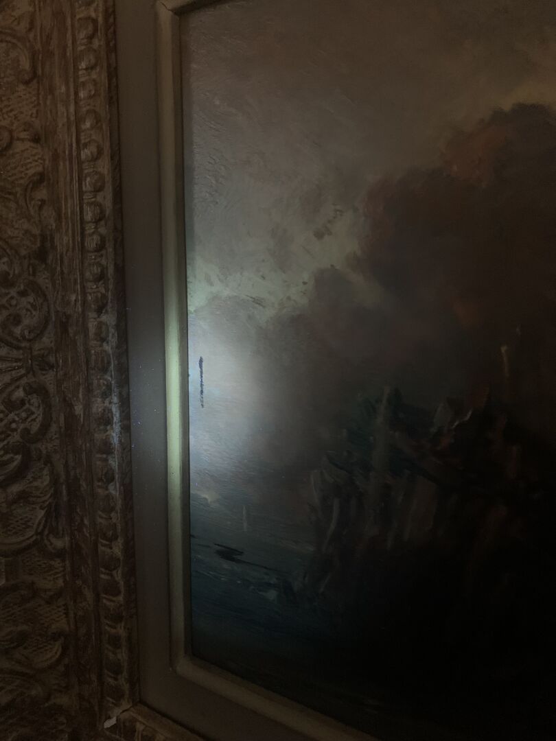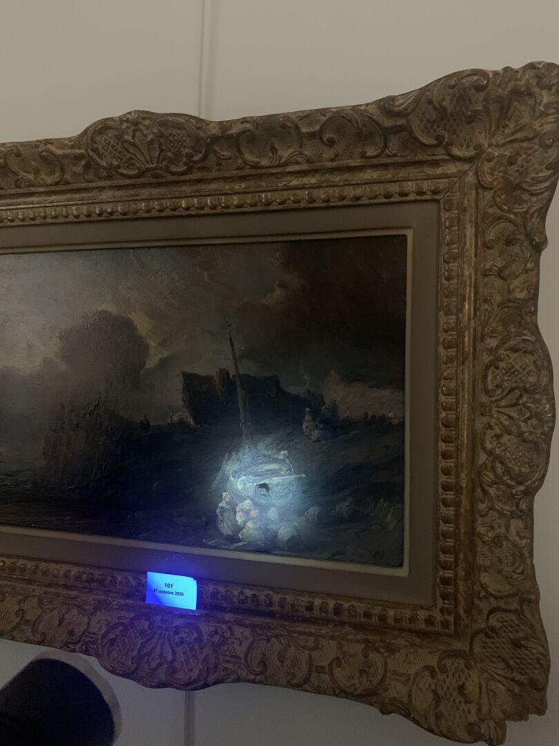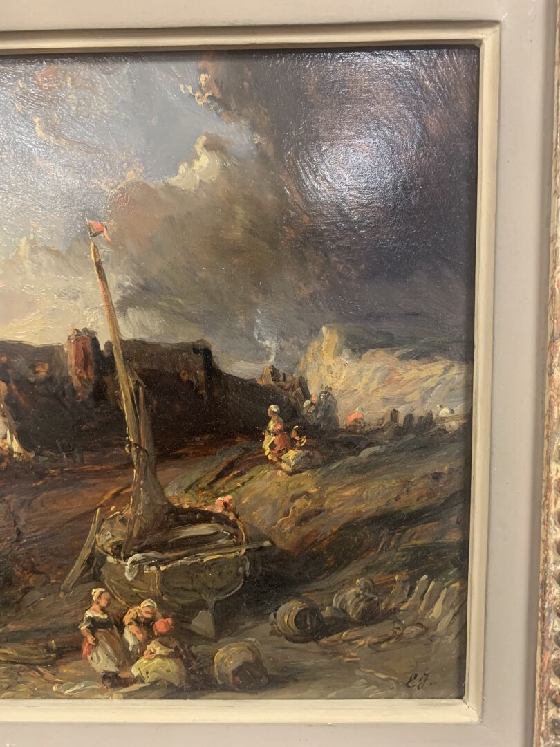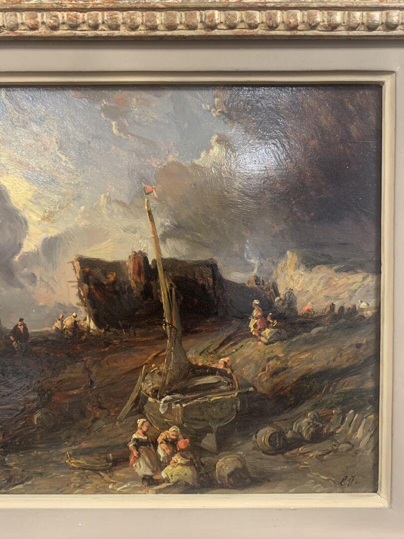 Huile sur panneau de bois, monogramme E.J en bas à droite (quelques petits repeints).