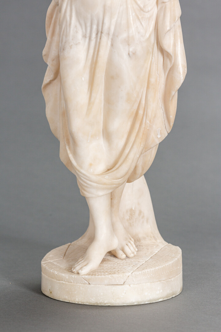Eugenio BATTIGLIA (XIXe-XXe siècle). Sculpture en marbre blanc représentant une femme à l’antique. Signée en bas au dos. Haut. : 58 cm.