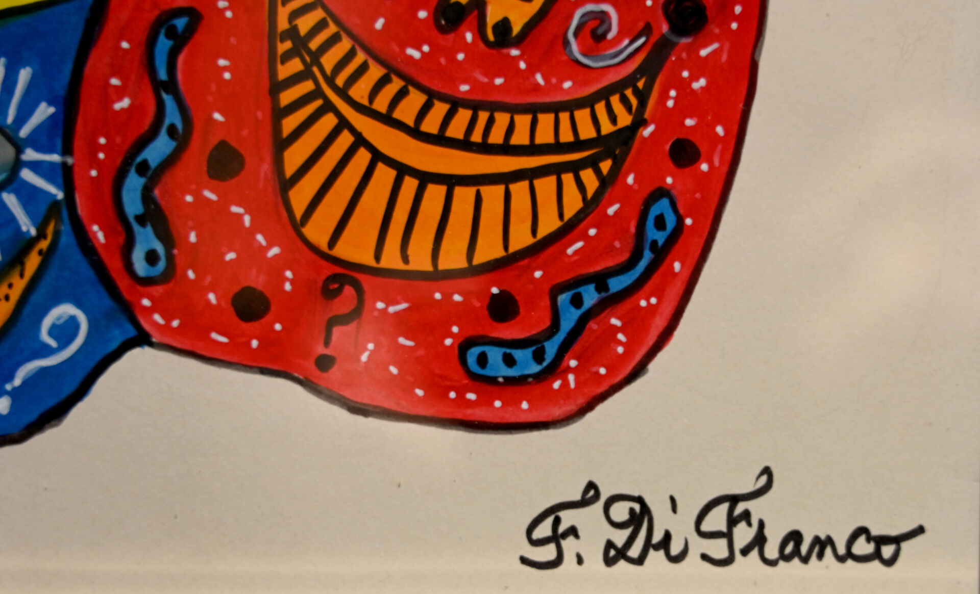 F DI FRANCO (XXe siècle) . Composition aux visages. Gouache et aquarelle signée en bas à droite. 40 x 30 cm.
