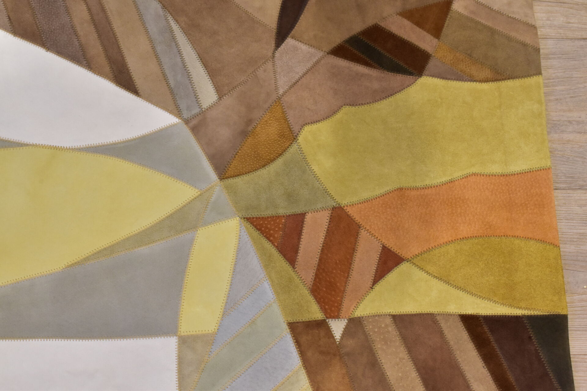 FABRICE (XX° siècle). Tenture Mosaïque de cuir « Ailes d’Automne ». Signée devant, contre signée et titrée au dos. 161 x 120 cm.