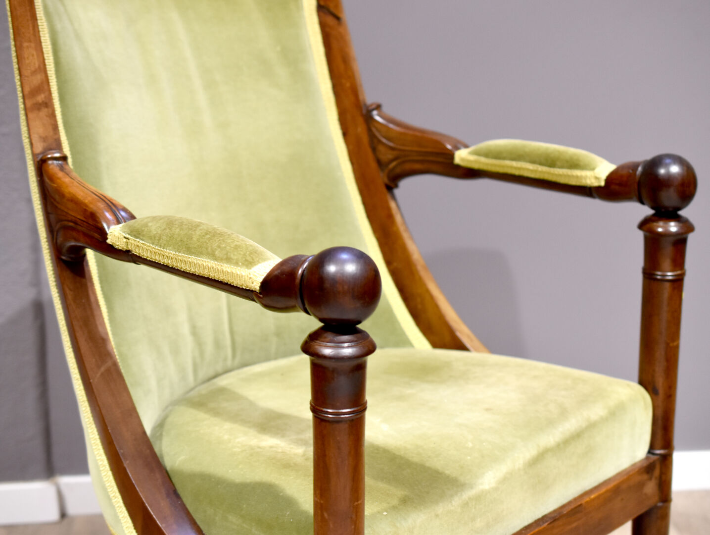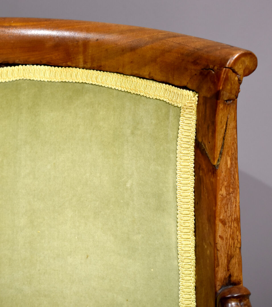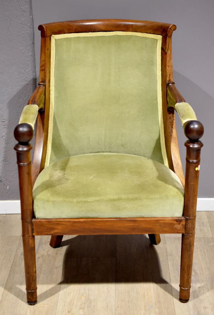 Fauteuil en acajou (accidenté). Epoque Empire. Haut. : 88 cm.