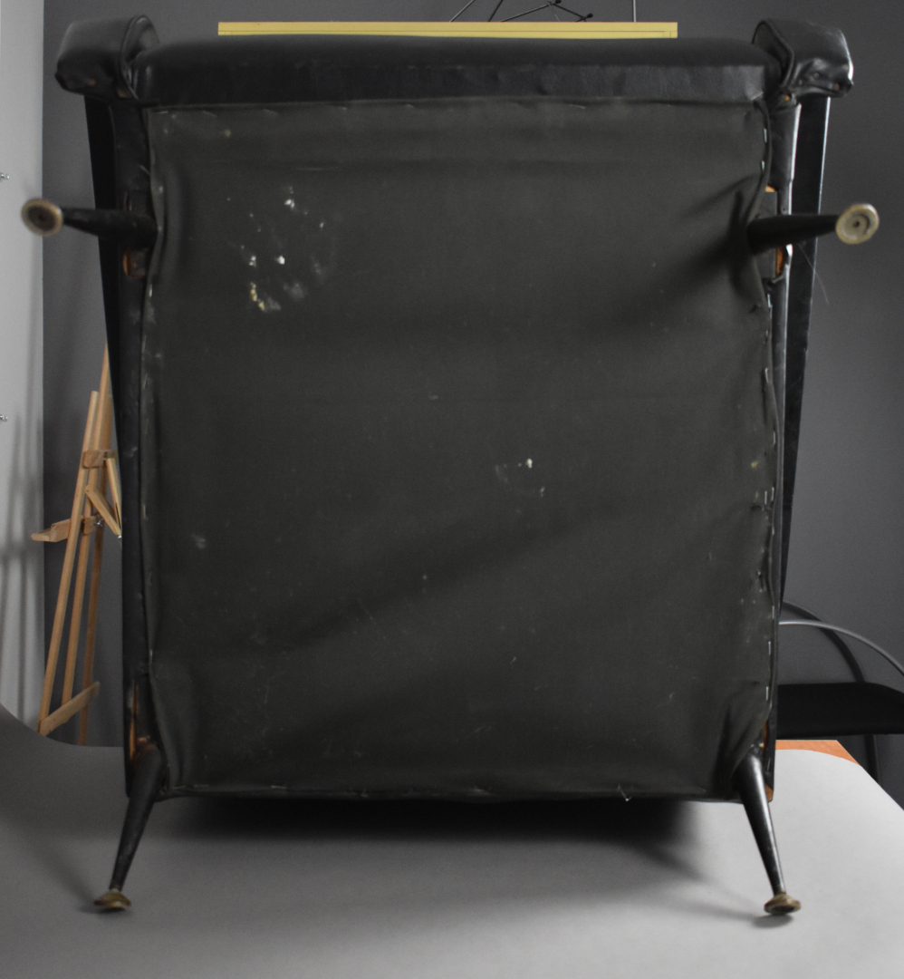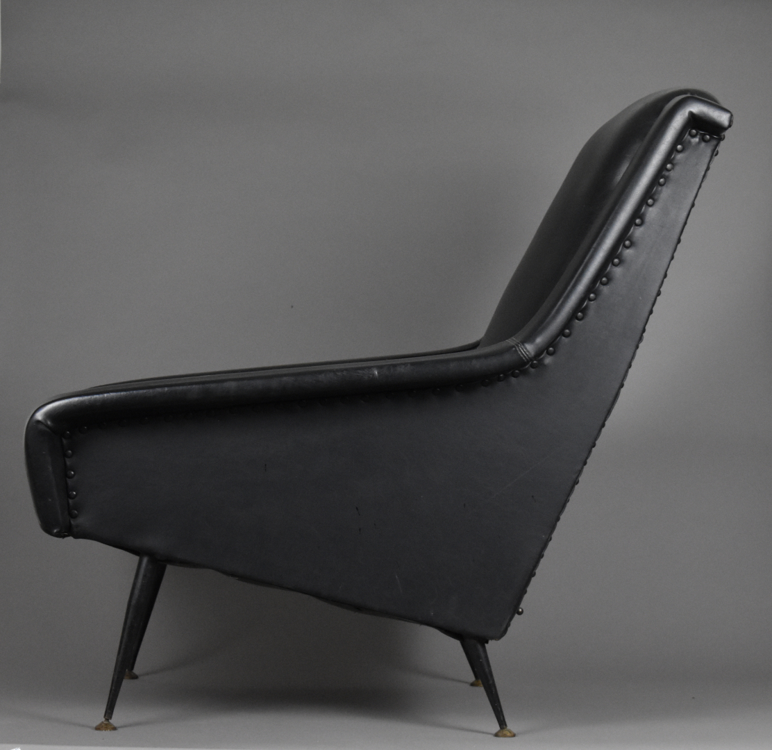 Fauteuil type rockabilly à garniture de skaï noir (usures). Vers 1950.