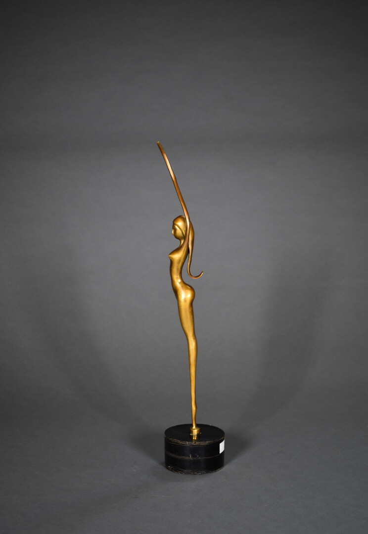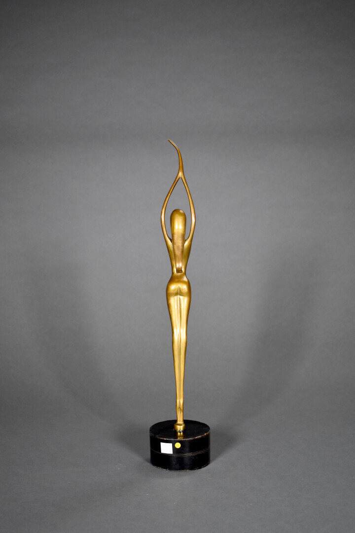 Figure en bronze représentant une danseuse les bras levés. Socle en bois laqué noir. XXe siècle. Haut. : 53 cm.