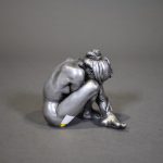 Figurine en résine à patine métallique représentant une femme la tête dans les genoux. Monogrammé SP. Haut. : 13 cm.
