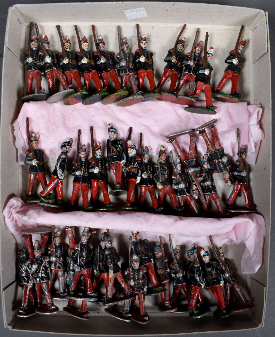 Figurines en aluminium, la plupart Quiralu en état d’usage. Saint-Cyrien au défilé. 41 pièces