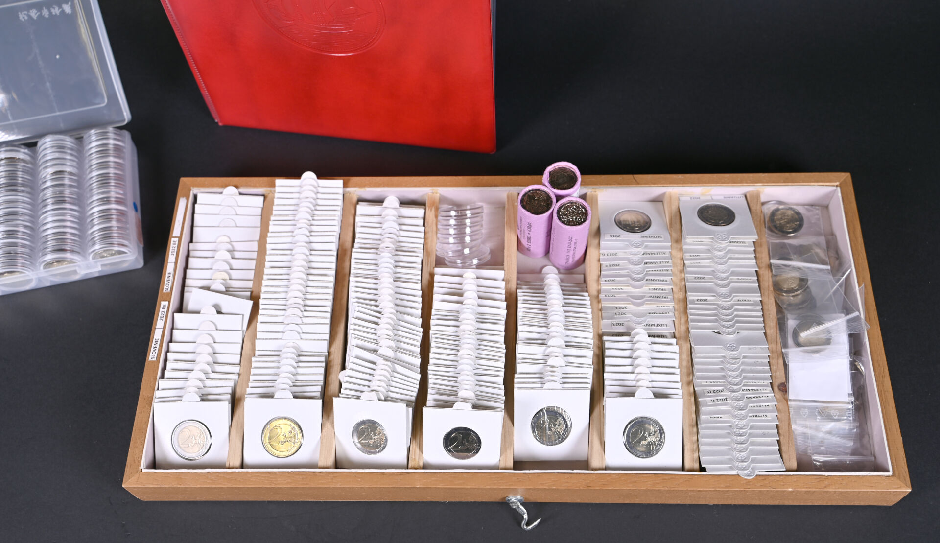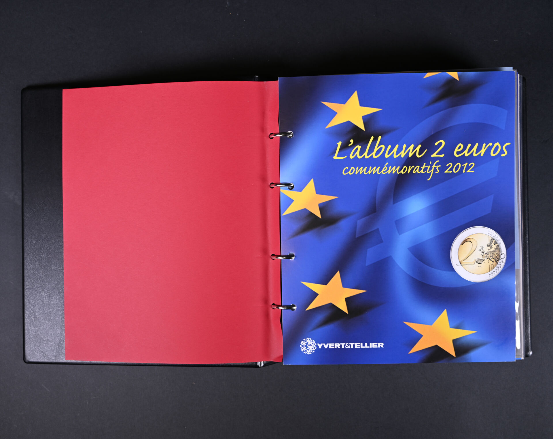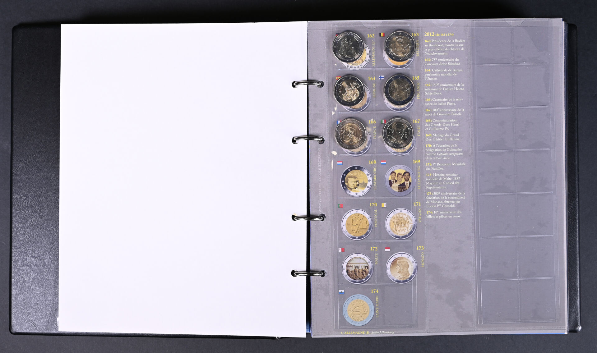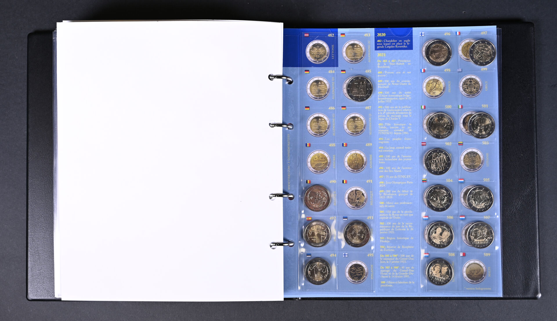 Forte collection d’environ 540 pièces de 2 euros, pays, classées par années à partir de 2004.