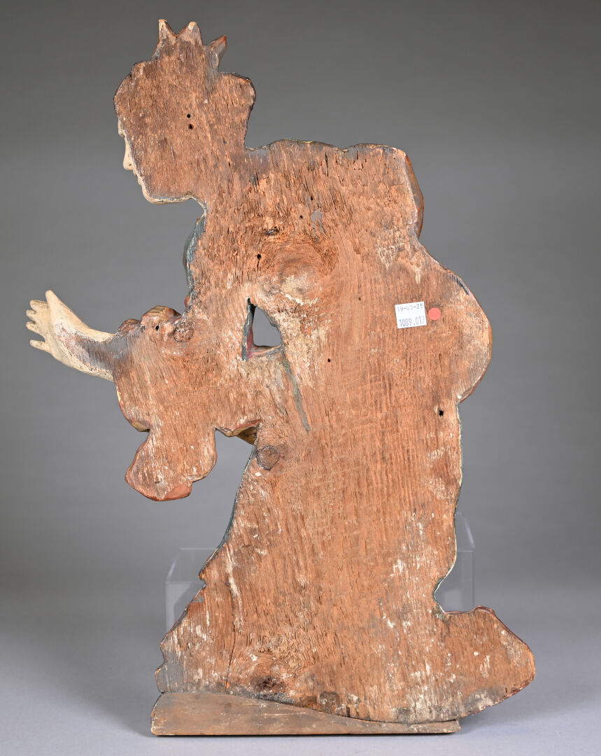 Figure d’applique sculptée en relief en bois polychromé et doré
