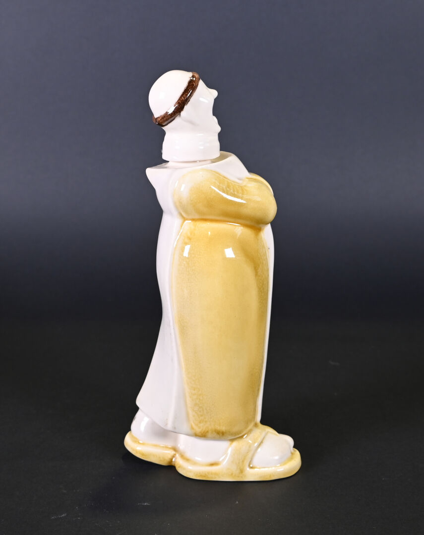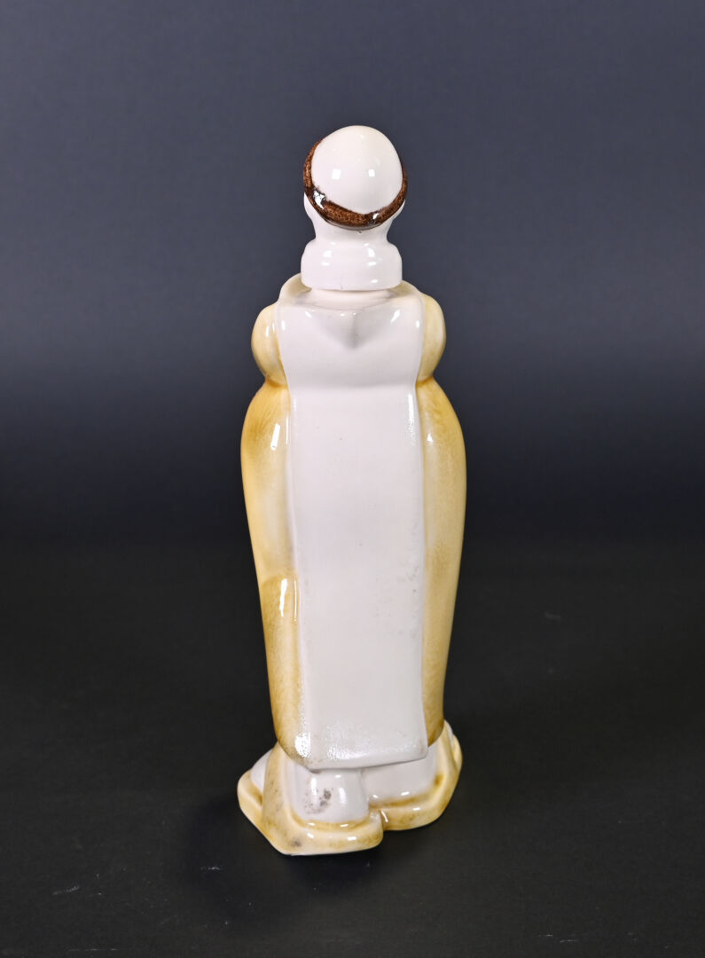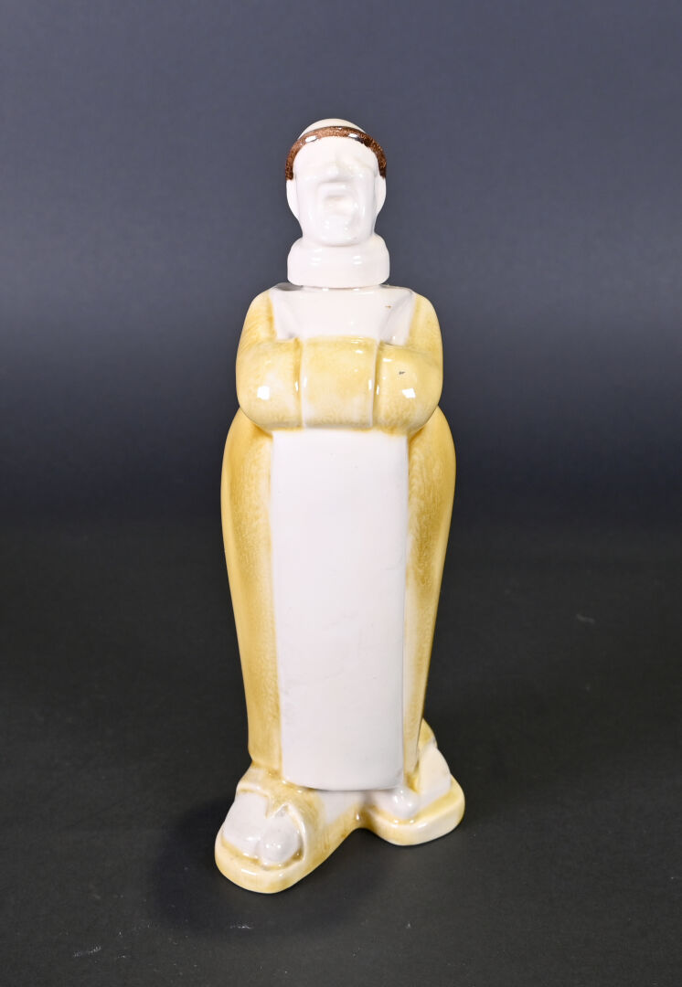 FRANOR ROYALE. Bouteille en céramique représentant un moine, la bouche ouverte. Haut. : 25,5 cm.