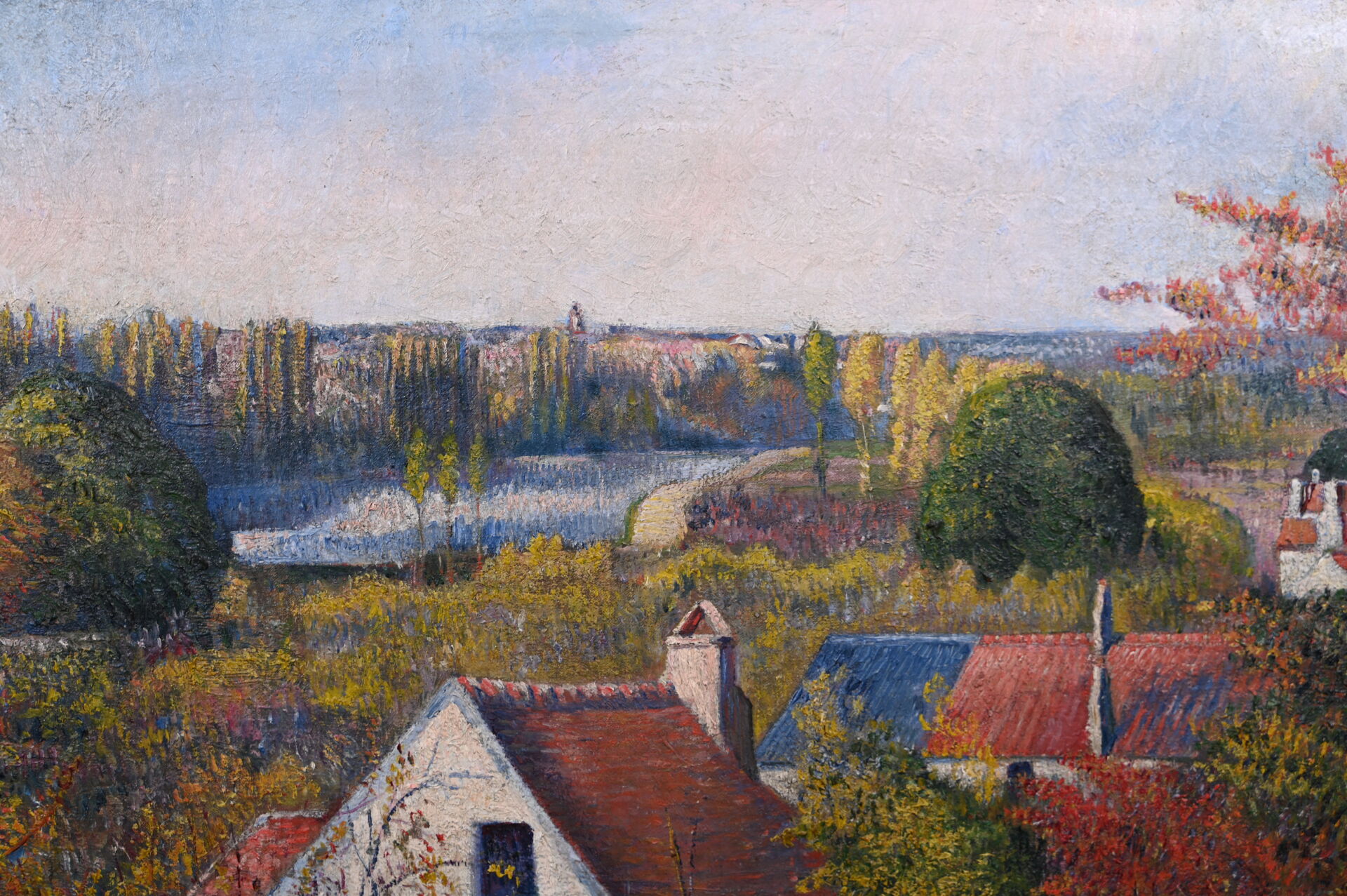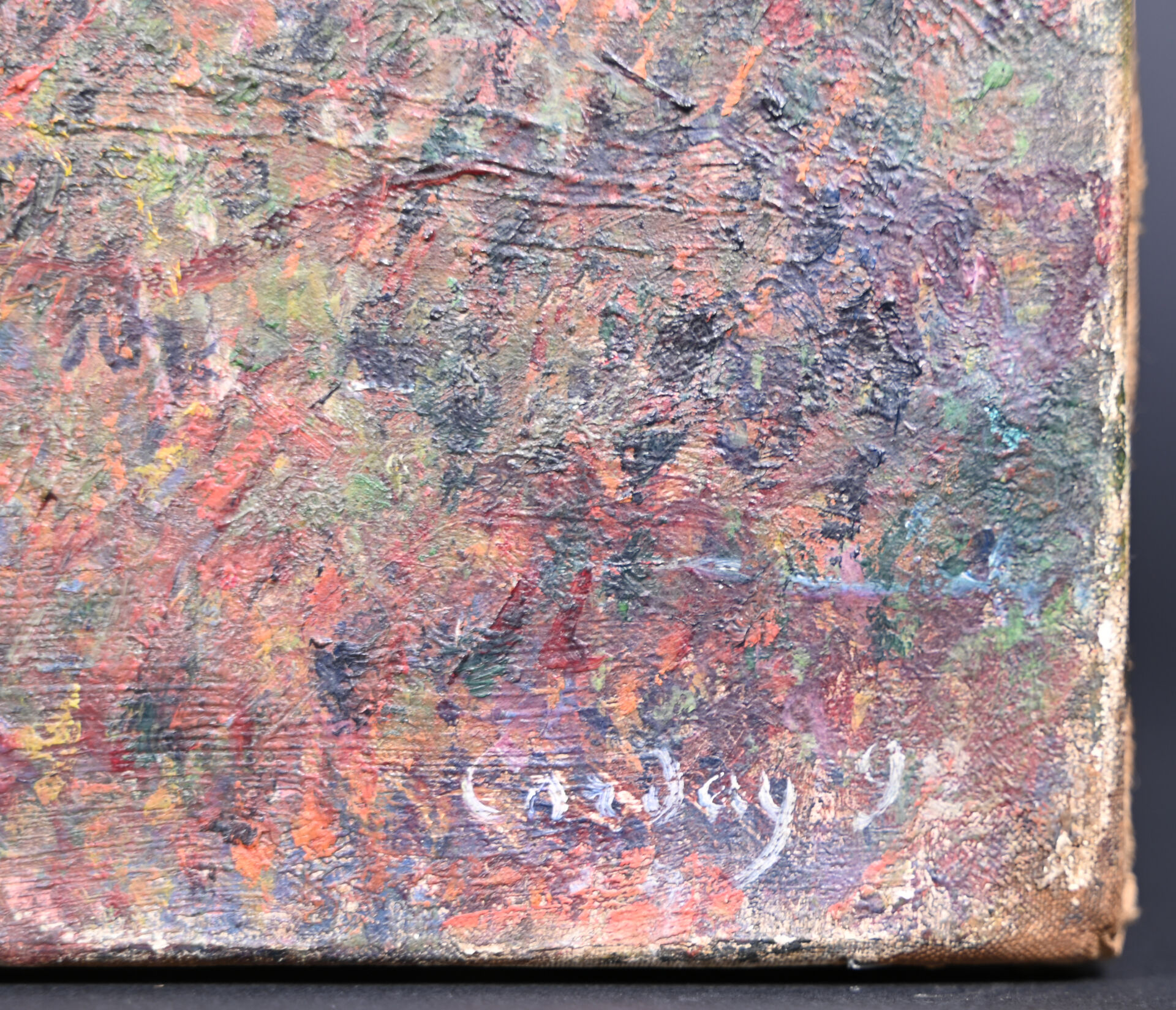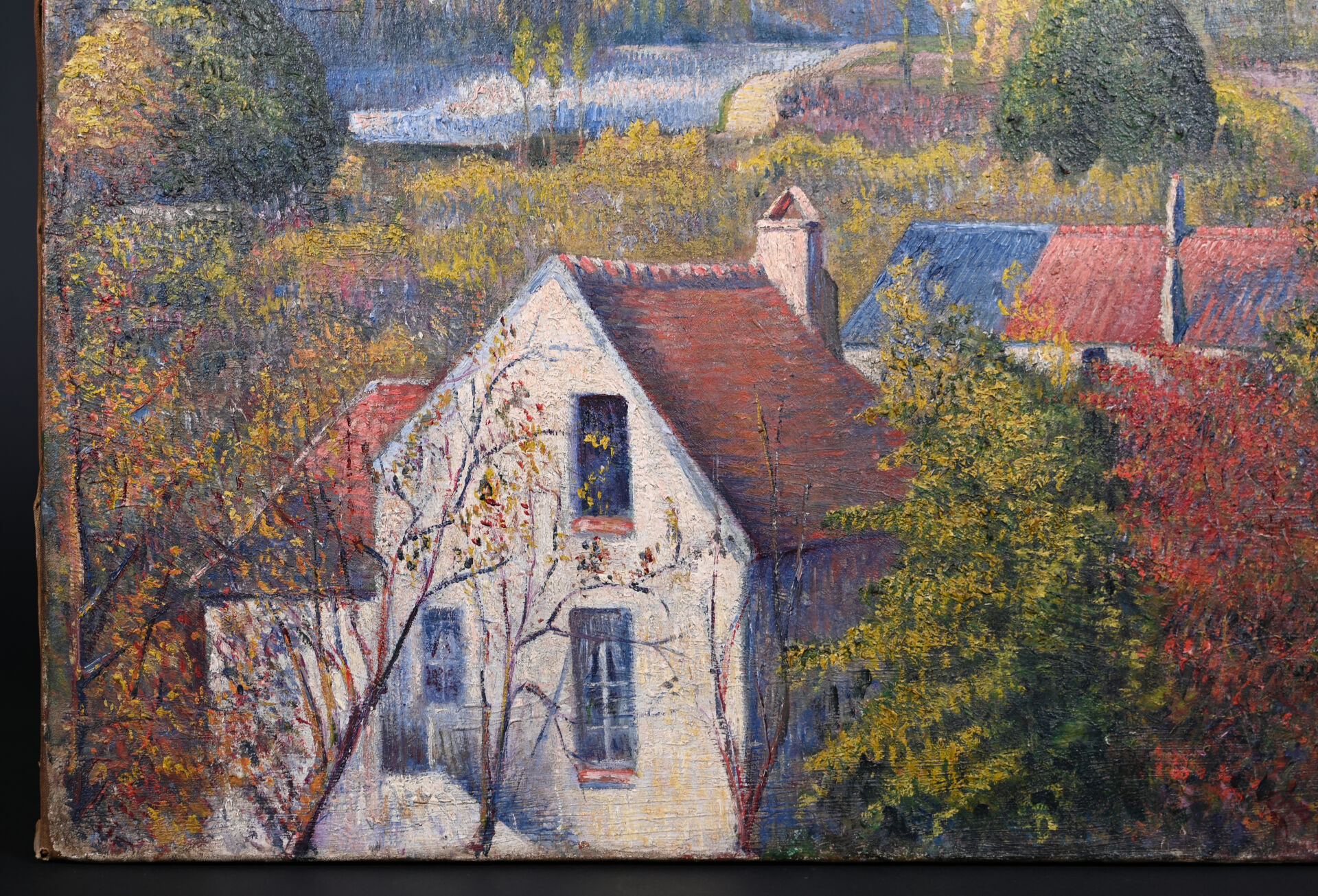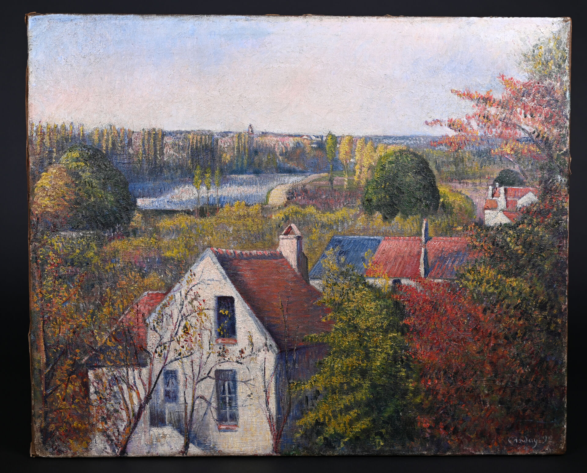 Frédéric-Samuel CORDEY (1854-1911). Cours de l’Oise, Pontoise. Huile sur toile signée en bas à droite et datée 1892, située au dos au crayon. Au dos, sur une étiquette porte un numéro en rouge : 3977. (restaurations). 44,5 x 54 cm.