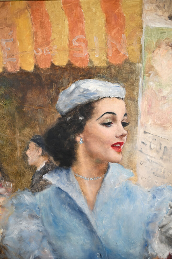 Fried PAL (1893-1976). Parisienne au béret et à la rose. Huile sur toile signée en bas à gauche. 76,5 x 61,5 cm.