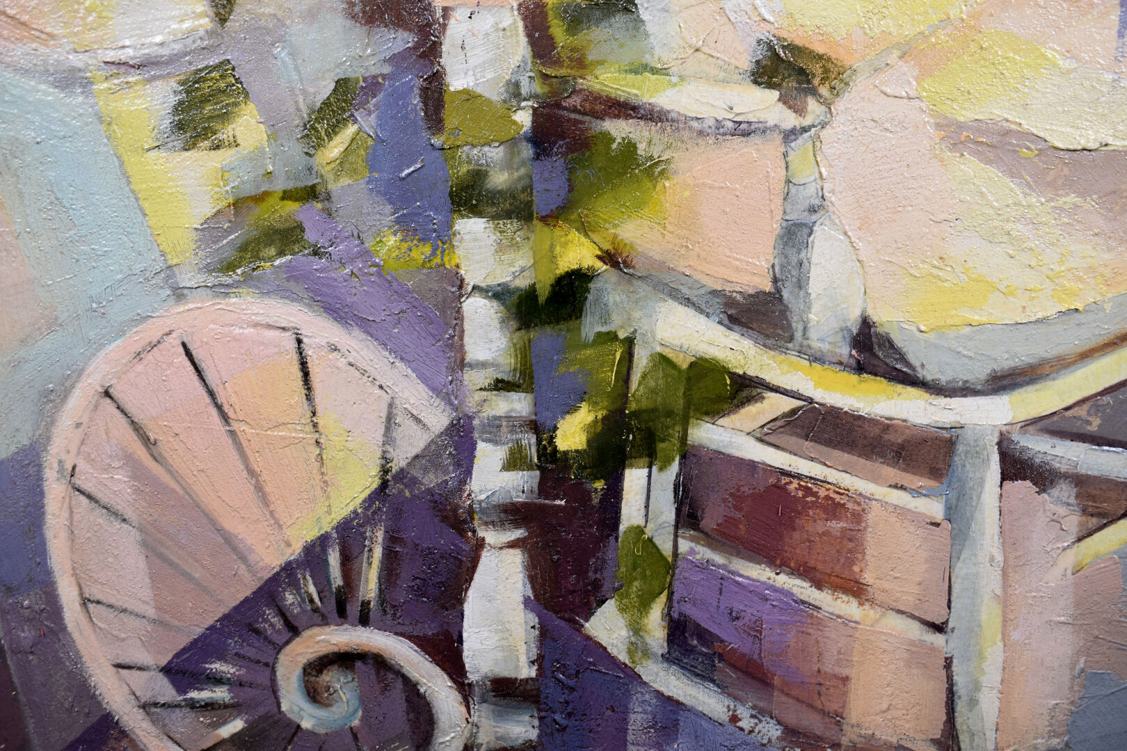 G.MAJORAL (XXe siècle). Georgette Majoral? Fauteuil à bascule. Huile sur panneau signée en bas à gauche. 65 x 50 cm.