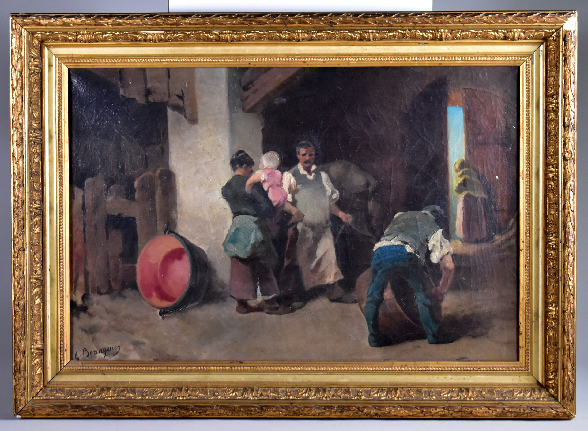 Gabriel BERINGUIER (1842-1913). Les dinandiers. Huile sur toile signée en bas à gauche. 40 x 61 cm.