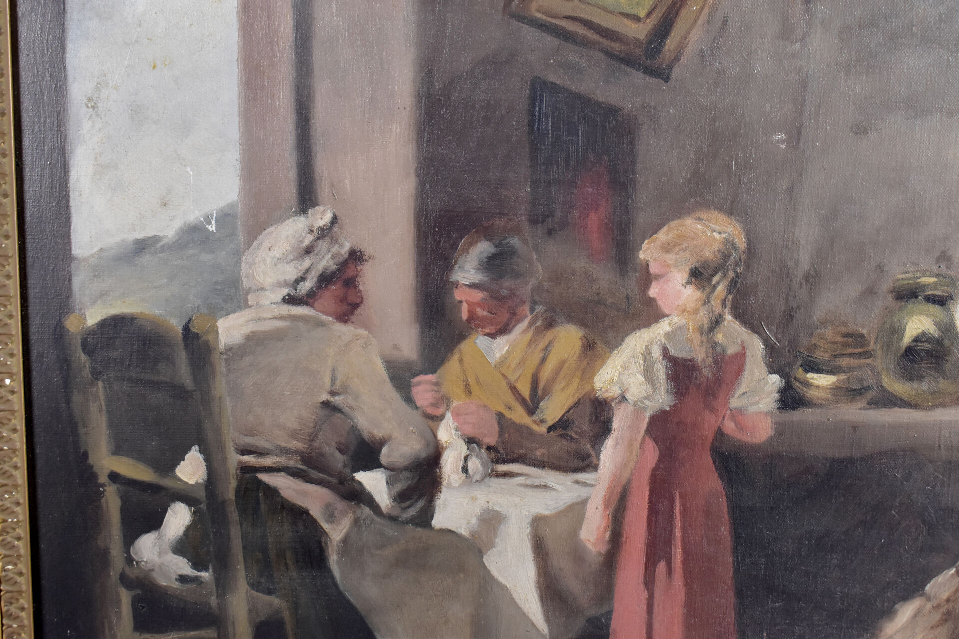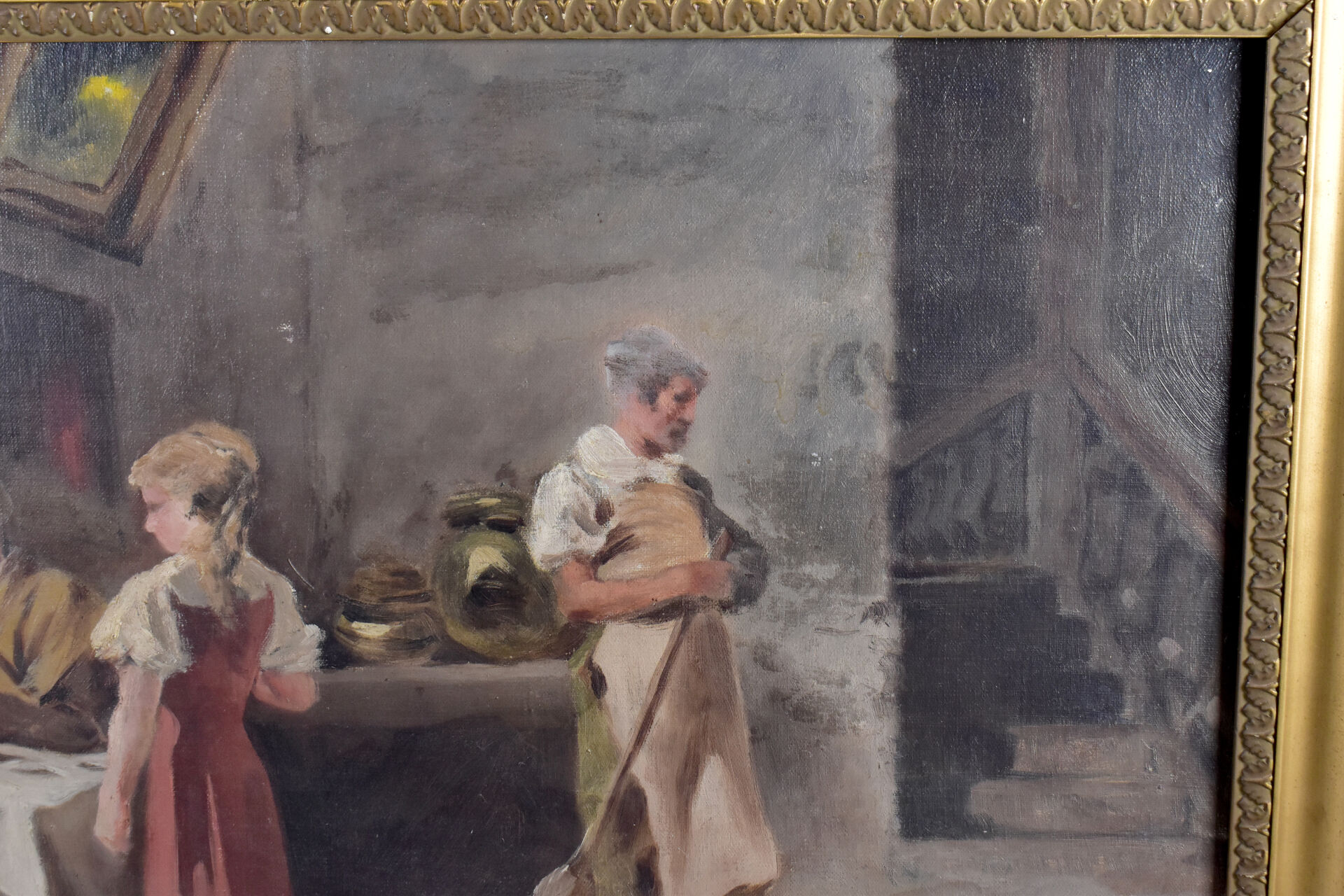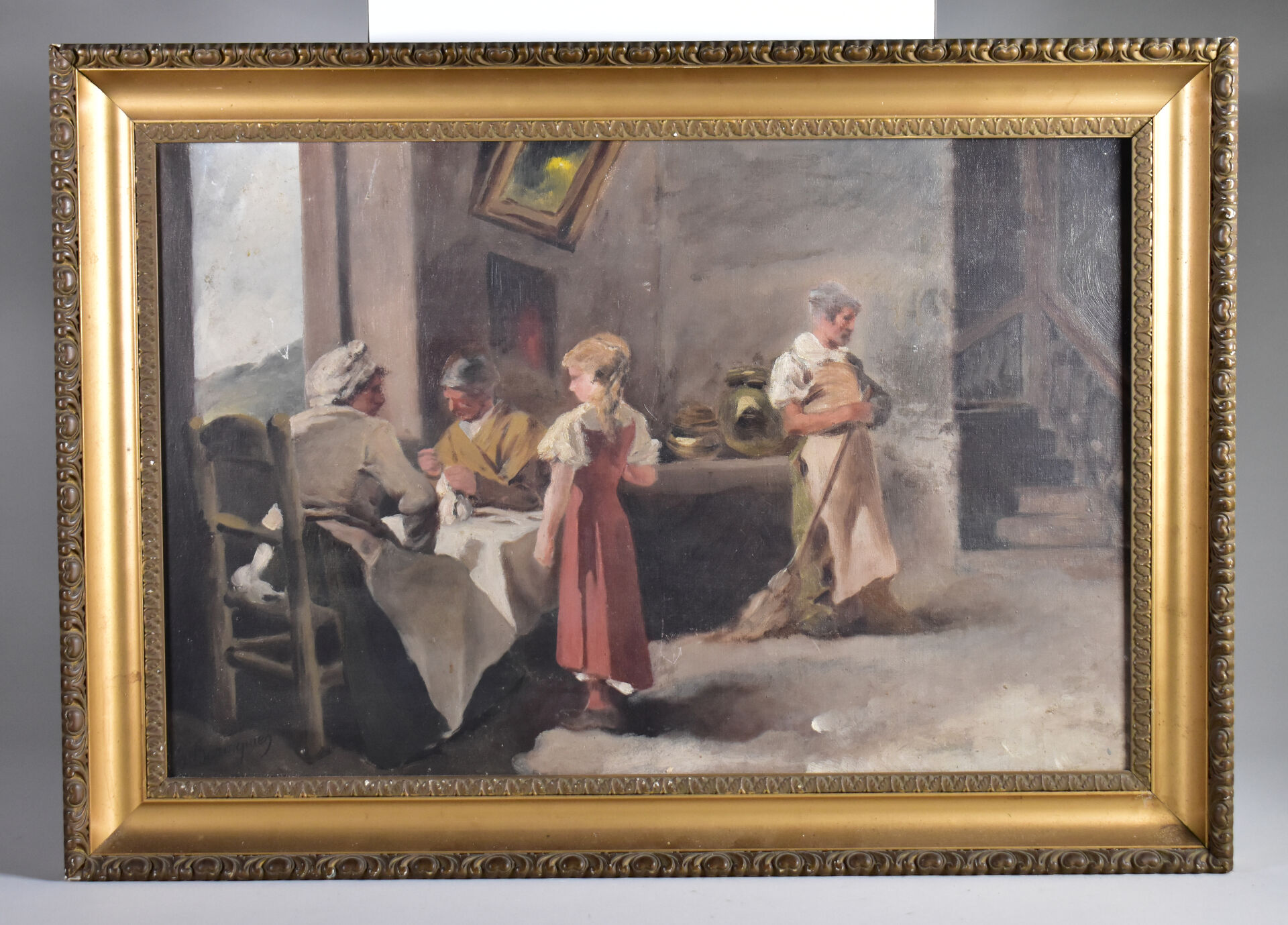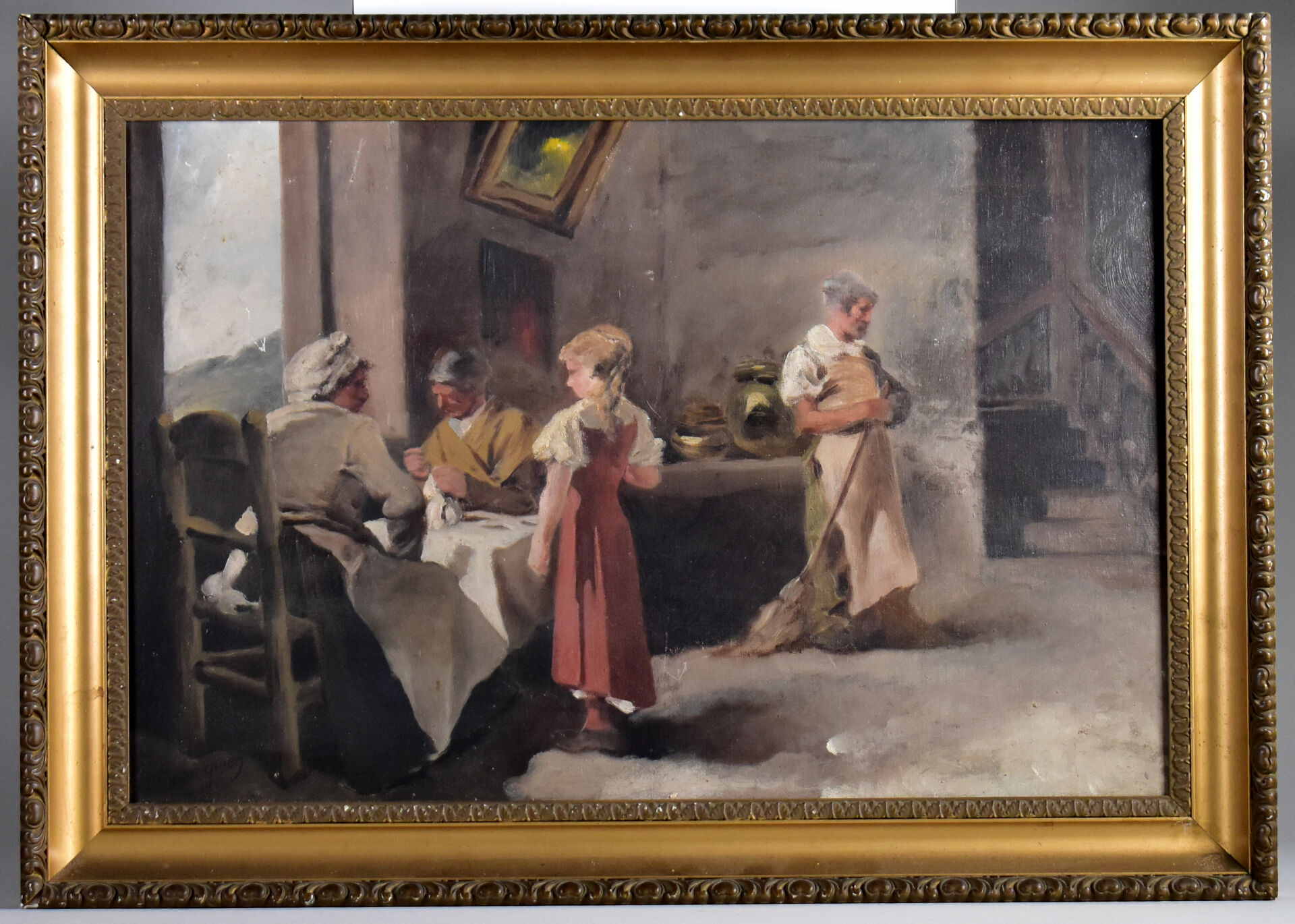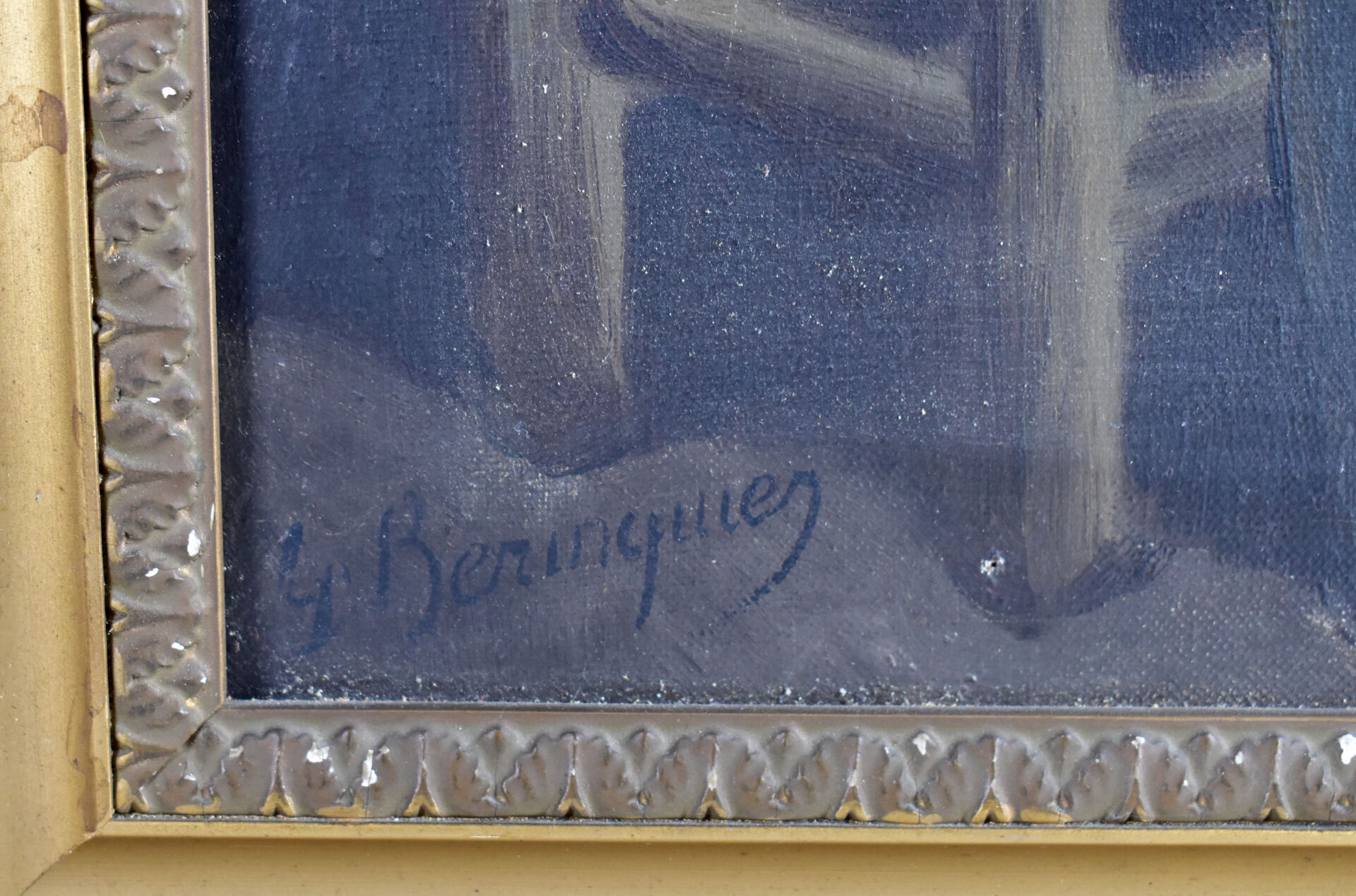 Gabriel BERINGUIER (1842-1913). Scène d’intérieur. Huile sur toile signée en bas à gauche. 40 x 61 cm.