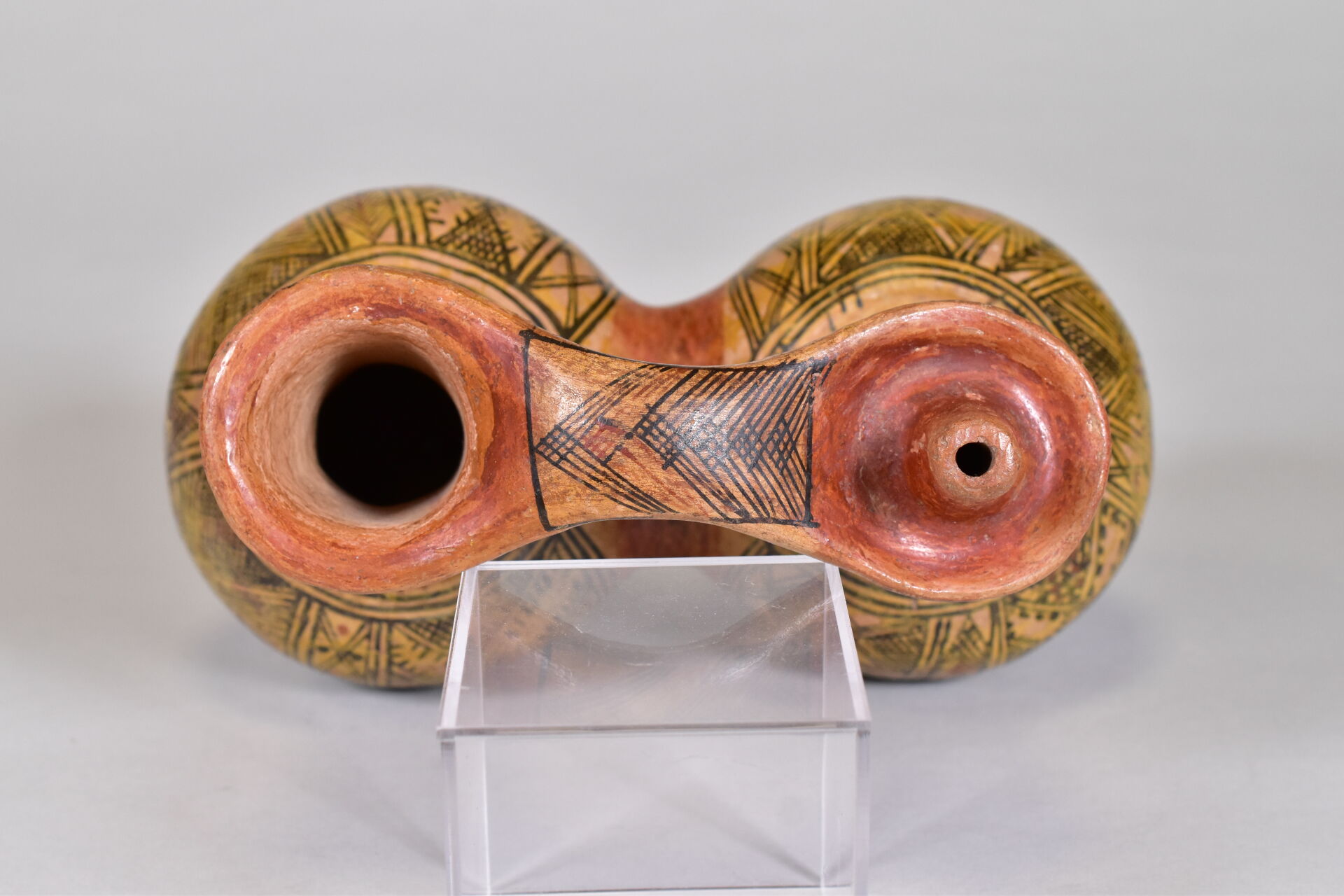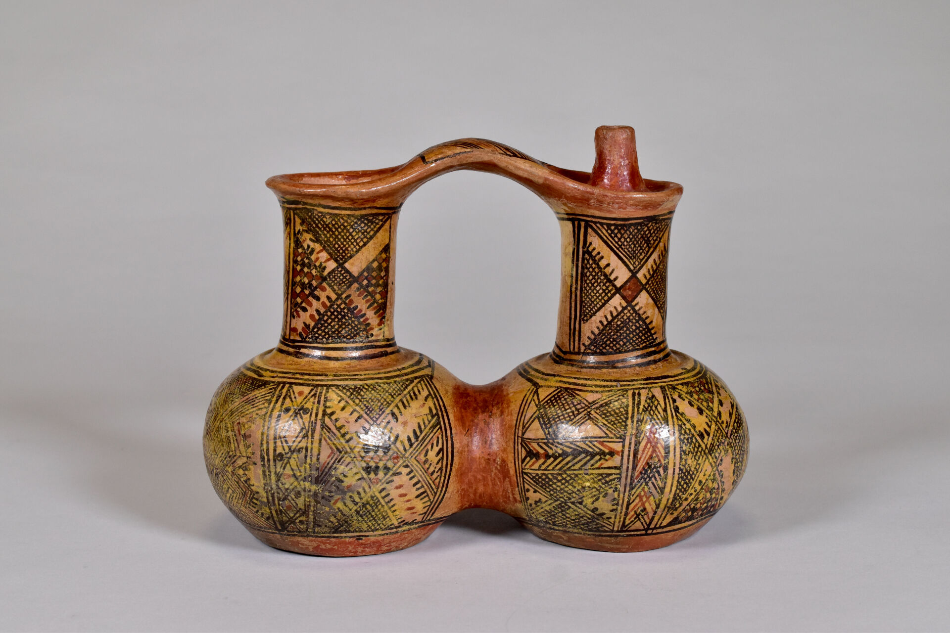 Gargoulette en terre cuite à motif géométrique. Kabylie, début du XXe siècle. Haut. : 18 cm – Larg. : 25 cm.