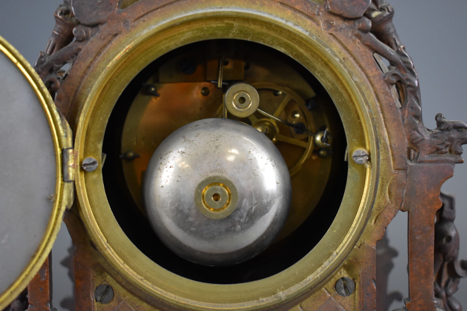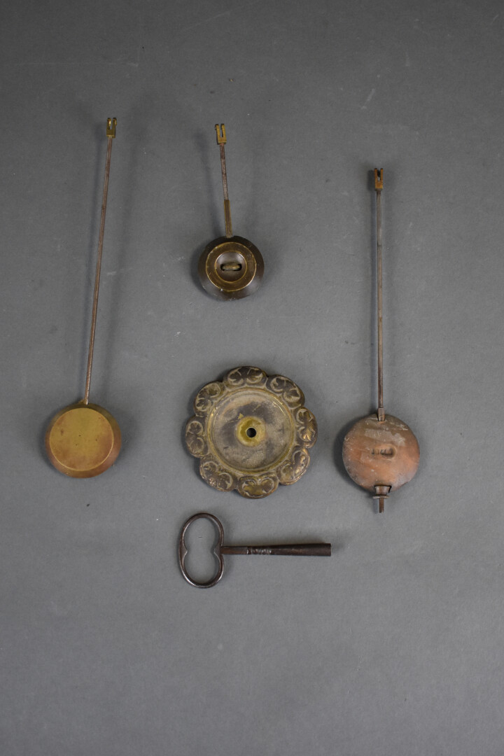 Garniture de cheminée en bronze comprenant une pendule et deux chandeliers. XIXe siècle.