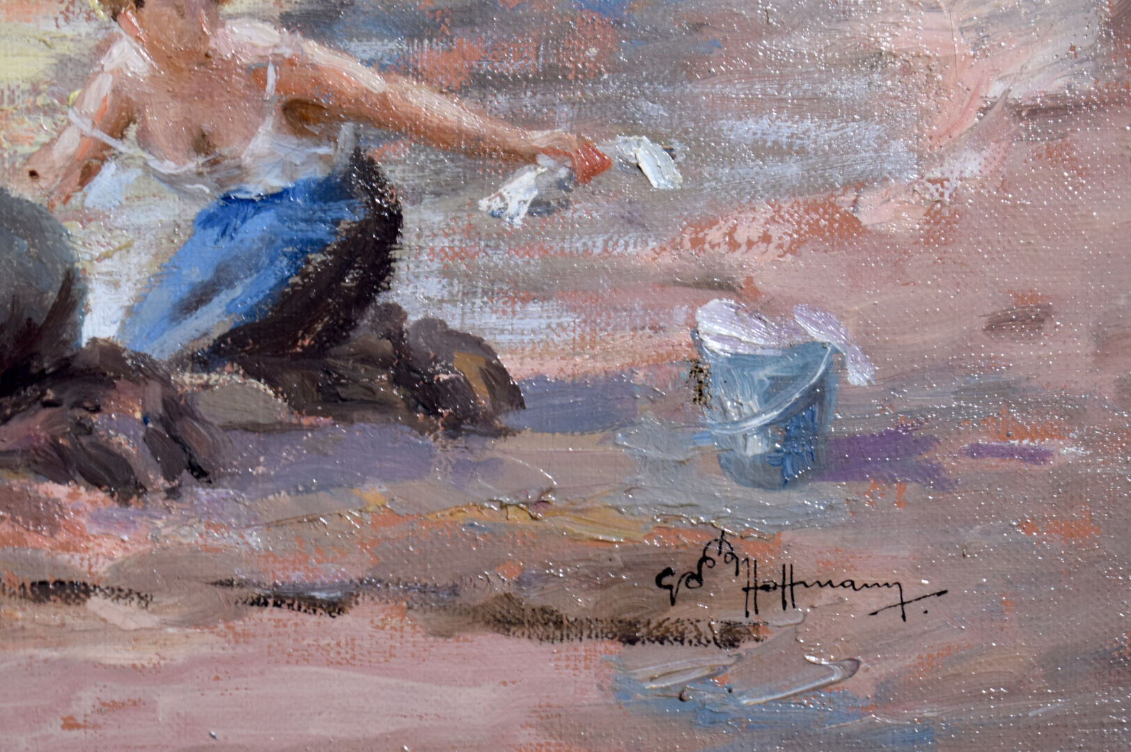Gaston HOFFMANN. Les lavandières de bord de mer. Huile sur toile signée en bas à droite (percée). 55 x 46 cm.