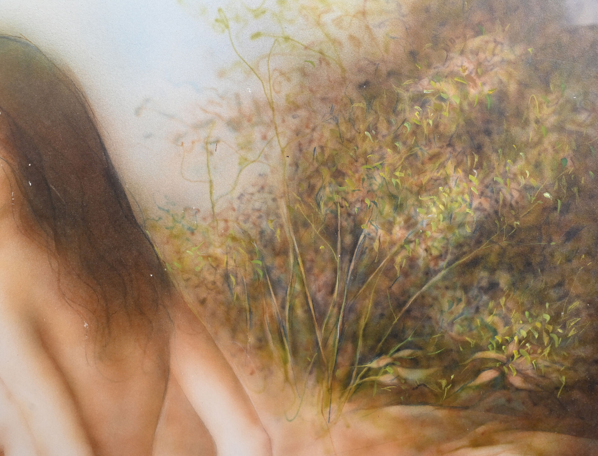 Georges MAZILU (1951). Baigneuse. Dessin à l’aquarelle, crayons et gouache ? signé en bas à droite. 51 x 66 cm.