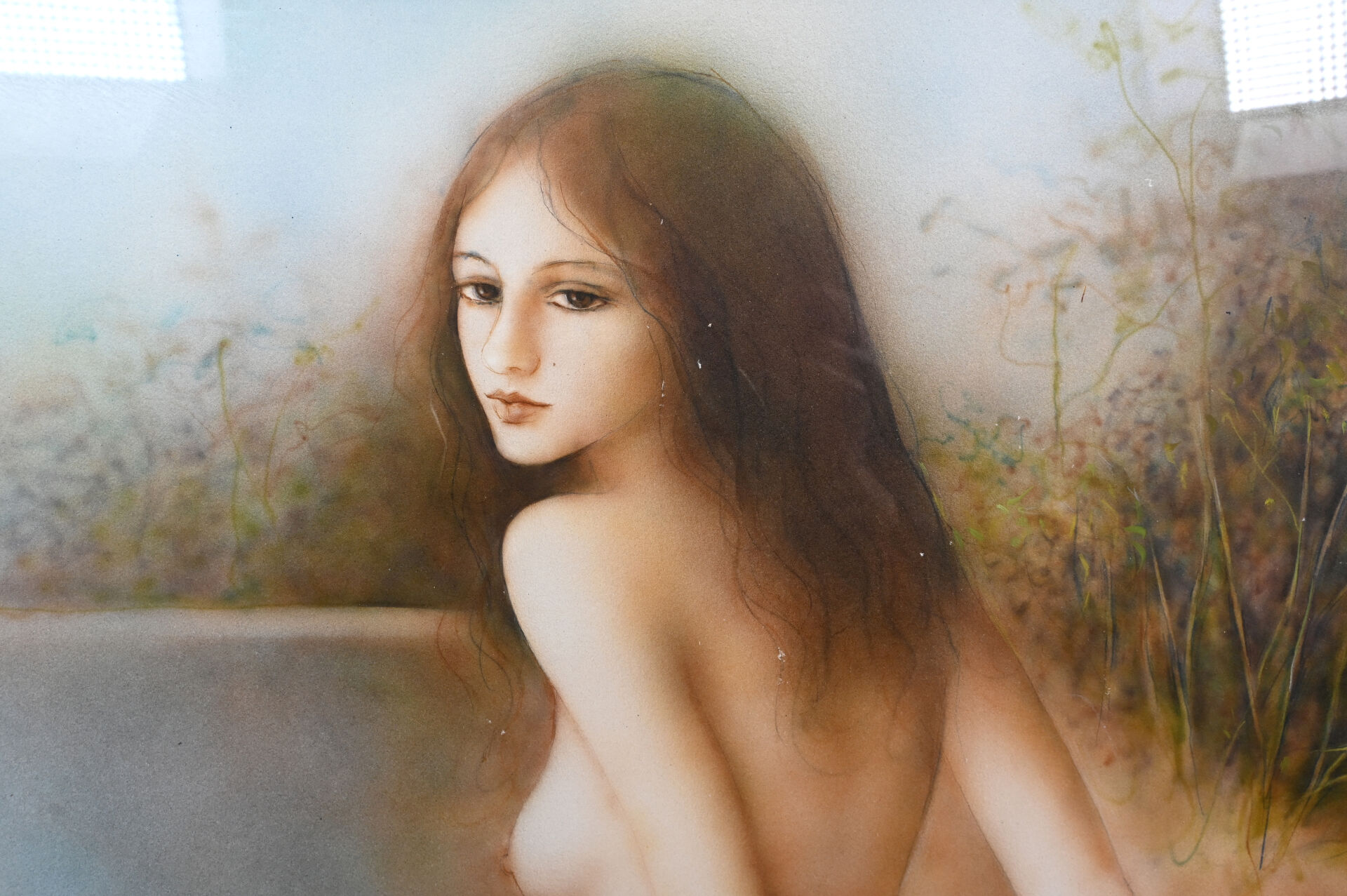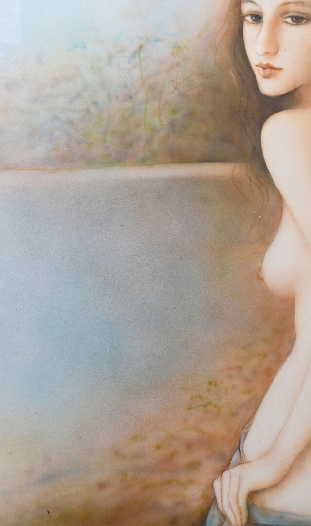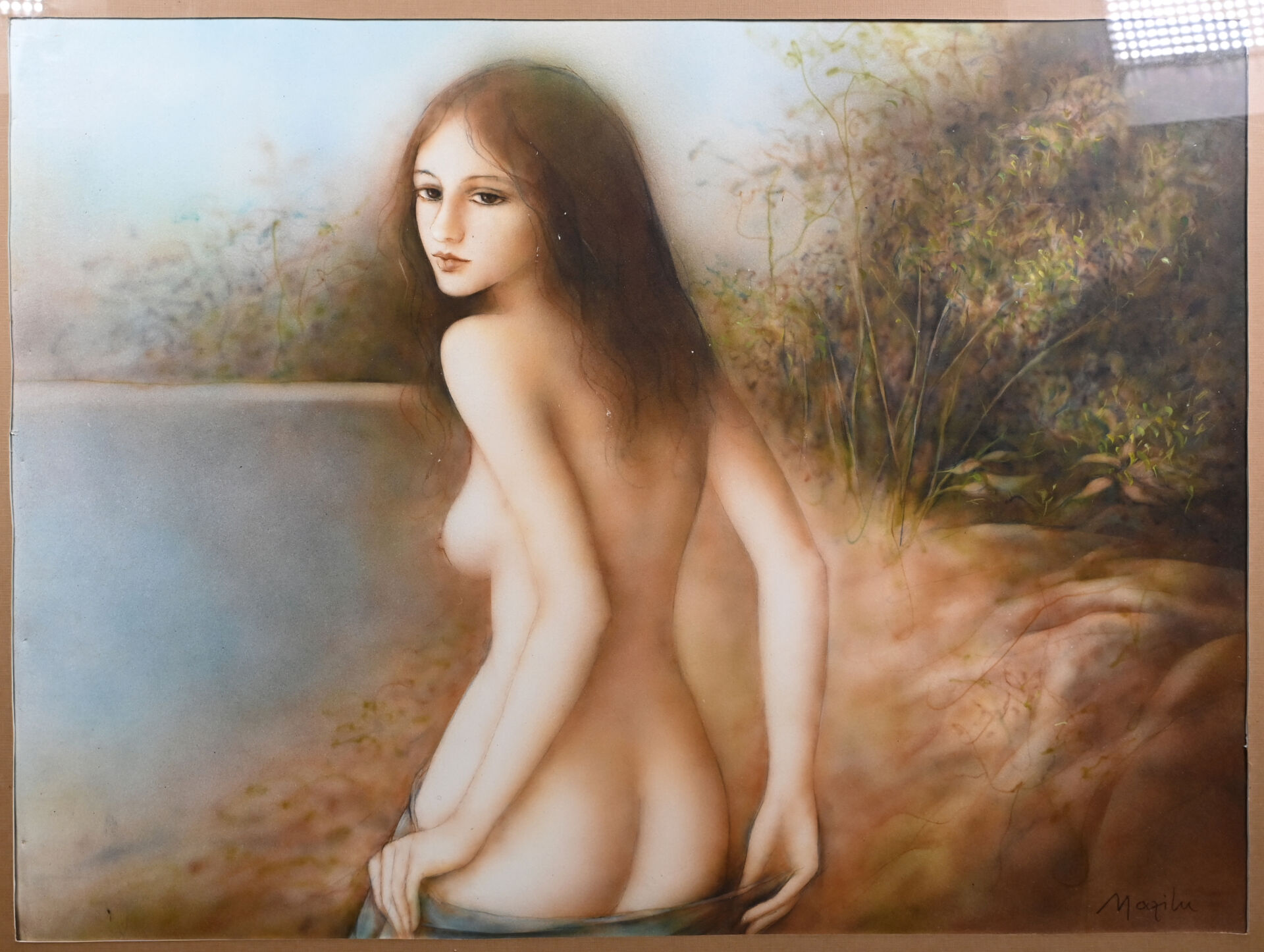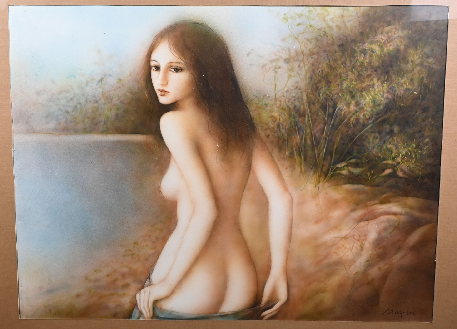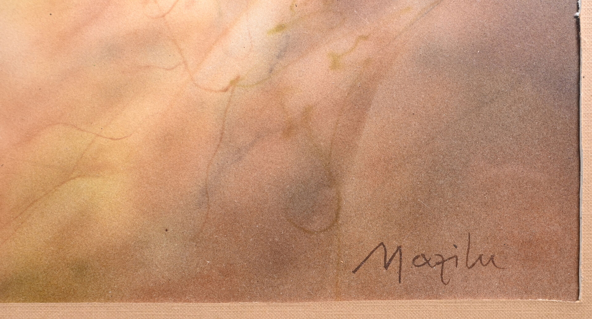 Georges MAZILU (1951). Baigneuse. Dessin à l’aquarelle, crayons et gouache ? signé en bas à droite. 51 x 66 cm.