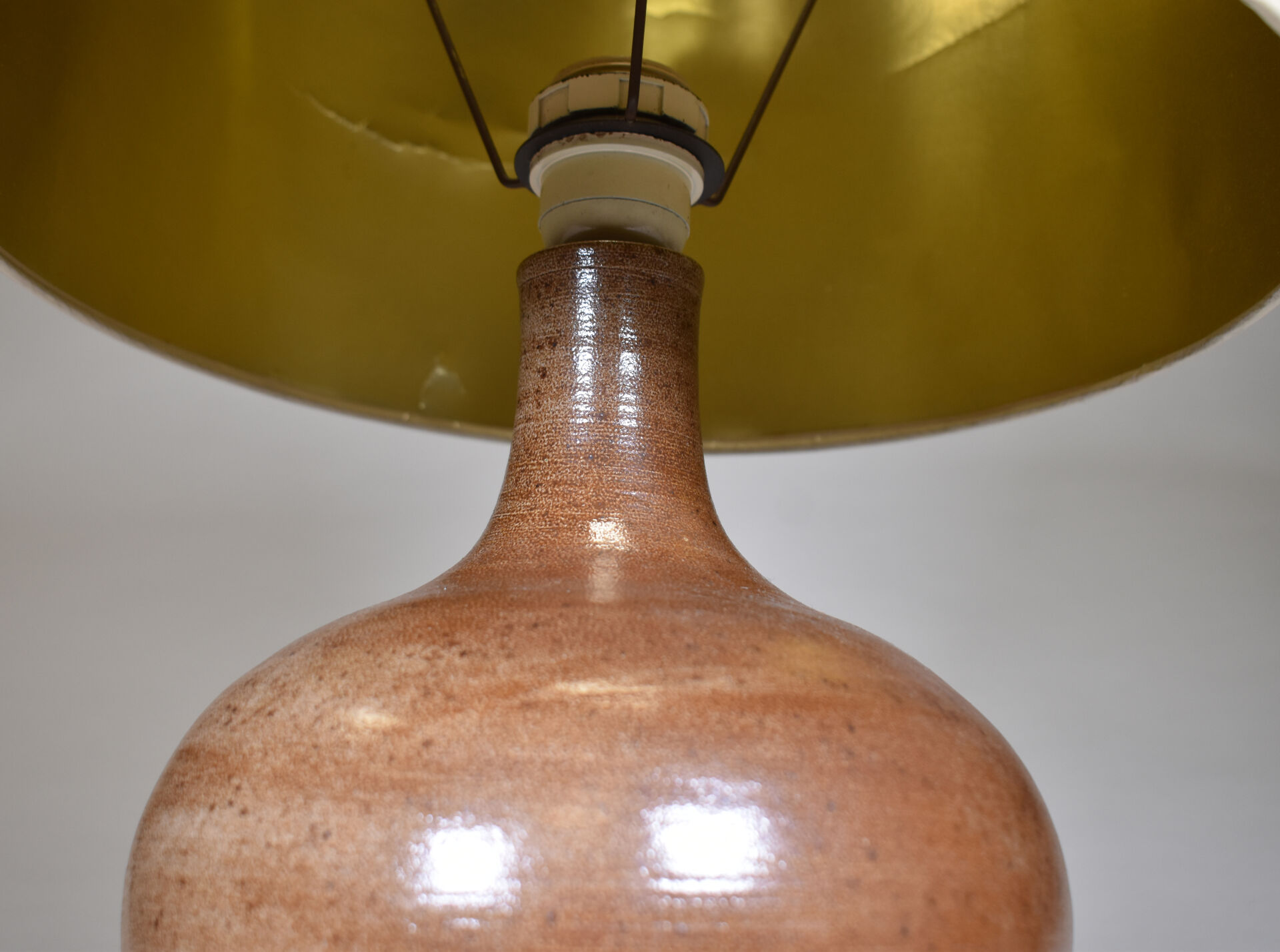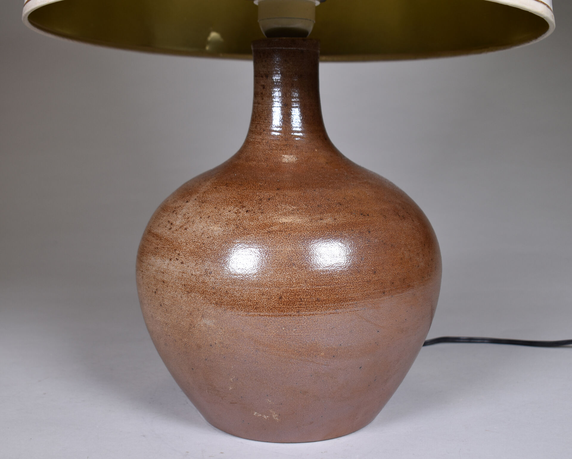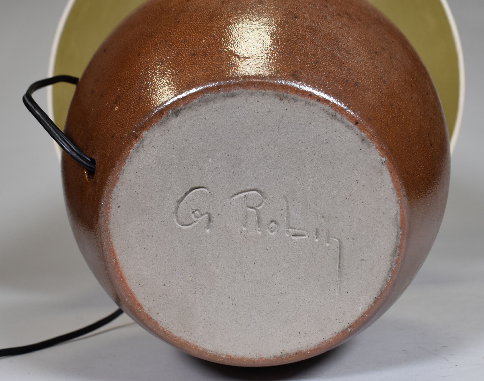 Georges ROBIN (Né en 1932). Lampe à poser ovoïde en grès émaillé ocre. Signé à la pointe au dessous. Haut. : cm (sans abat-jour).