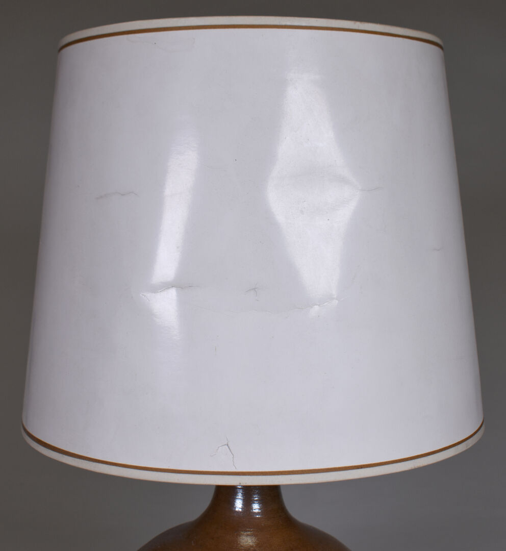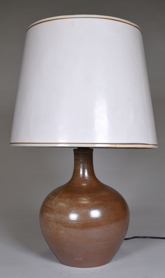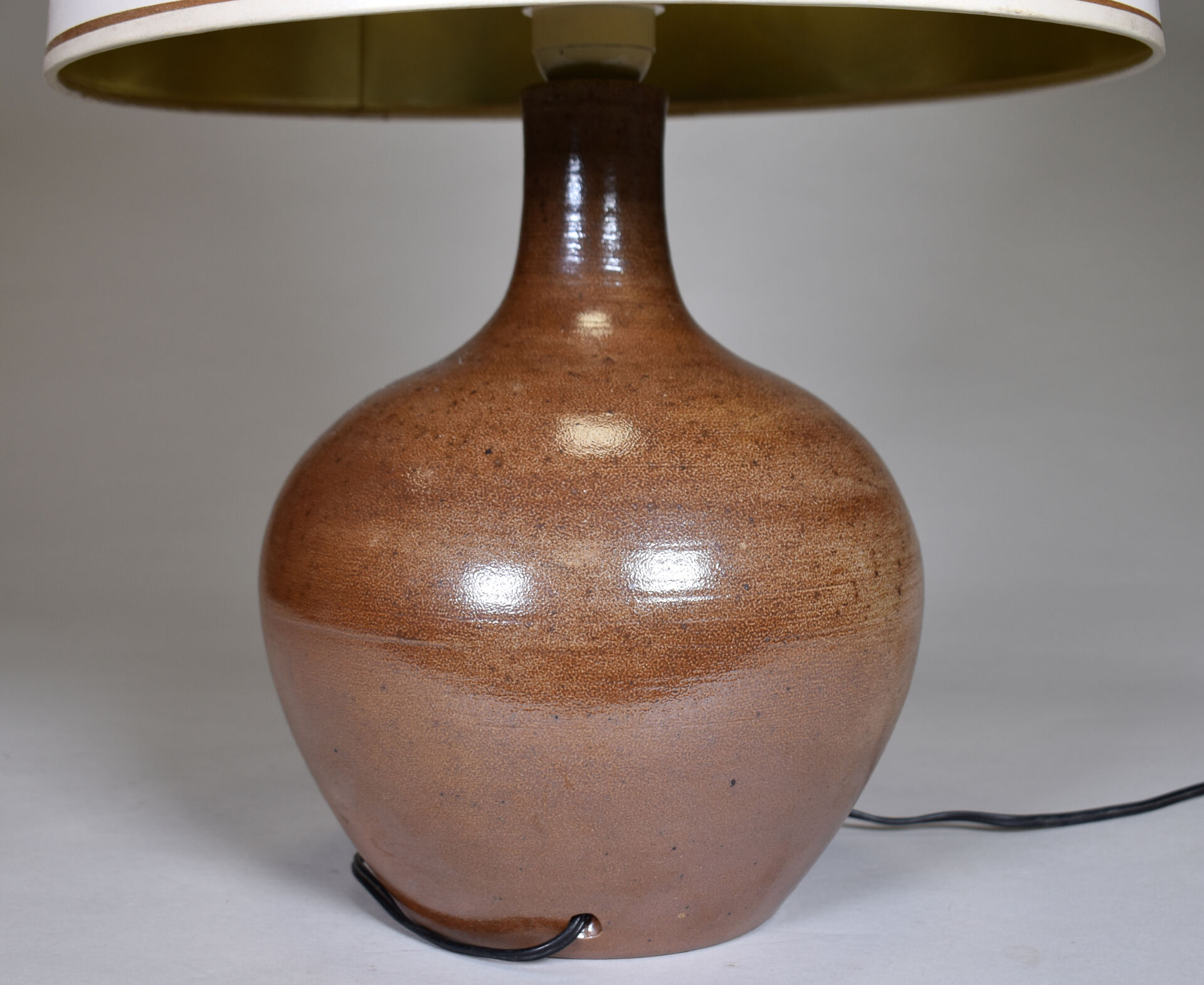 Georges ROBIN (Né en 1932). Lampe à poser ovoïde en grès émaillé ocre. Signé à la pointe au dessous. Haut. : cm (sans abat-jour).