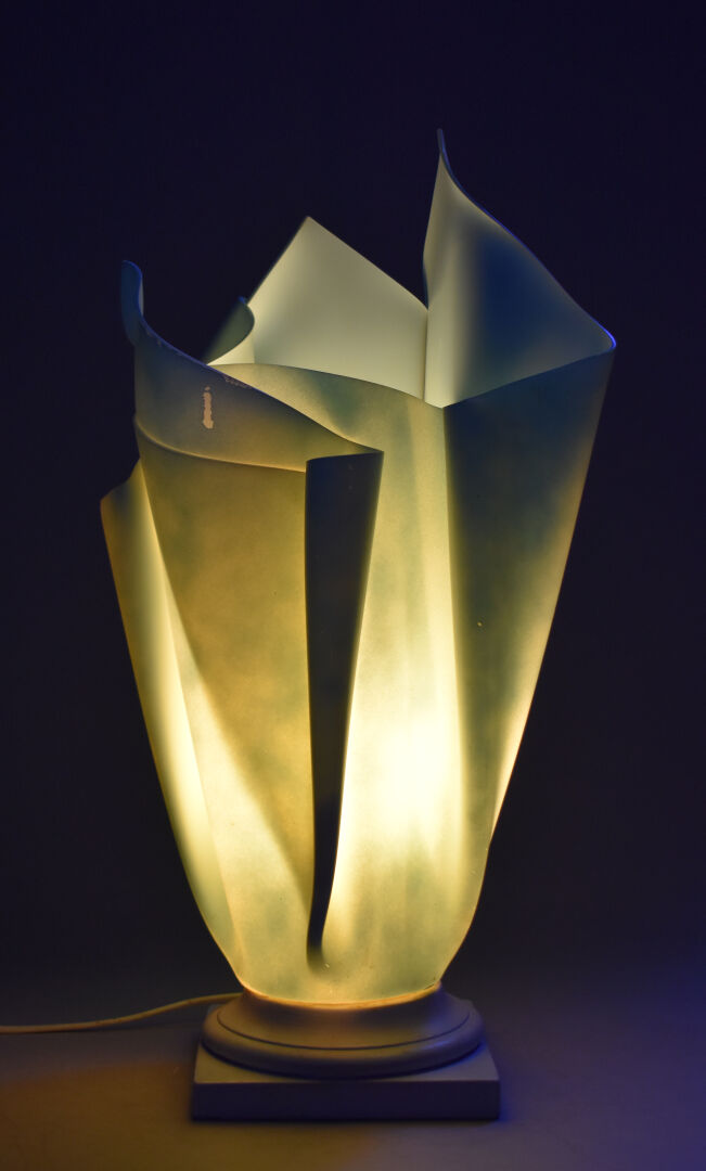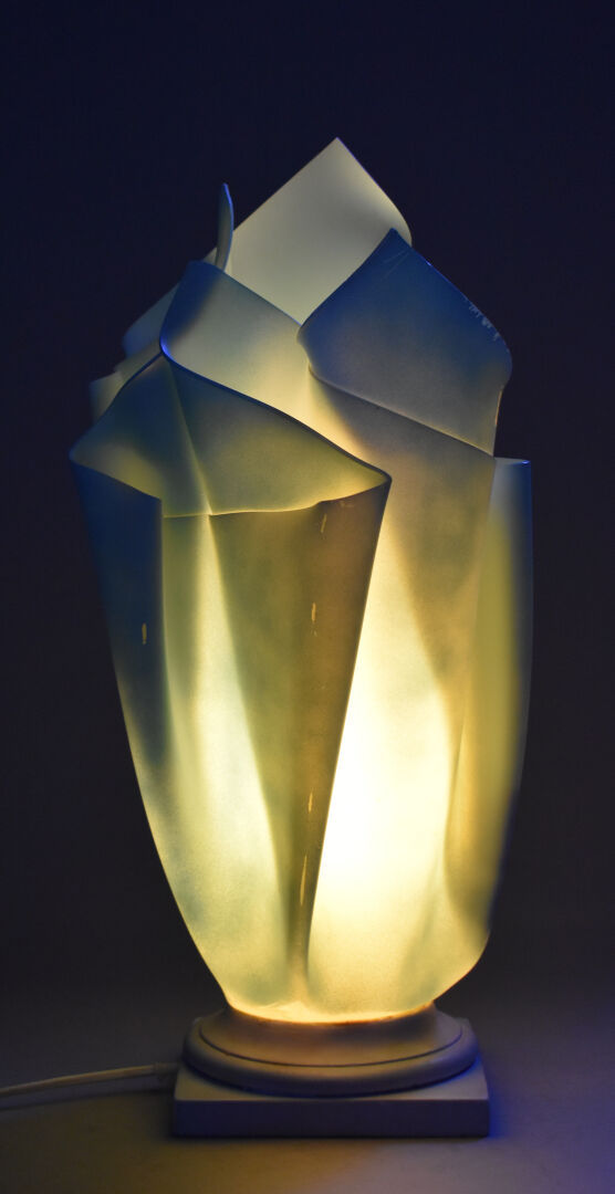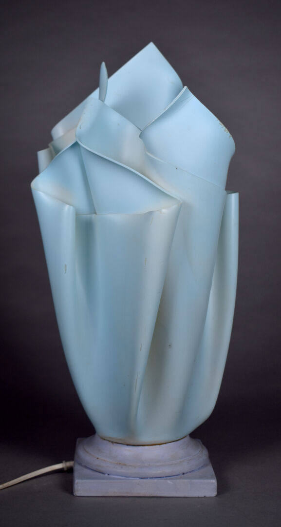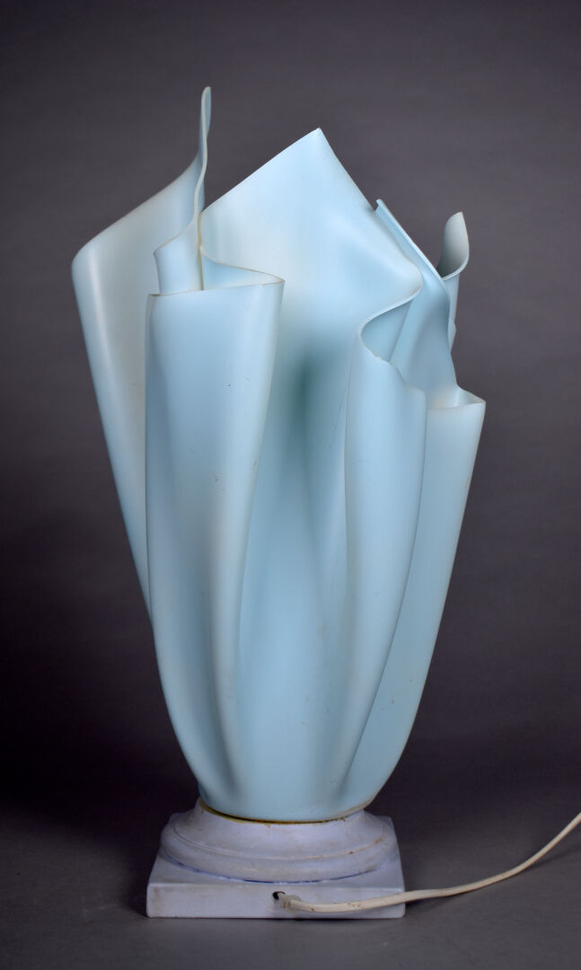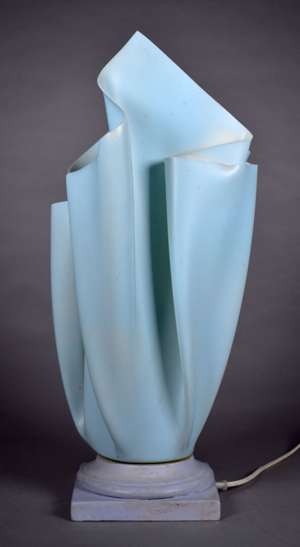 Georgia JACOB (XXe siècle). Lampe en fibre de verre moulé bleu ciel (quelques éclats) Haut. : 50 cm.