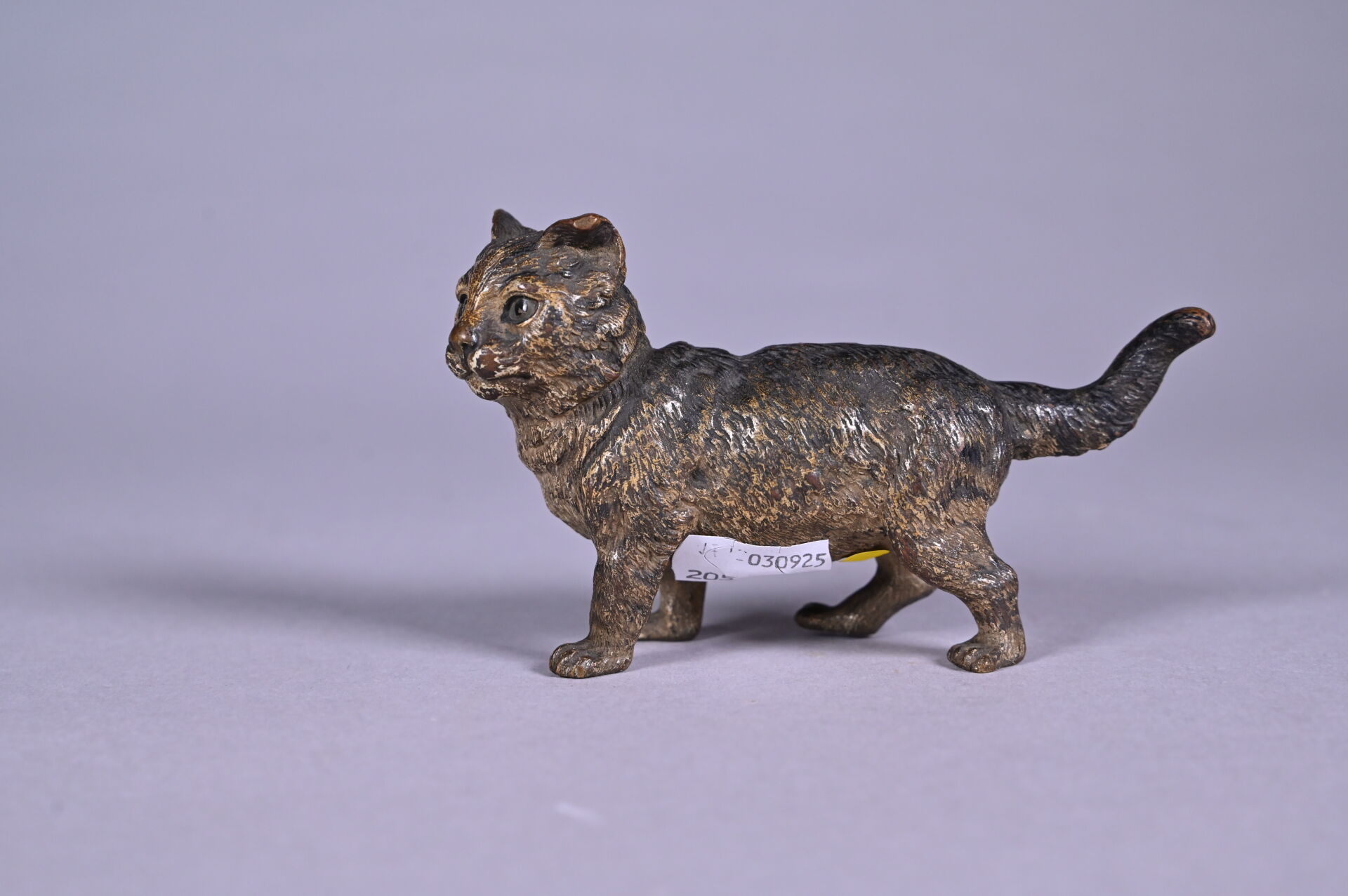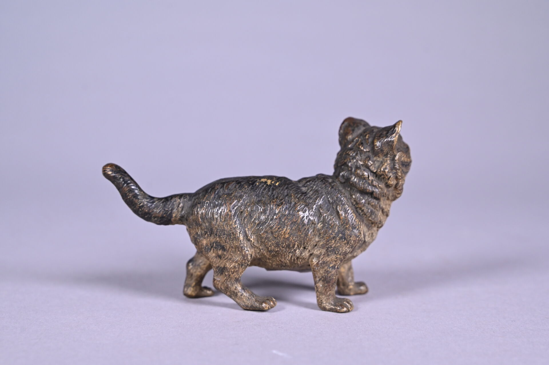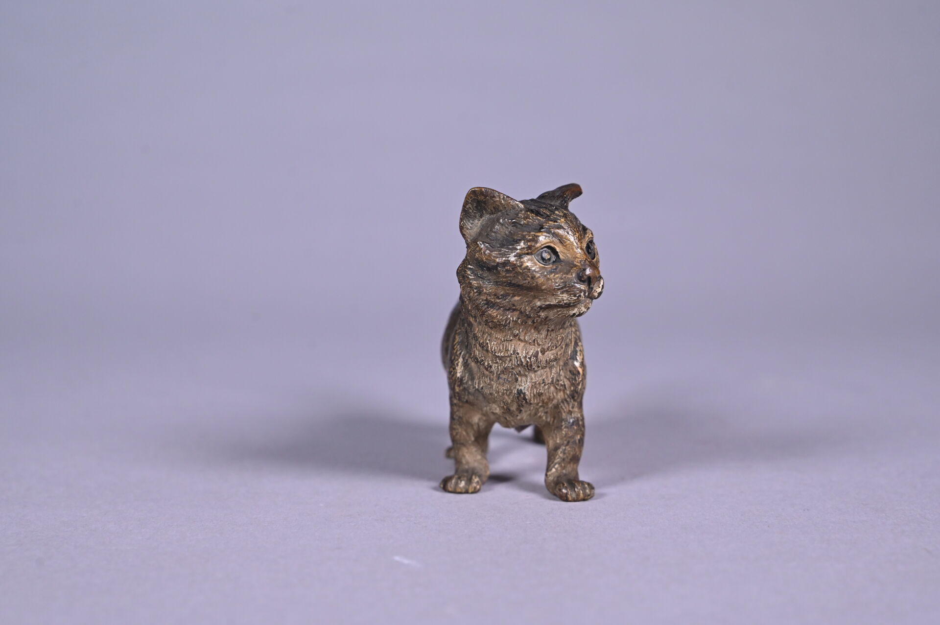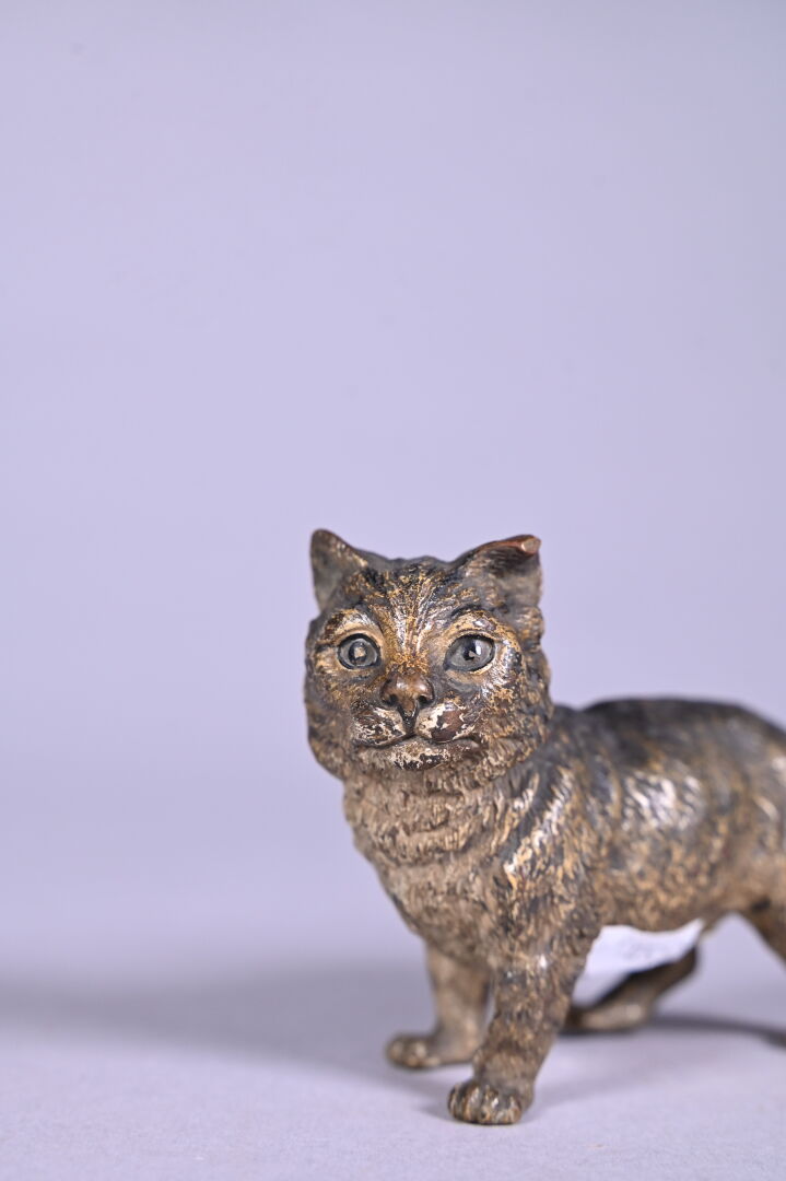 GESCHUTZ. Chat en bronze anciennement polychrome. Vienne. Marqué. Haut. : 7,5 cm.
