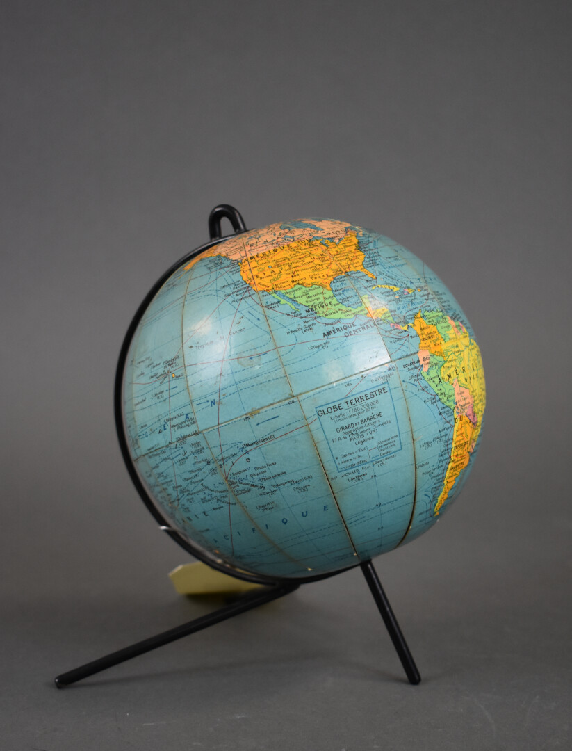 Globe miniature GIRARD et BARRERE échelle 1/80 000 000e. Pietement en métal. Vers 1950.