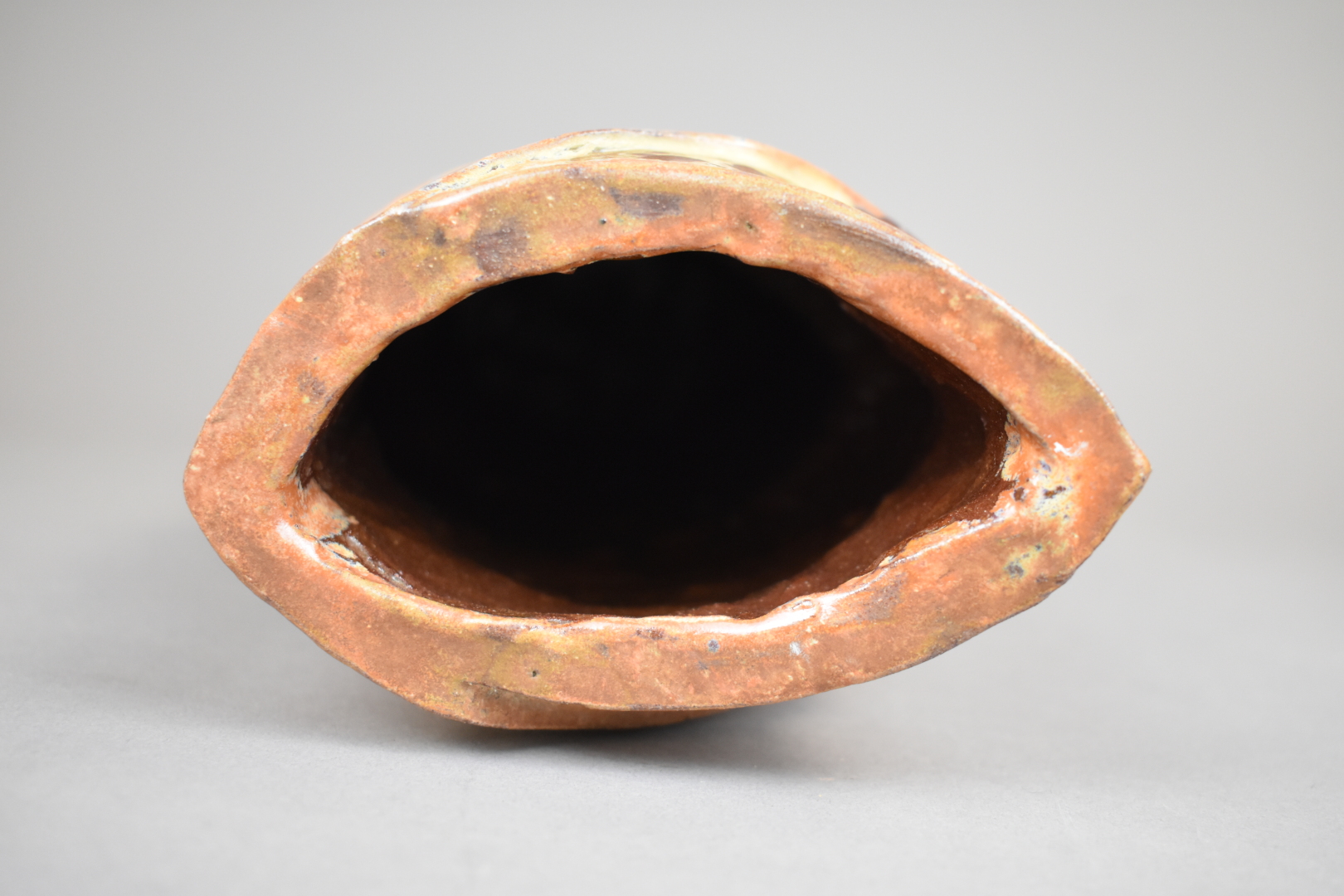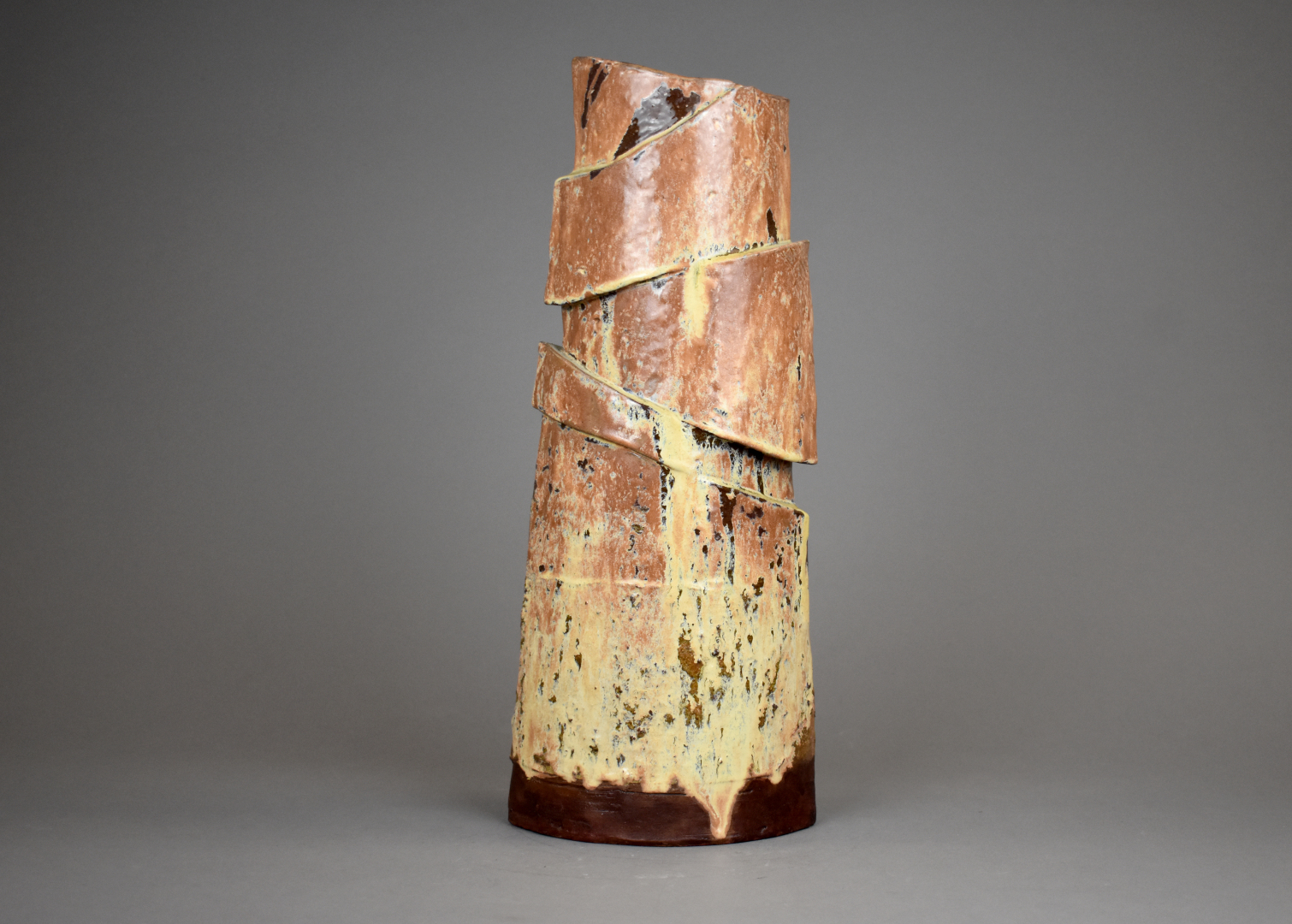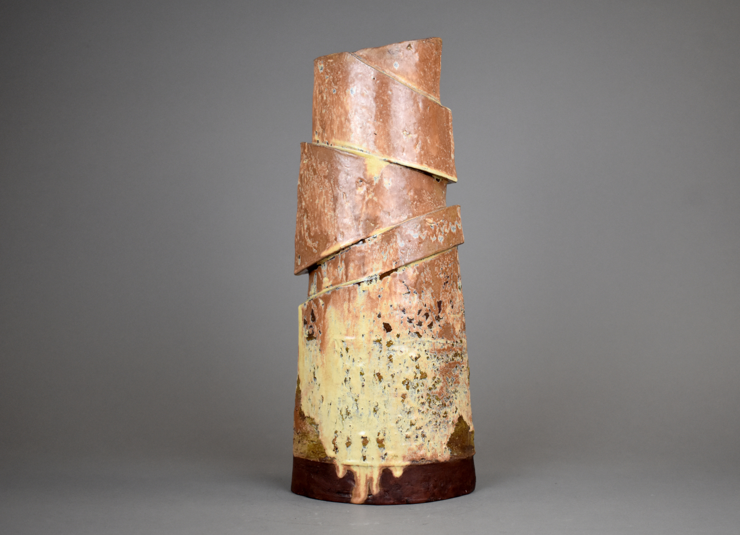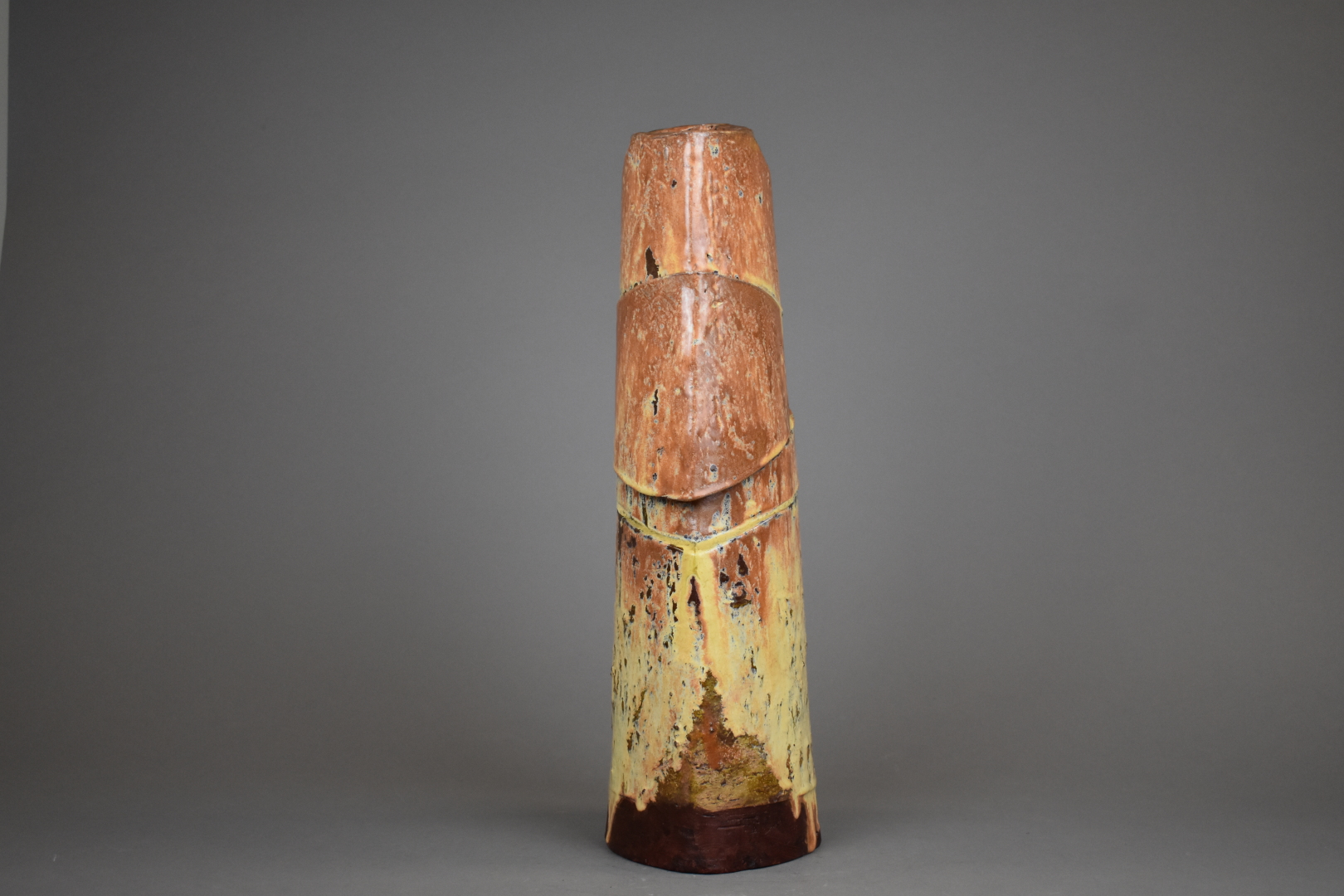 Grand vase en terre cuite émaillée à coulures beiges. Milieu du XXe siècle. Haut. : 45,5 cm.