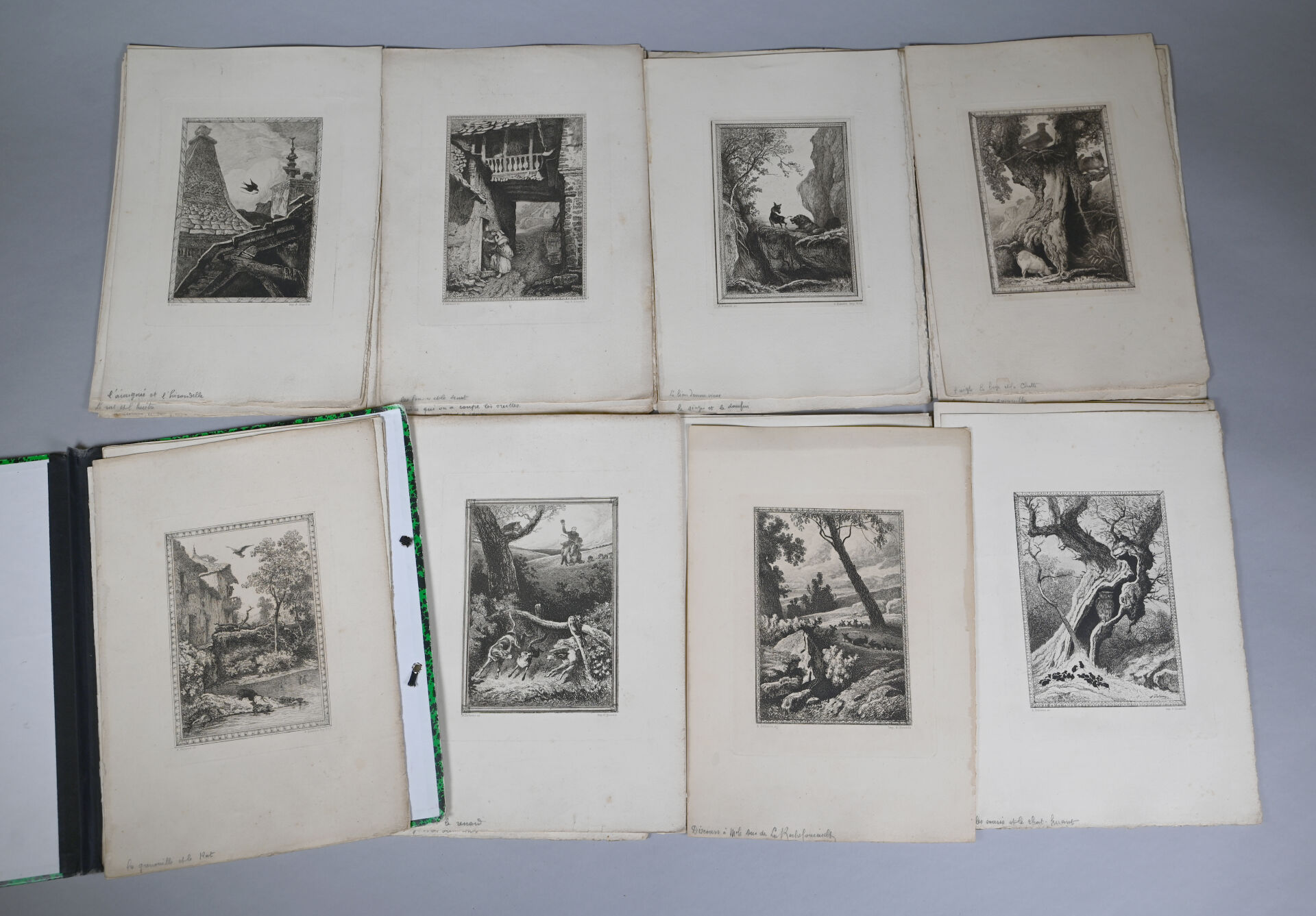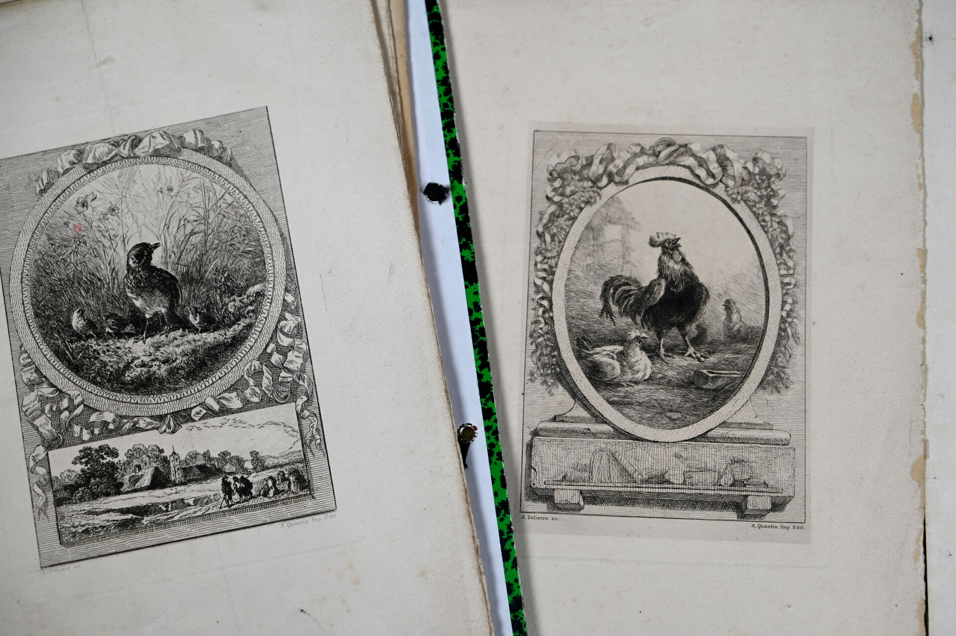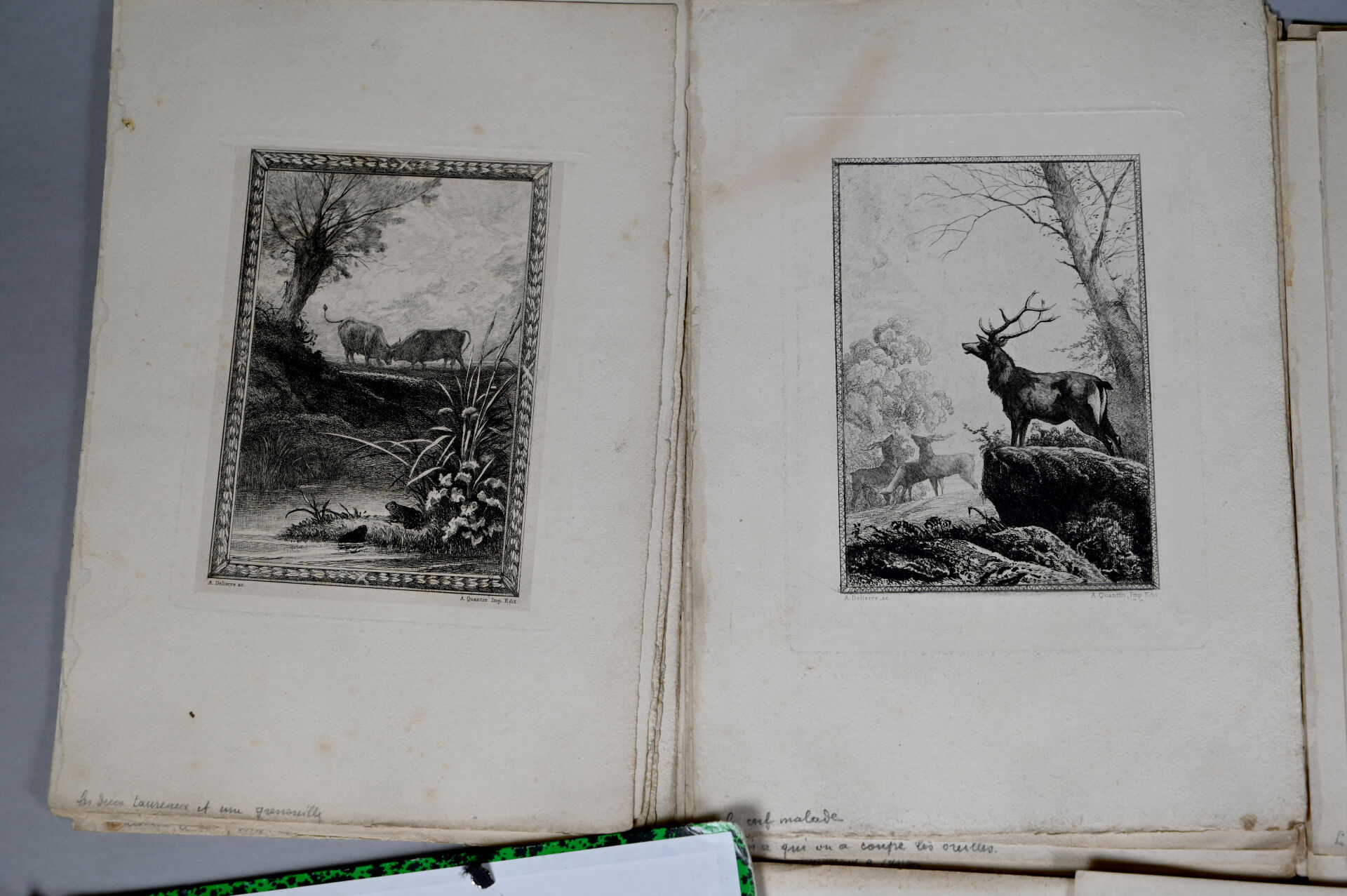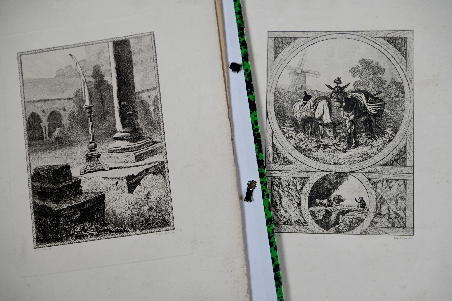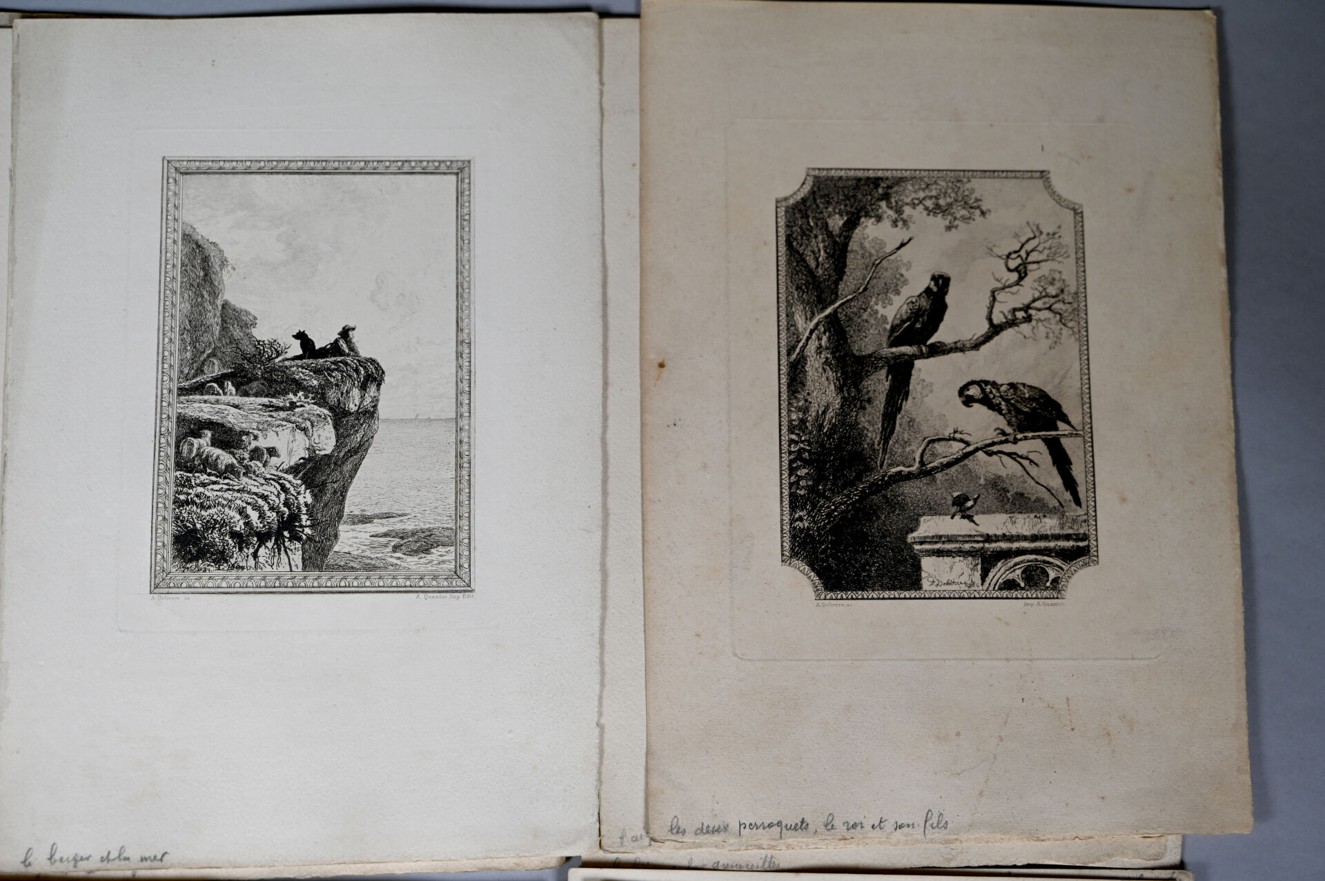 Gravées par Auguste DELIERRE. Ensemble de 29 gravures représentant les fables de La Fontaine, non encadrées (rousseurs). Format d’un feuillet 33 x22,5 cm.