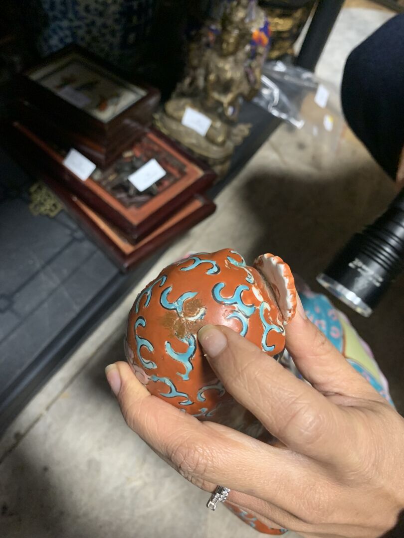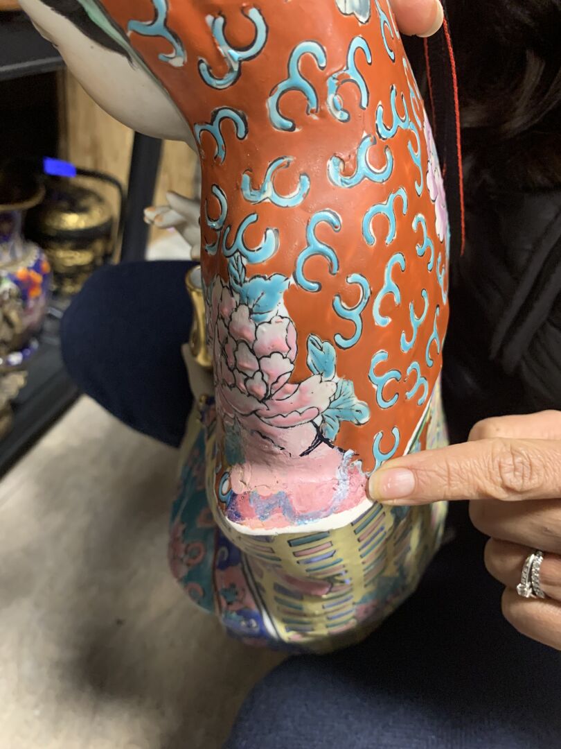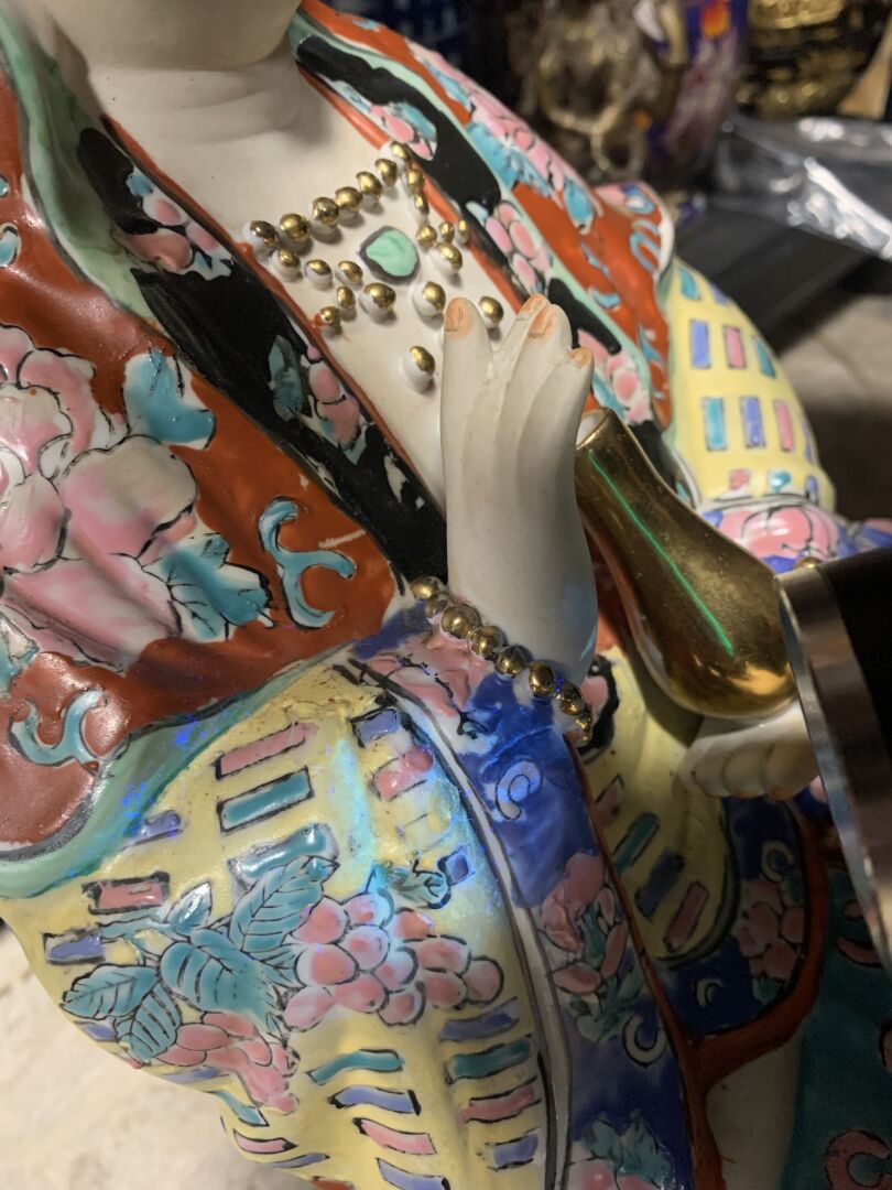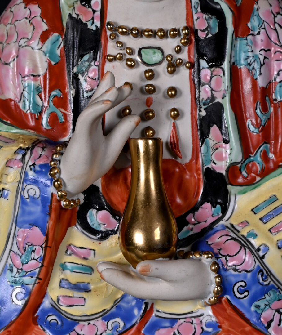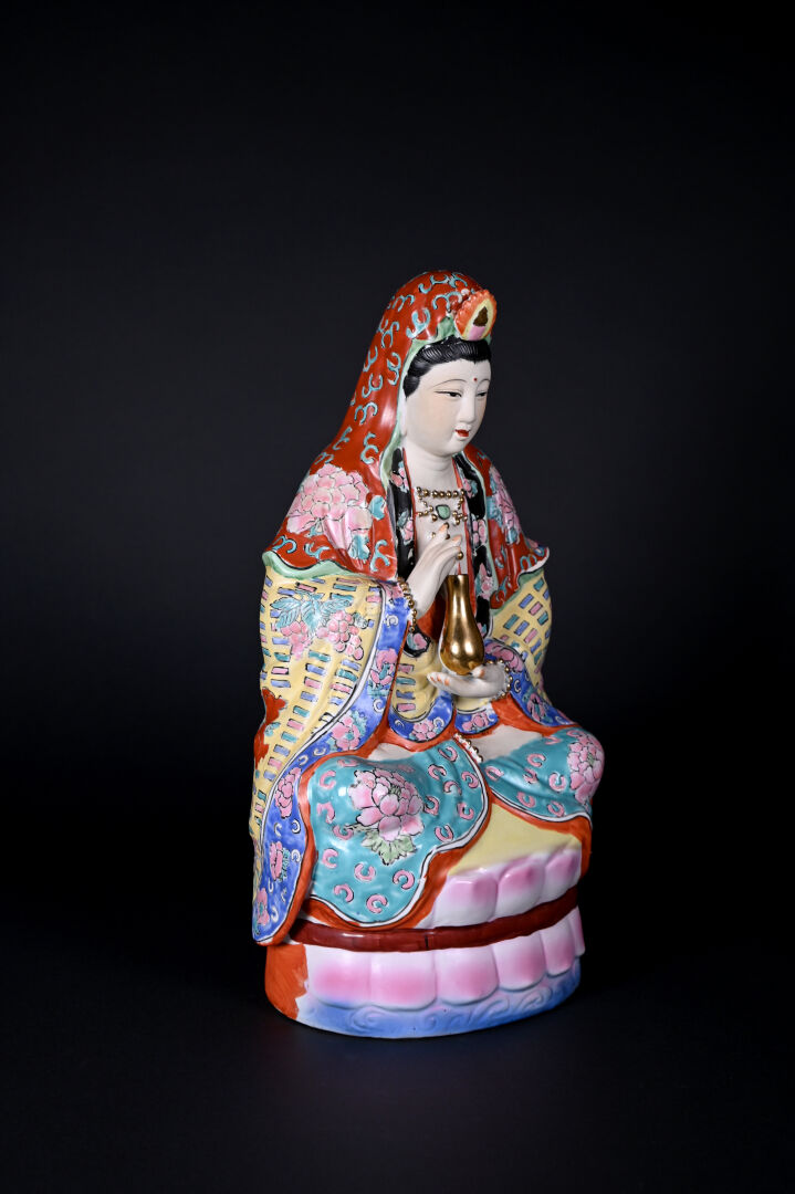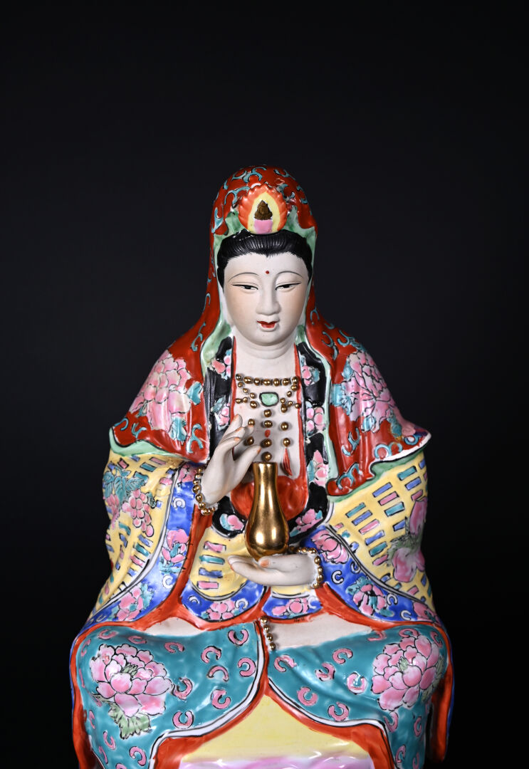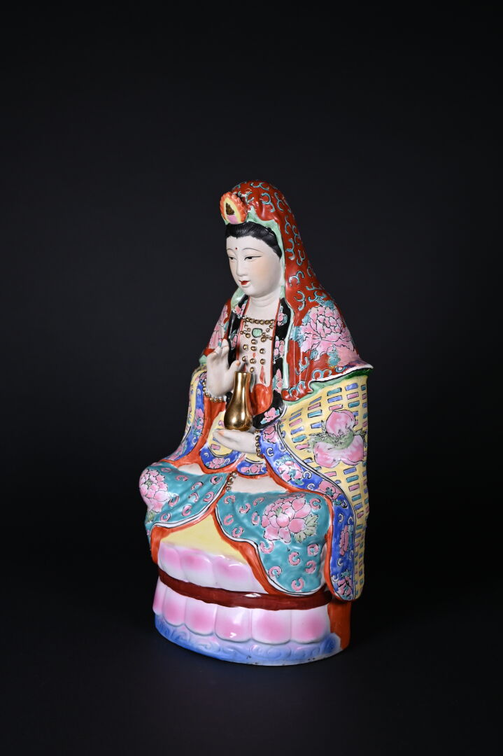 Guanyn en porcelaine émaillée (accidents restaurés). Chine, XXe siècle. Haut. : 44 cm.