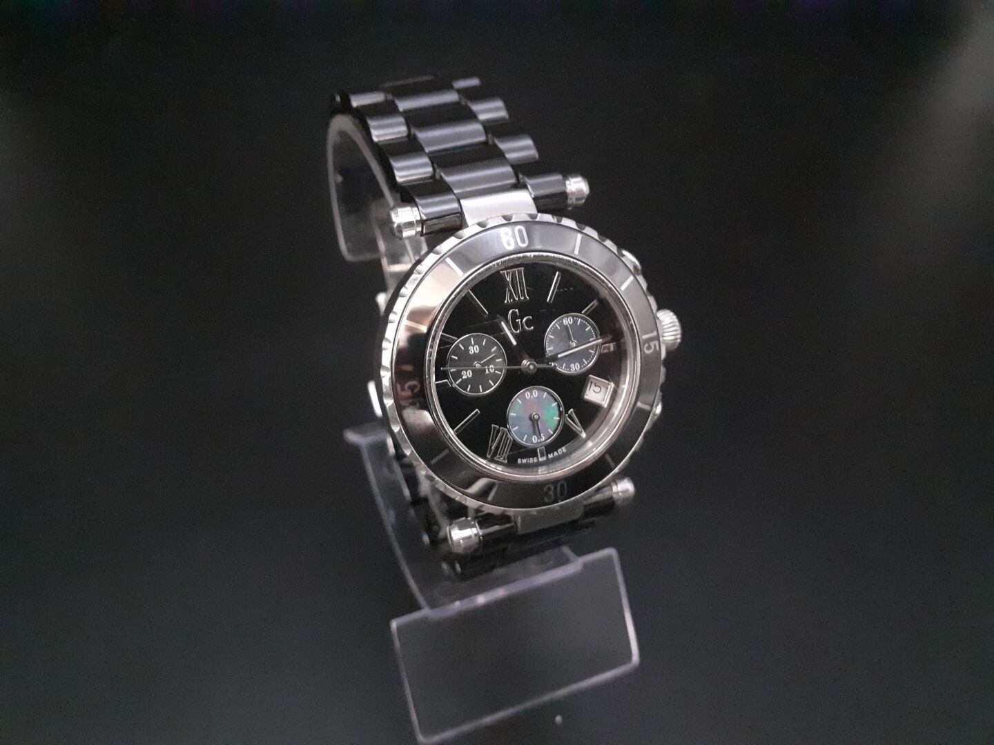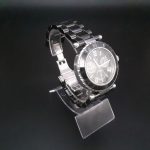 GUESS, montre bracelet à quartz chronographe guichet date à 4H cadran rayé, boitier et fermoir acier.