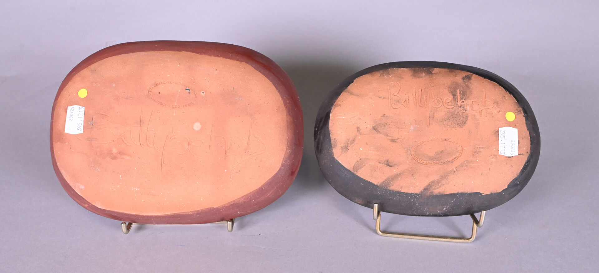 Gurteenakilla BALLYDEHOB. Deux plats en terre cuite à décor de poissons. Marqués au dessous. 24 x 17 cm pour le plus grand.