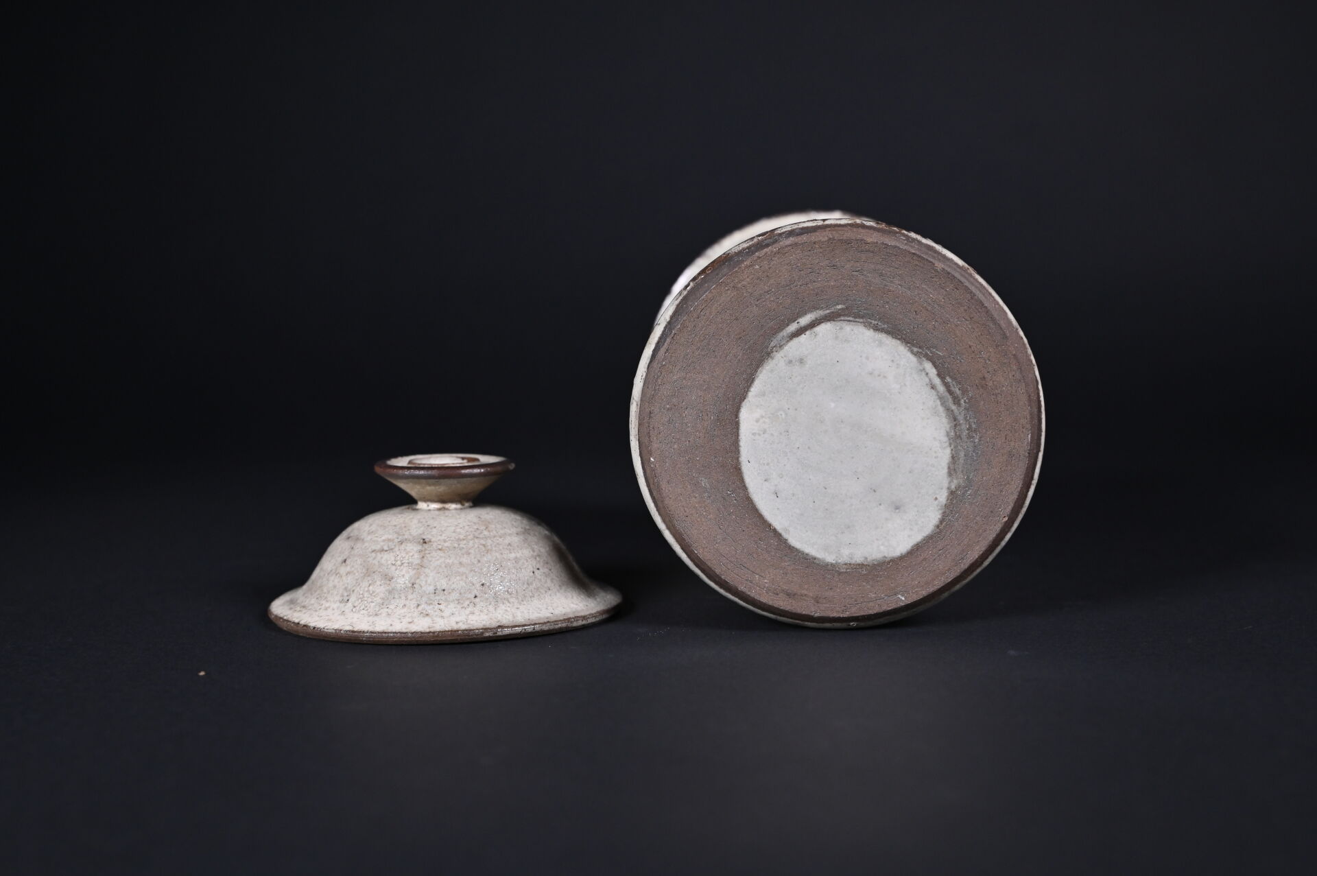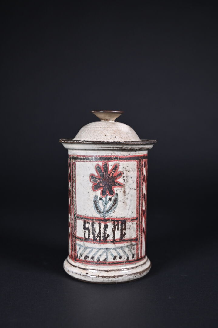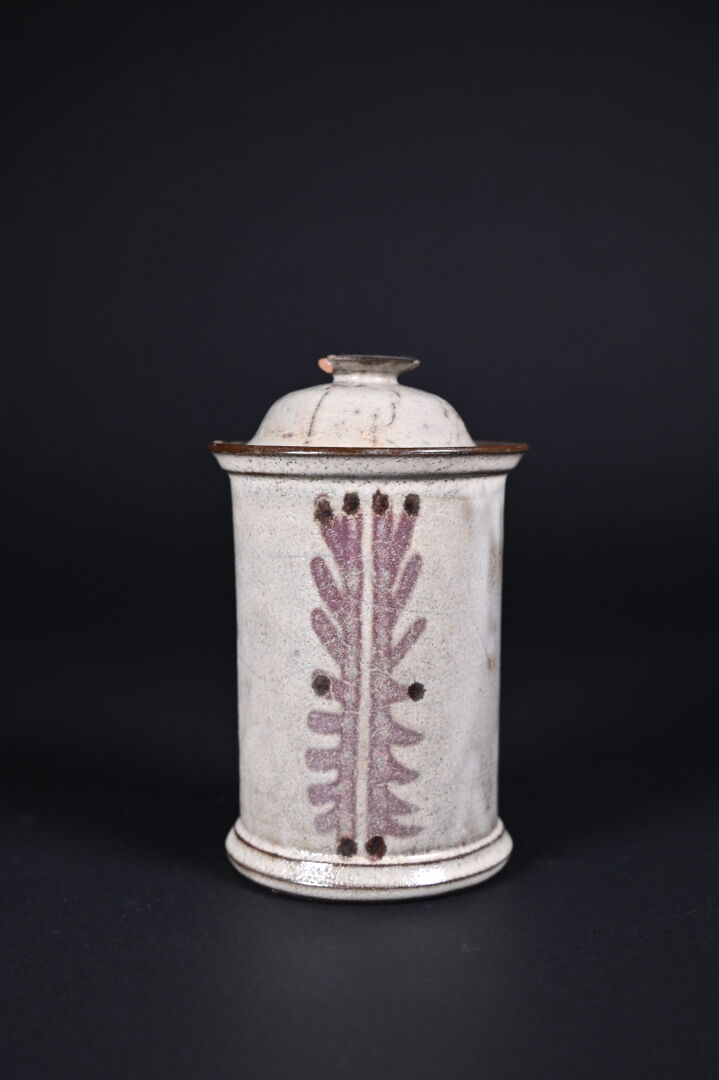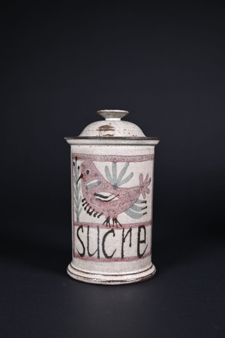 Gustave REYNAUD (1915-1972). Quatre pots couverts en céramique à décor de végétaux et oiseaux (un avec accidenté). Trois marqués. Haut. du plus grand. : 20 cm.